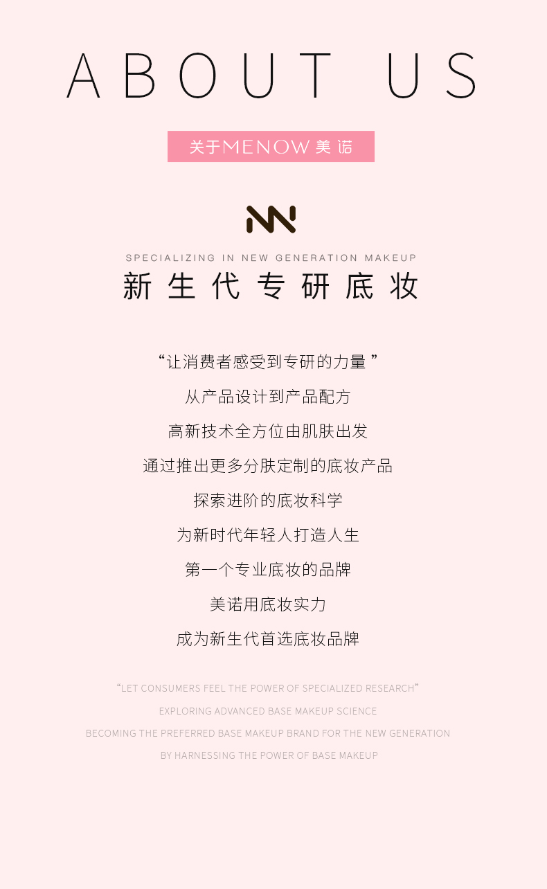 - 全球性彩妆品牌,专注开发高品质的适用性美妆产品。拥有20多年美妆经验,产品远销欧美等80多个国家。美诺彩妆致力于给用户带来“爱与美,年轻,不一样的品质彩妆体验”。