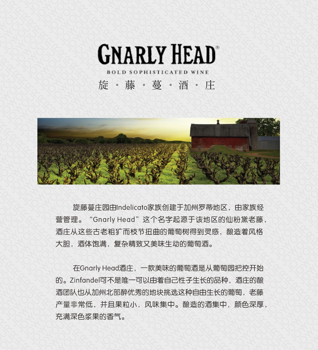 美国加州旋藤蔓老藤仙粉黛红葡萄酒