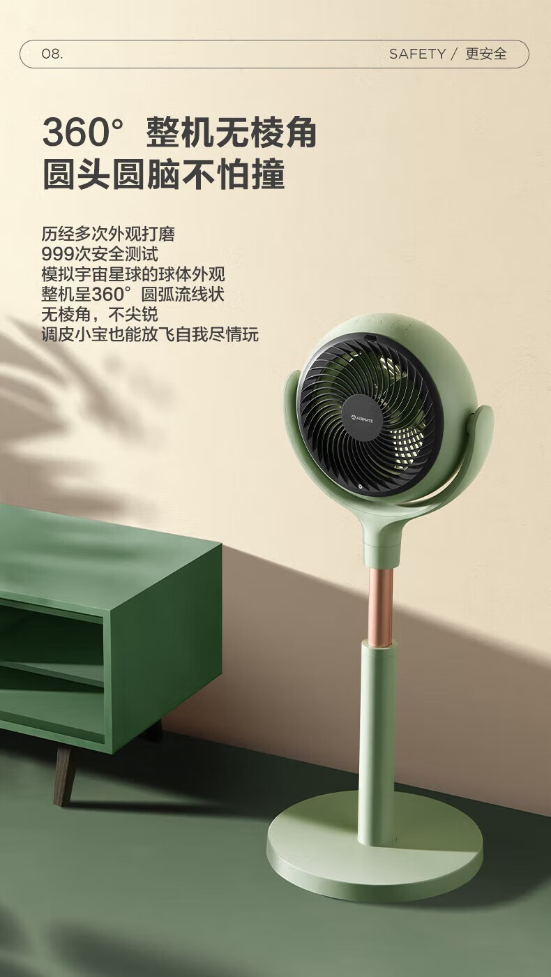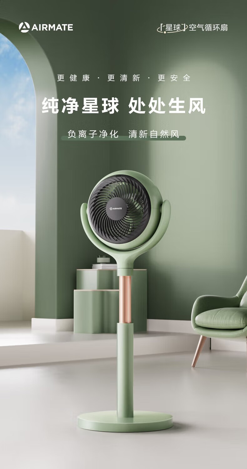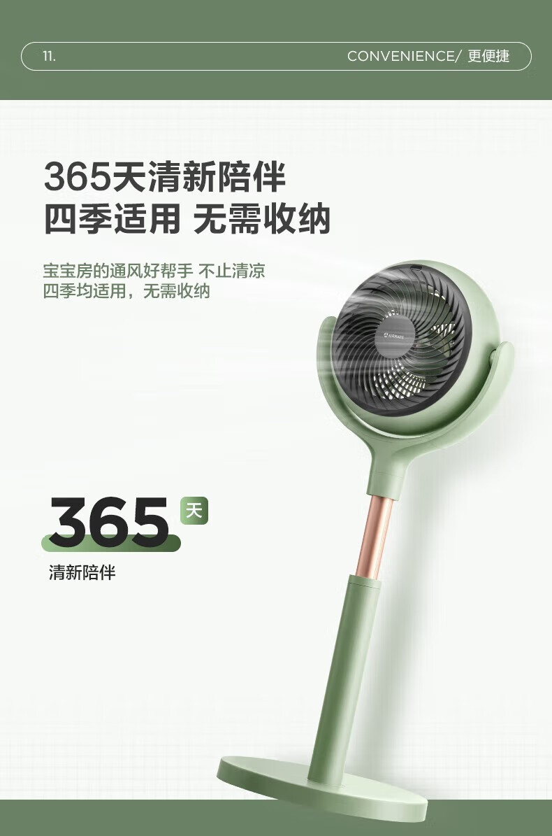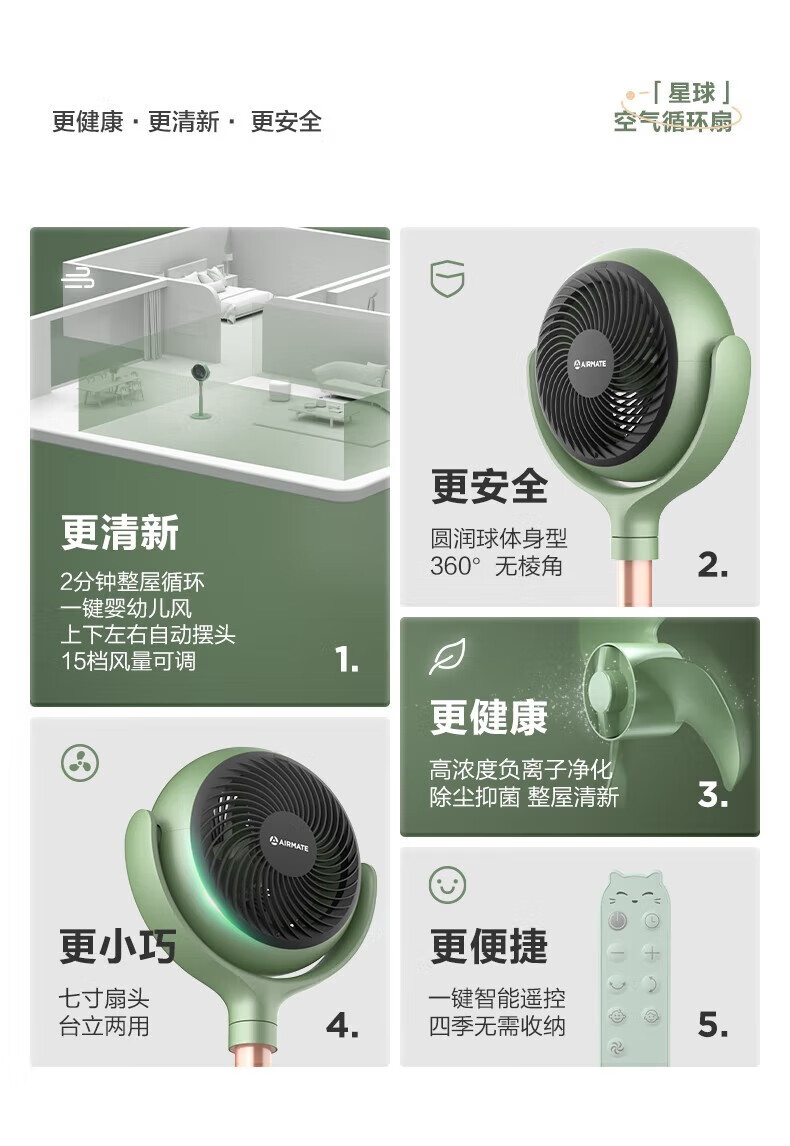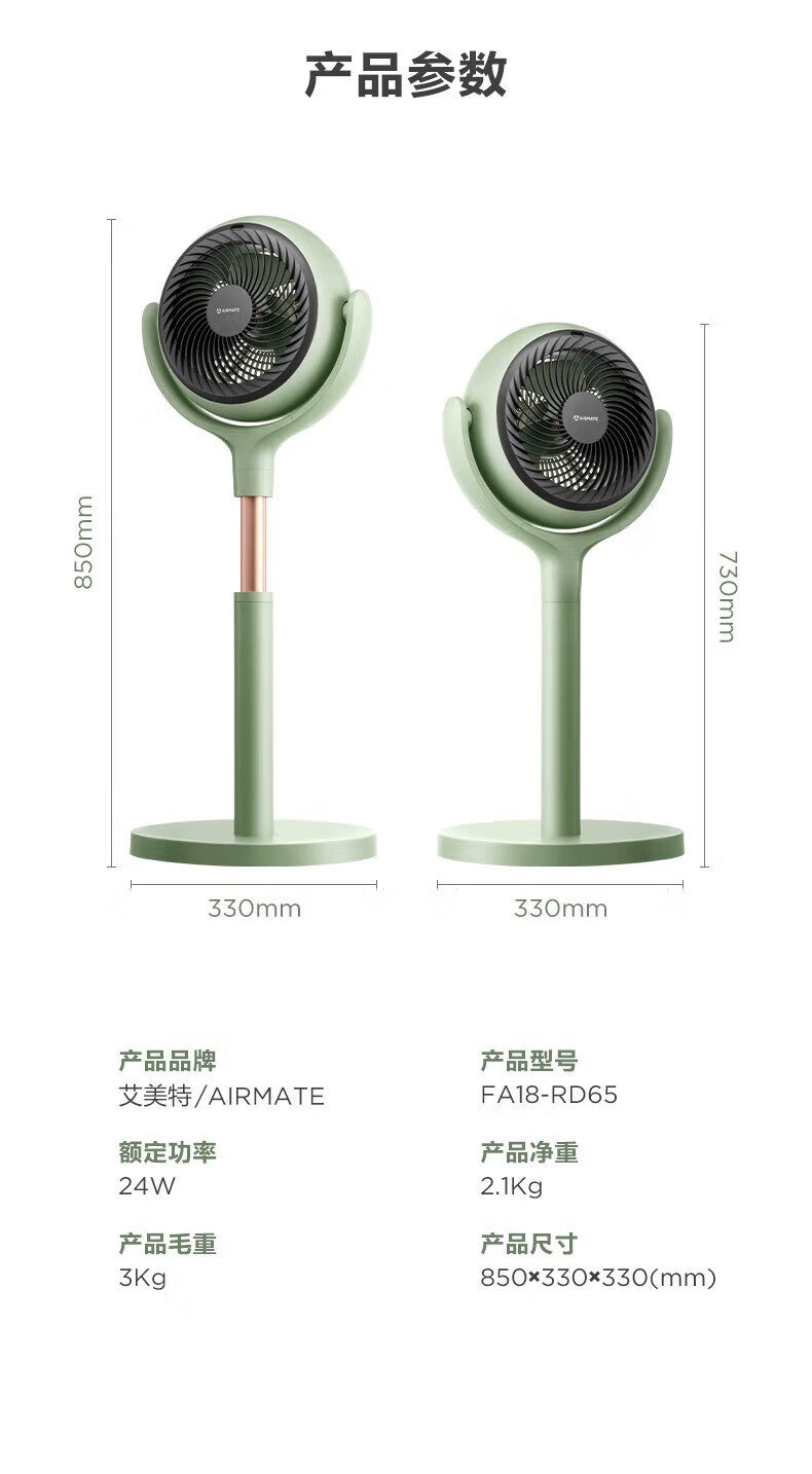 【艾美特星球系列】艾美特(AIRMATE)空气循环扇电风扇落地扇家用 台桌两用直流变频大广角遥控冷风扇 FA20-RD68 淡粉白色/清新绿