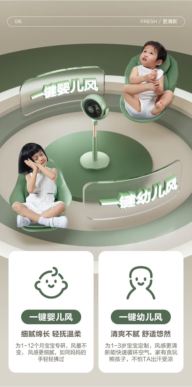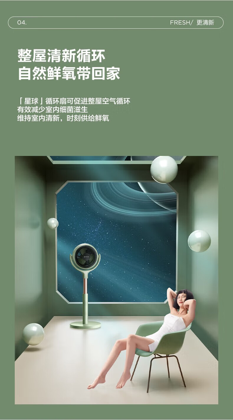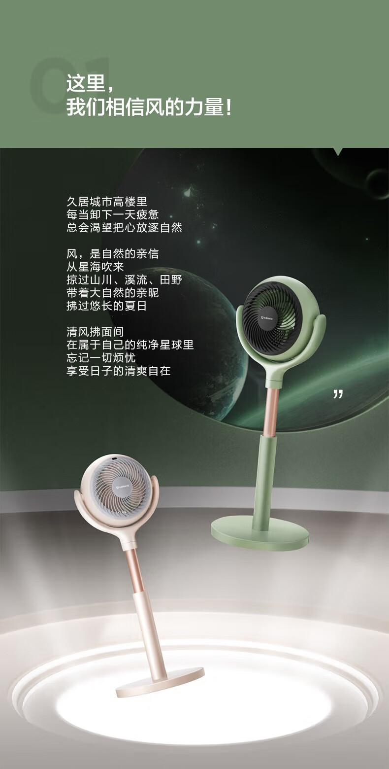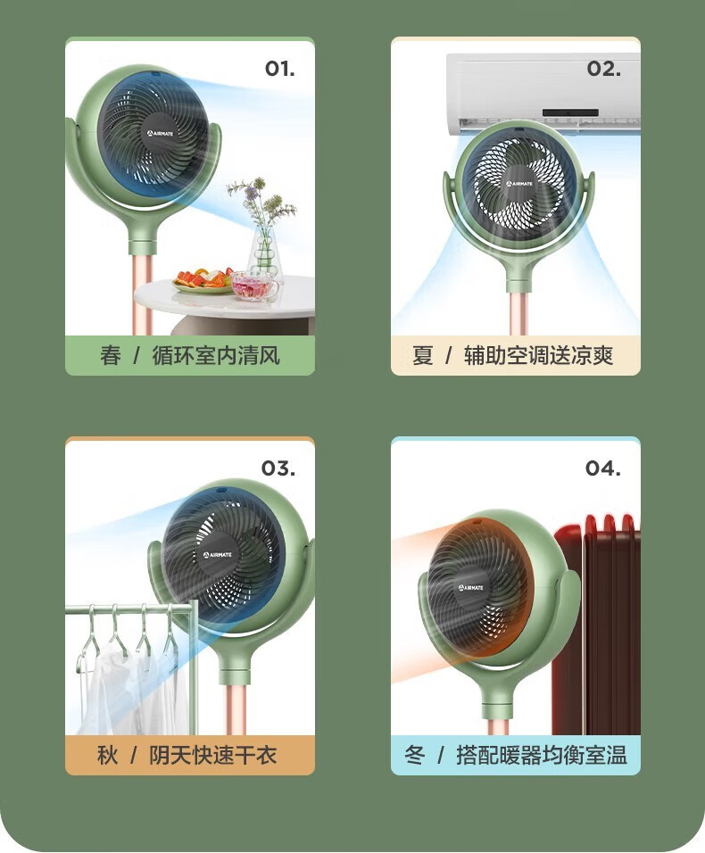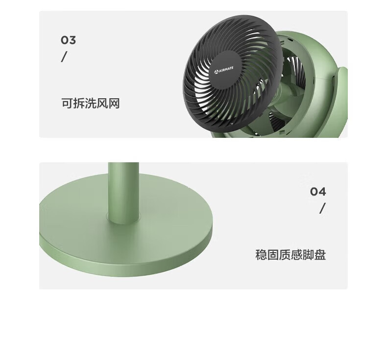 【艾美特星球系列】艾美特(AIRMATE)空气循环扇电风扇落地扇家用 台桌两用直流变频大广角遥控冷风扇 FA20-RD68 淡粉白色/清新绿