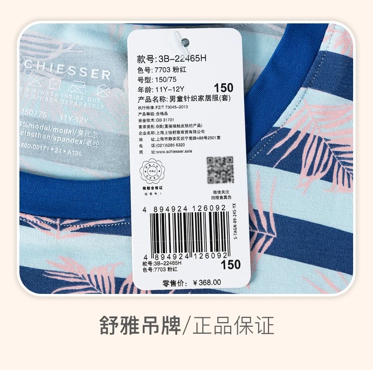 【椰树海洋莫代尔】SCHIESSER德国舒雅儿童家居套装莫代尔面料,细腻滑爽,手感柔和3B/22465H