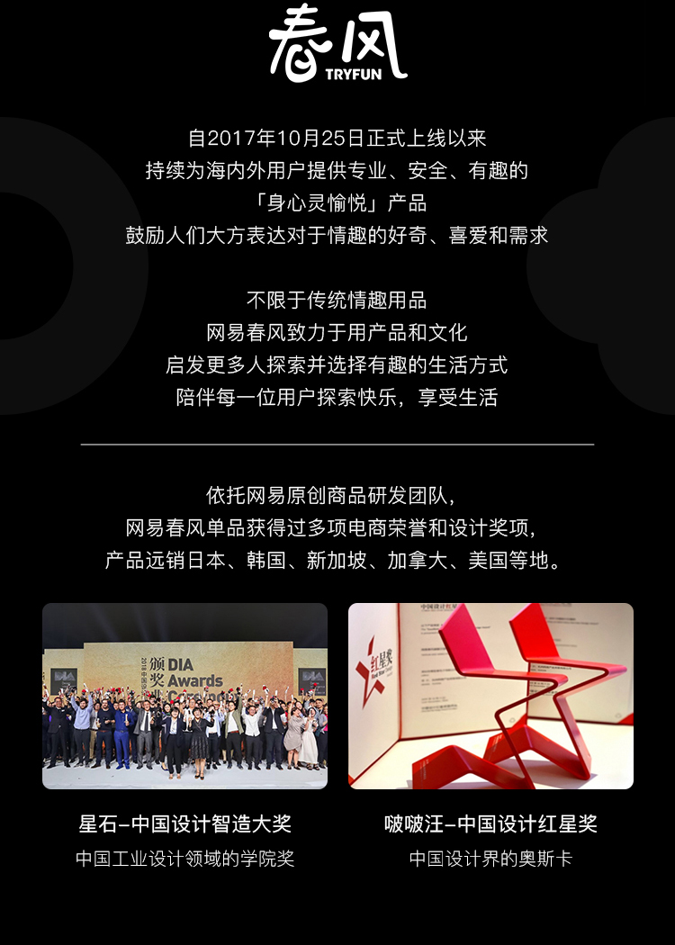 网易春风,网易原创情趣用品品牌,专为亚洲年轻人设计,做更真实,更勇敢,更有趣的自己,为人类健康幸福做贡献!