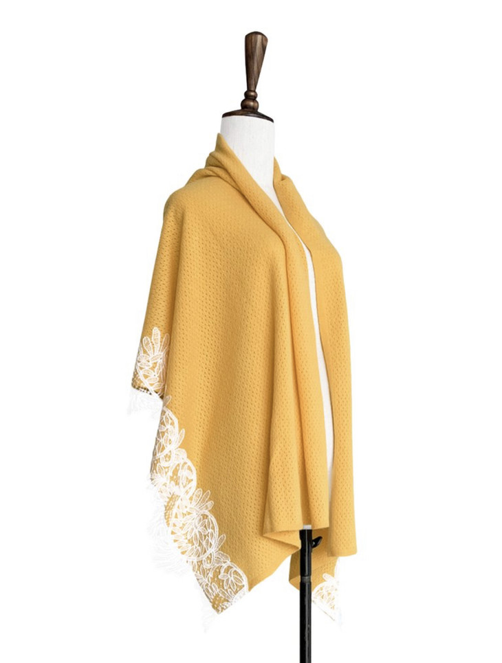 TYNVIE 刺绣蕾丝拼接山羊绒披肩 - 鹅黄色