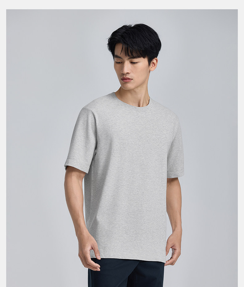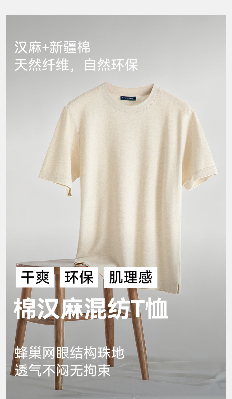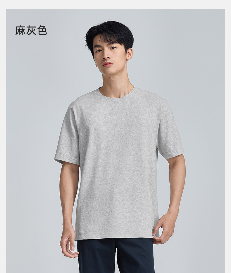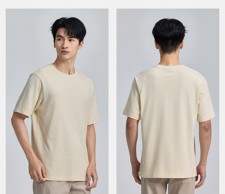 【春夏新品】十如仕休闲轻运动微弹罗纹圆领棉汉麻混纺短袖T恤T04-05