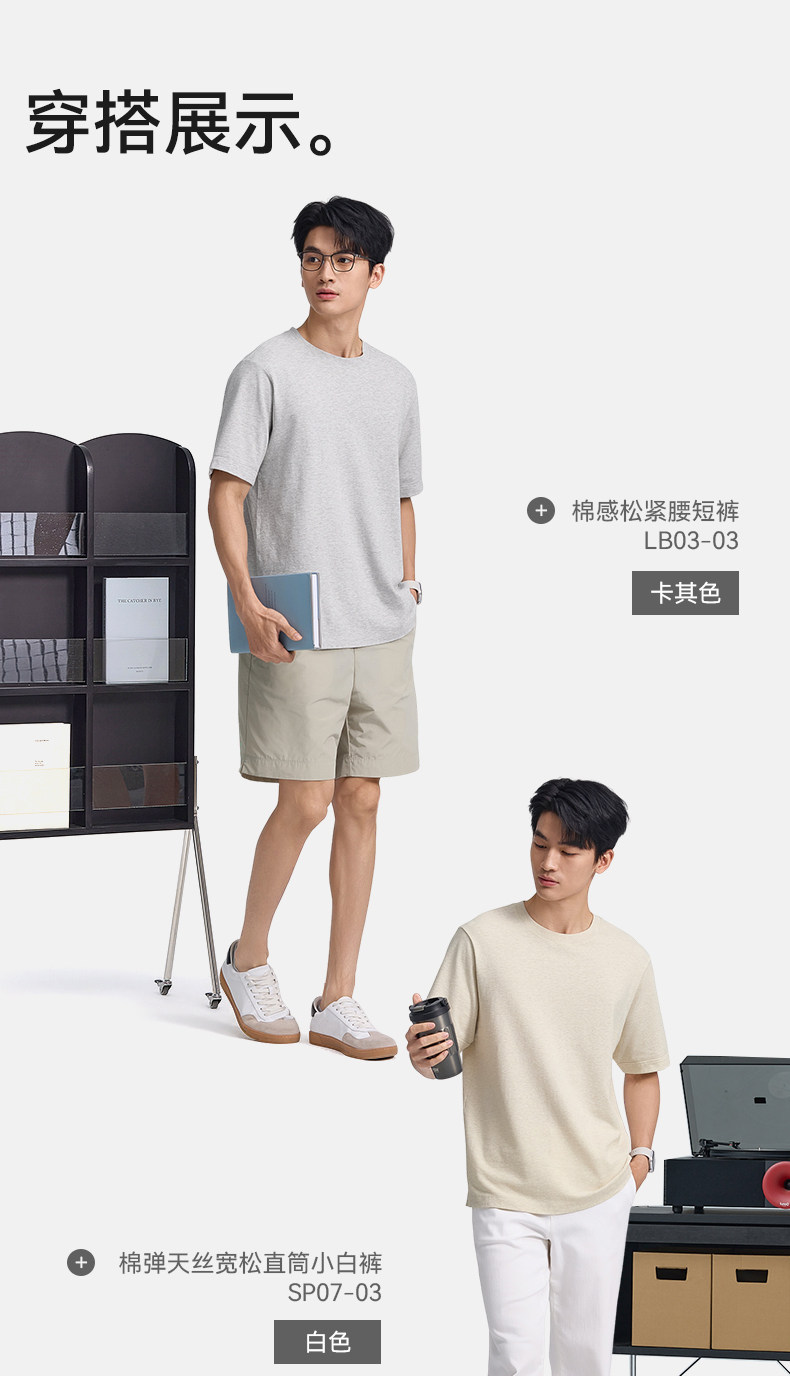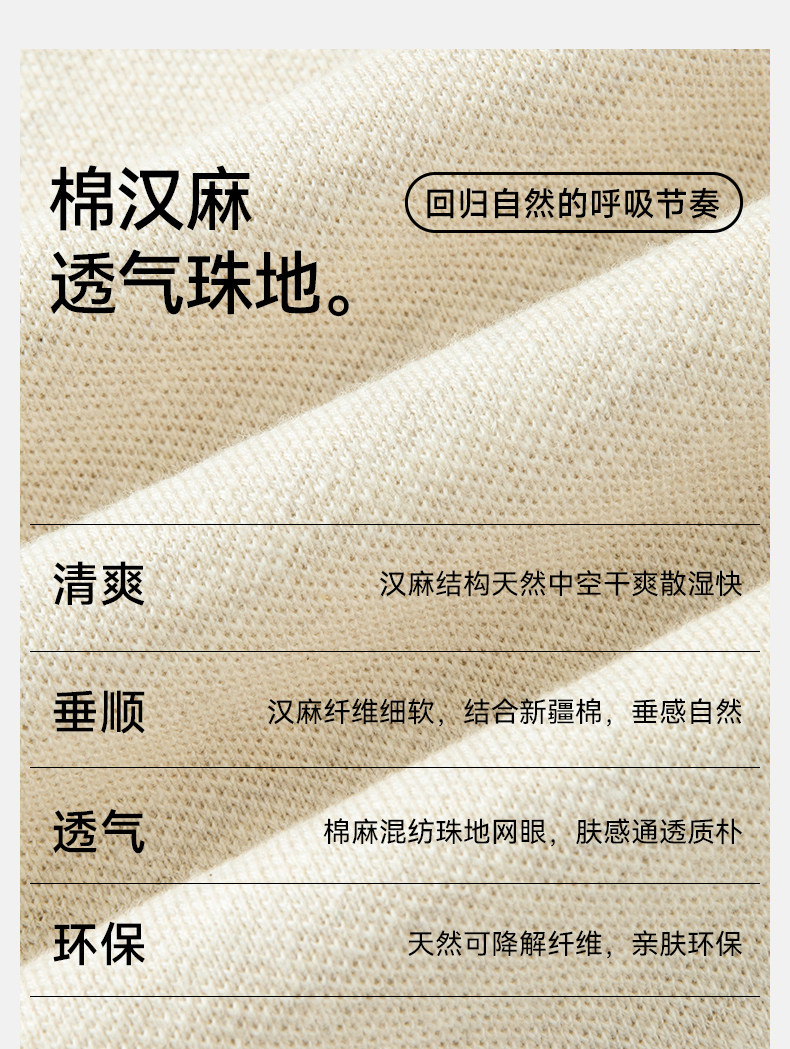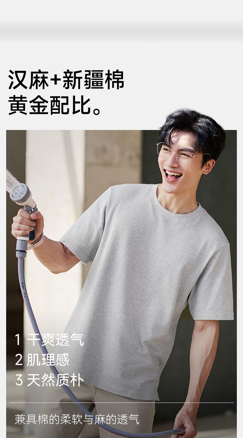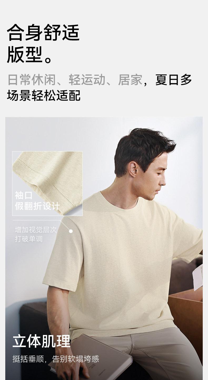 【春夏新品】十如仕休闲轻运动微弹罗纹圆领棉汉麻混纺短袖T恤T04-05
