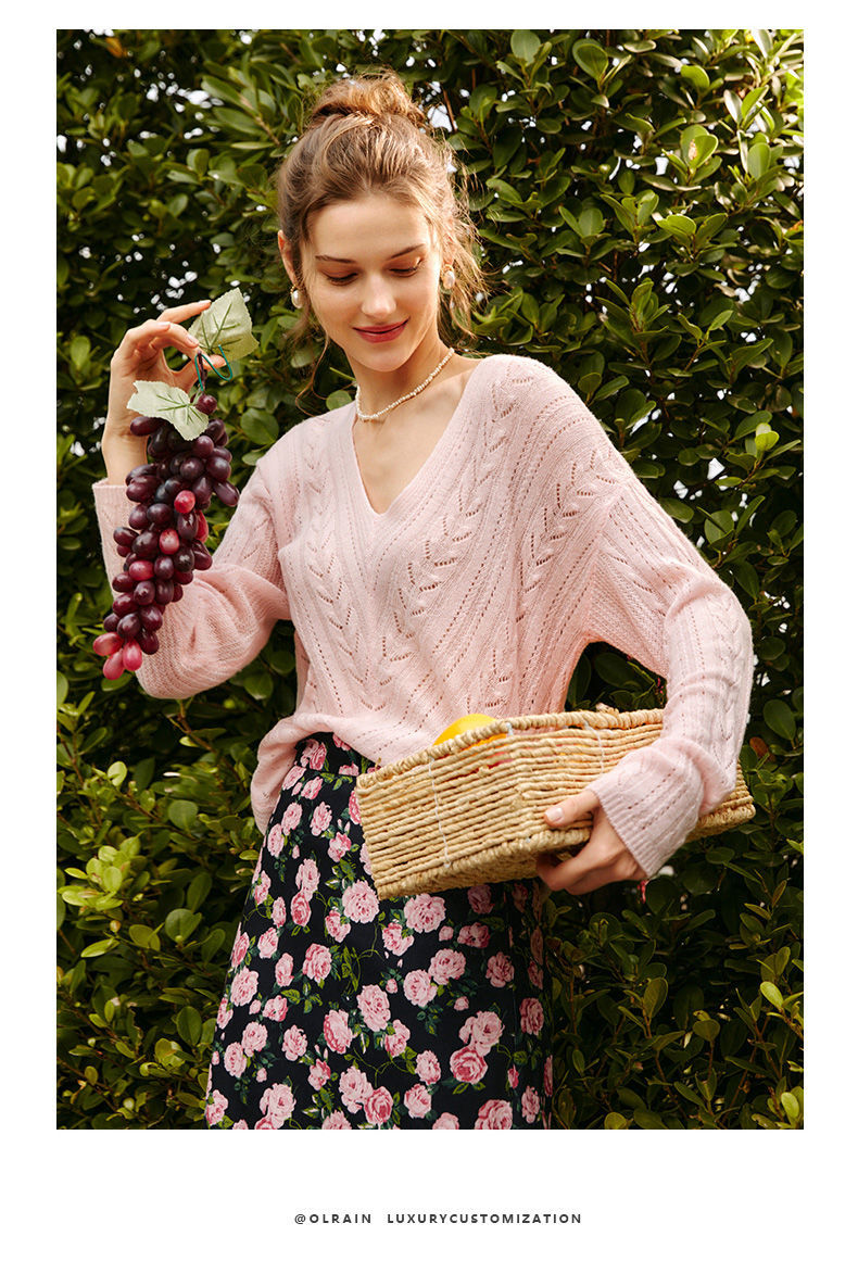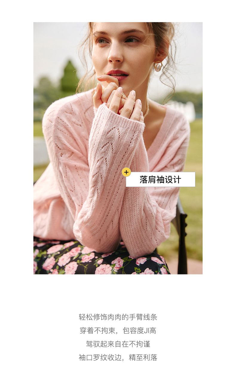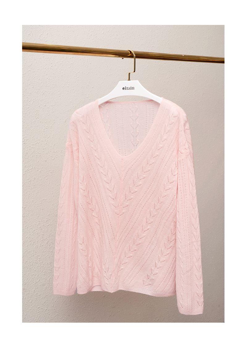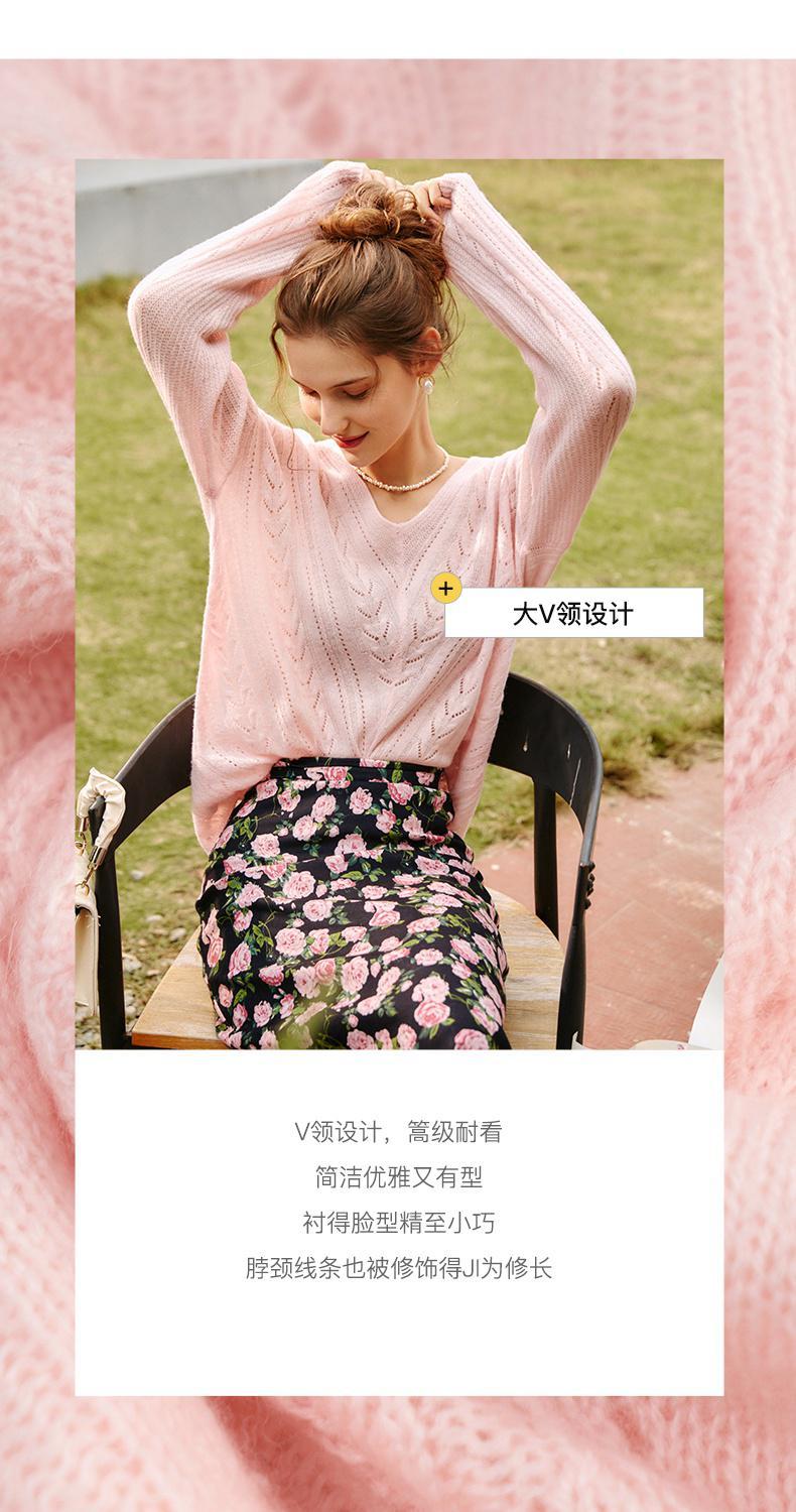 欧芮儿V领套头针织衫女秋冬2021年新款宽松显瘦慵懒时尚粉色毛衣