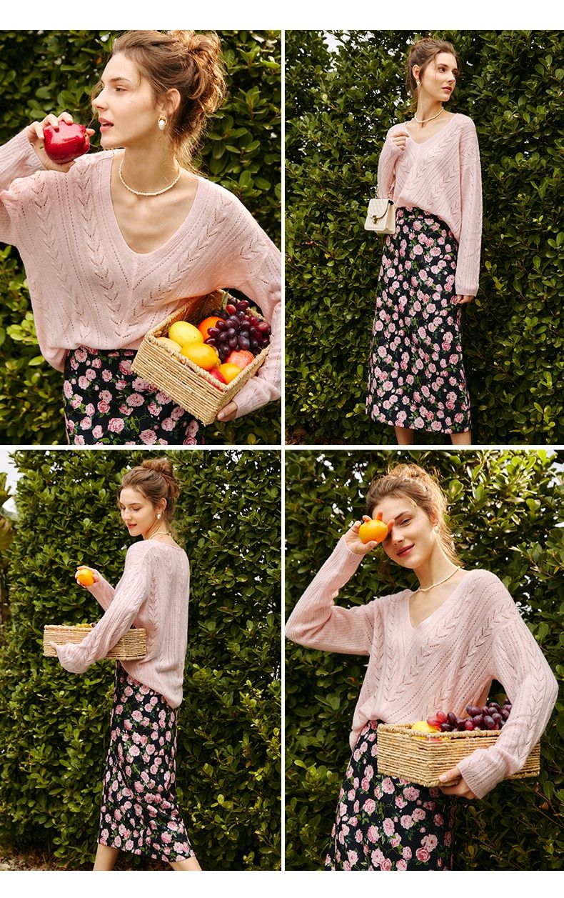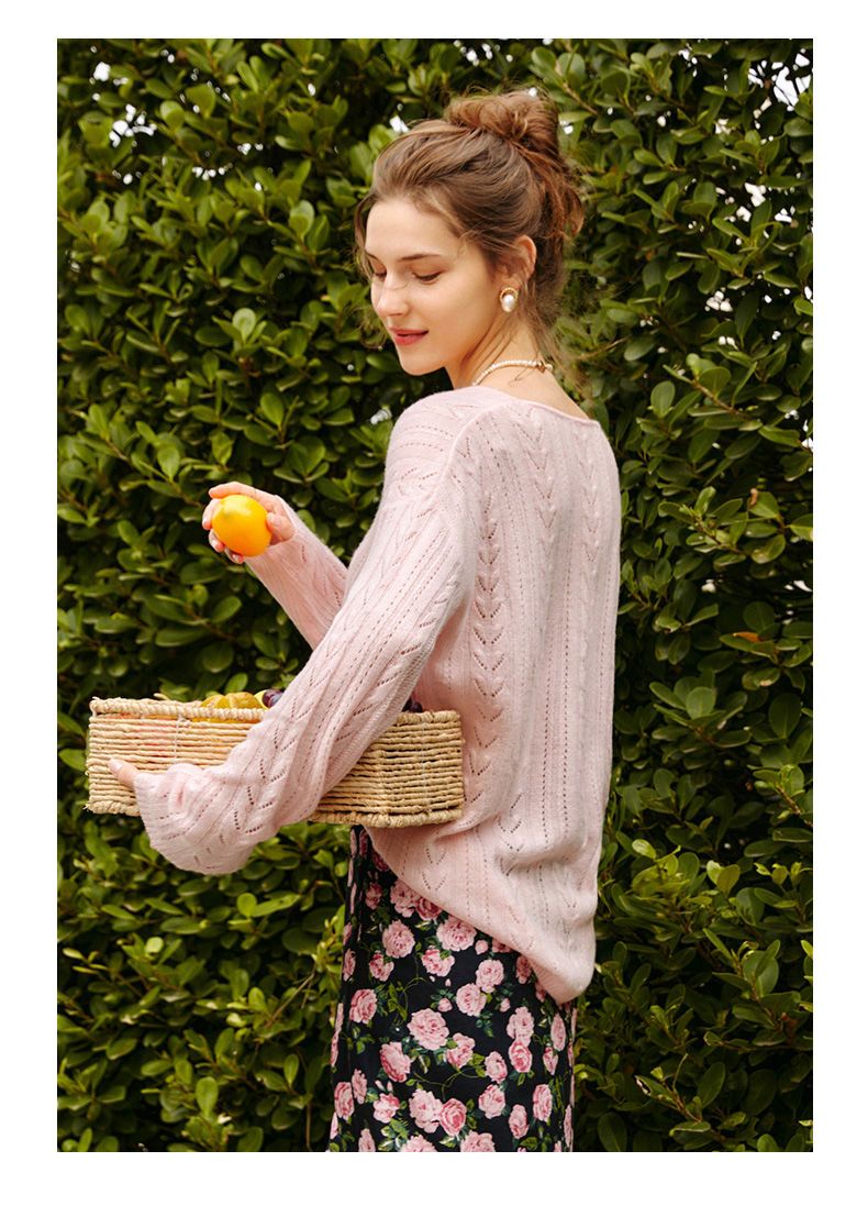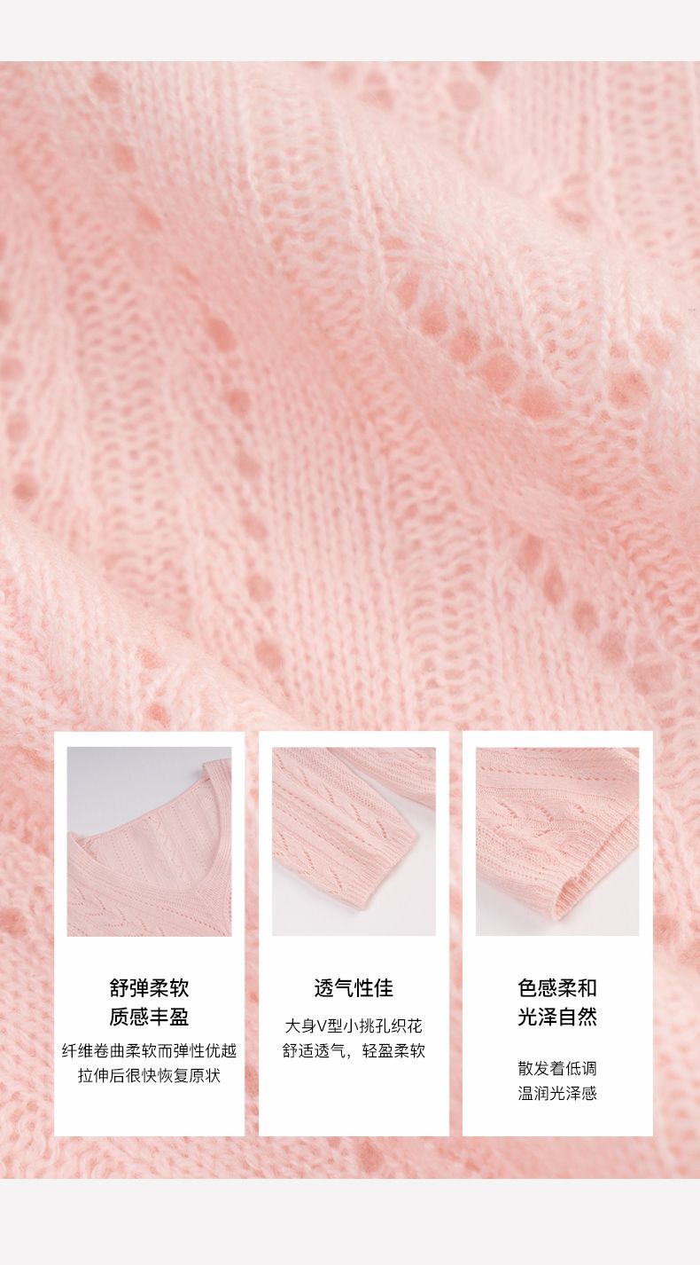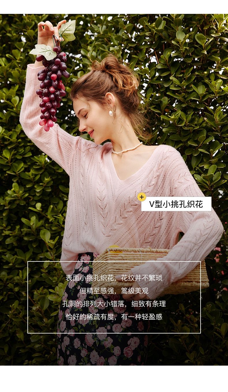 欧芮儿V领套头针织衫女秋冬2021年新款宽松显瘦慵懒时尚粉色毛衣