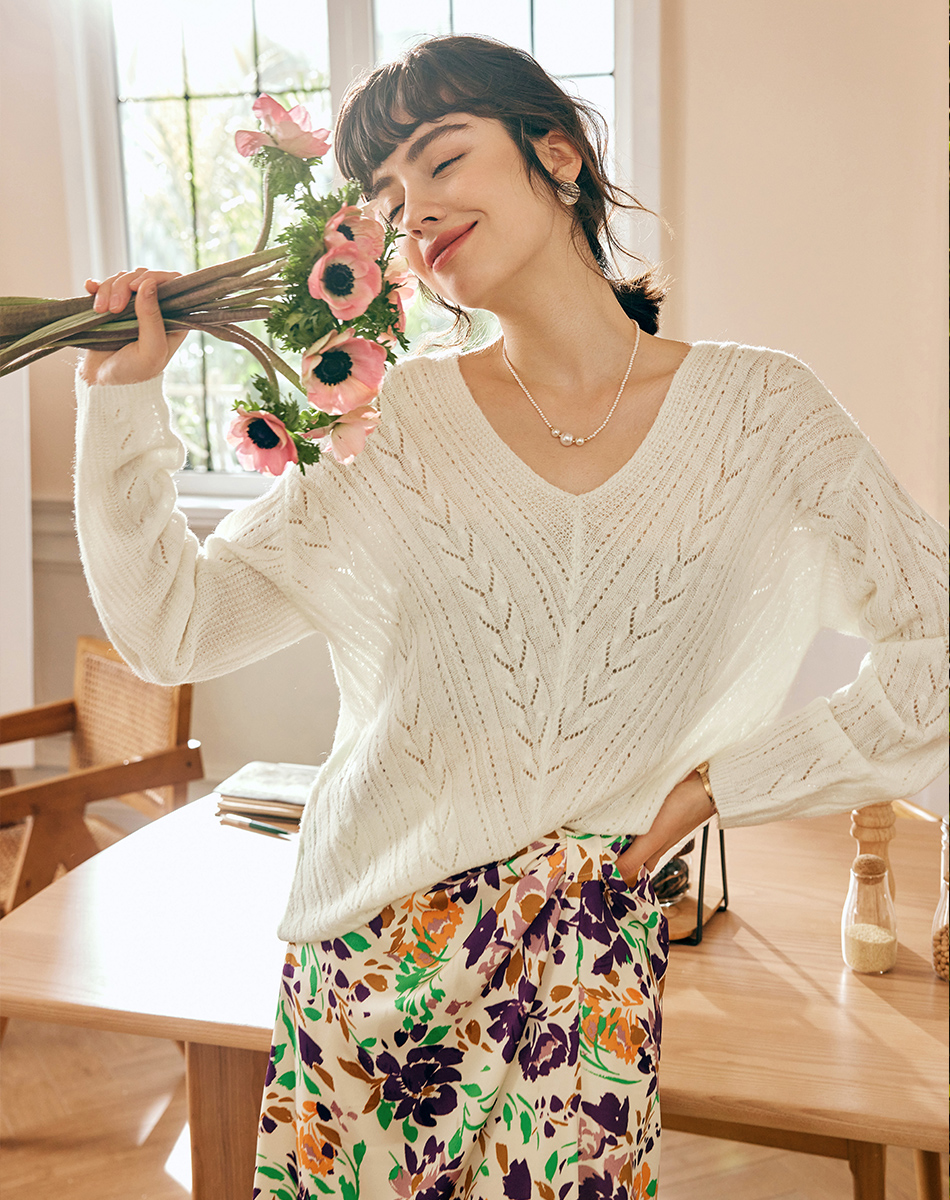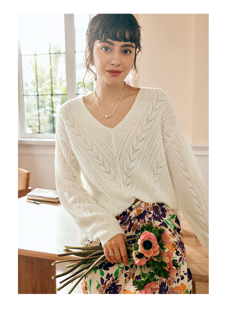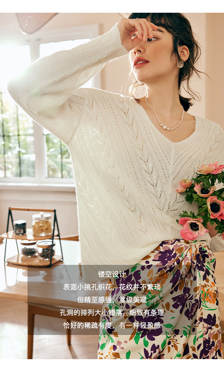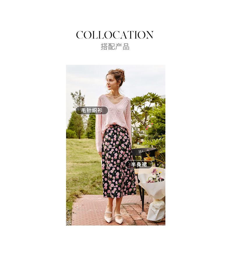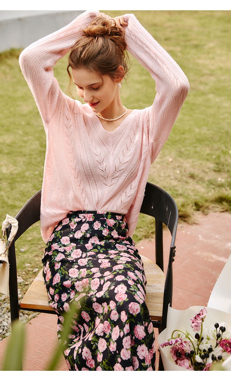 欧芮儿V领套头针织衫女秋冬2021年新款宽松显瘦慵懒时尚粉色毛衣