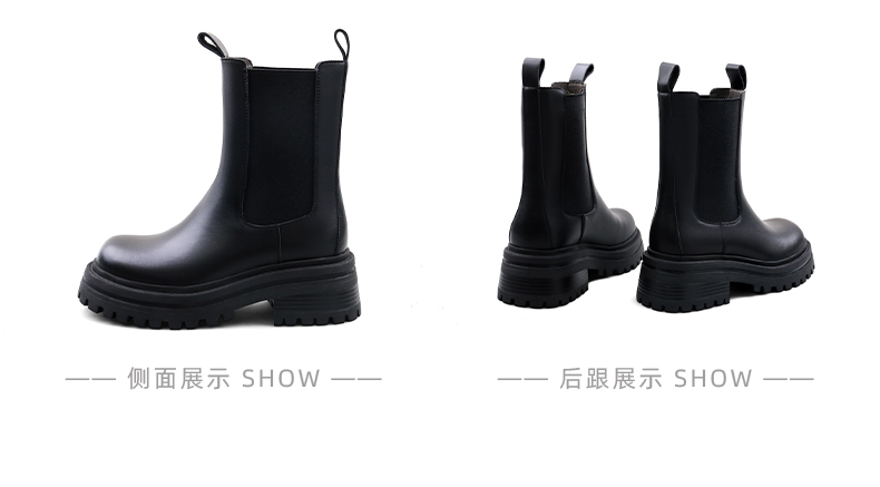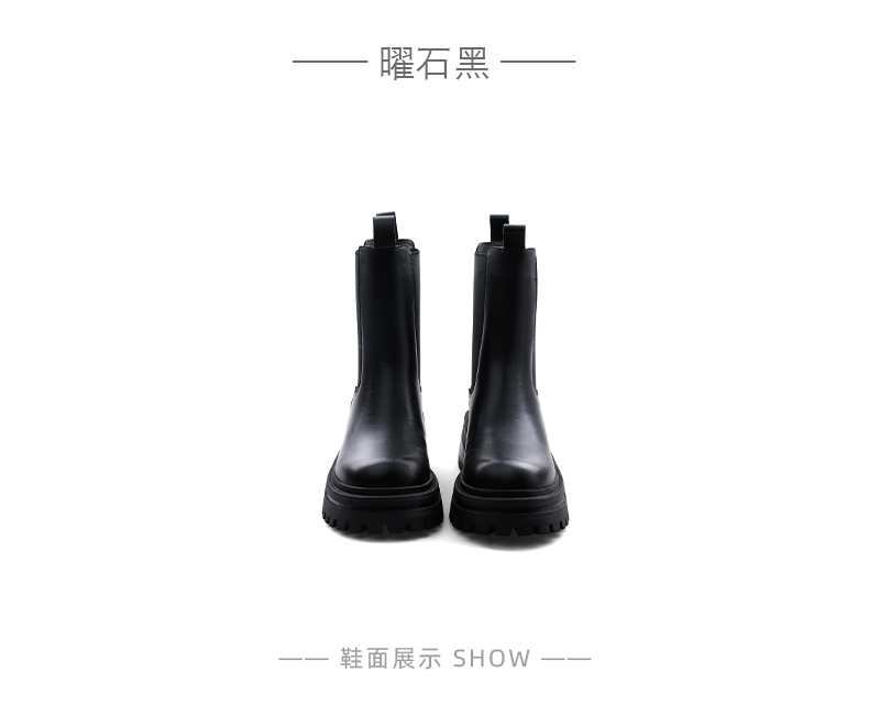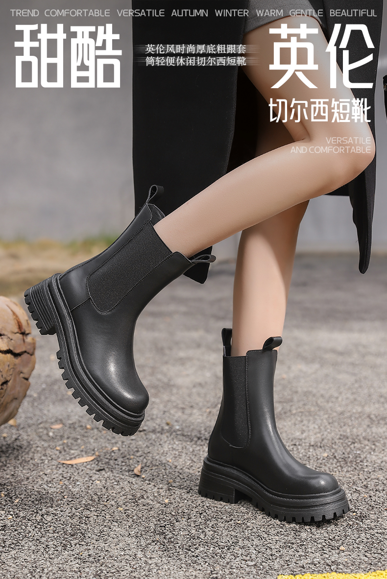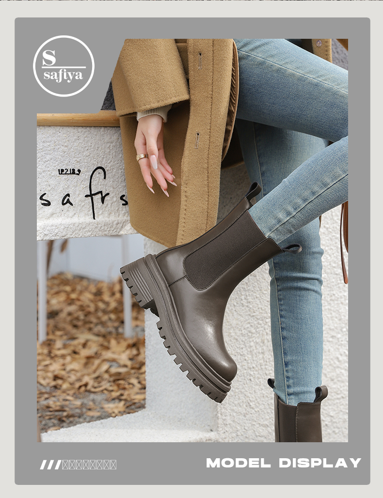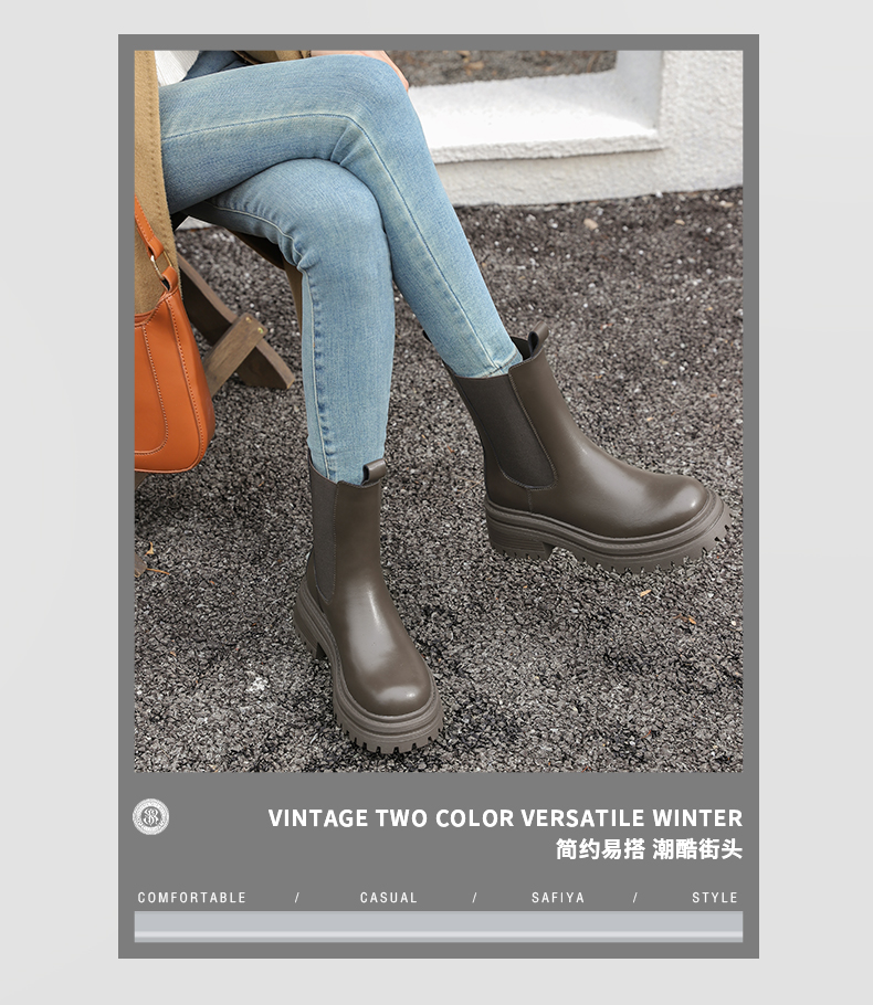Safiya/索菲娅2024英伦风时尚厚底粗跟套筒加绒休闲切尔西短靴SF44116410/SF44118410