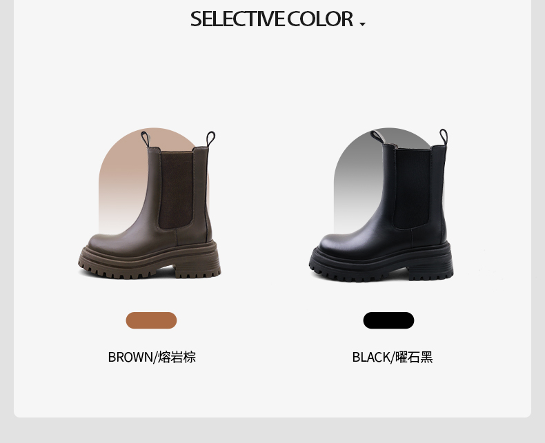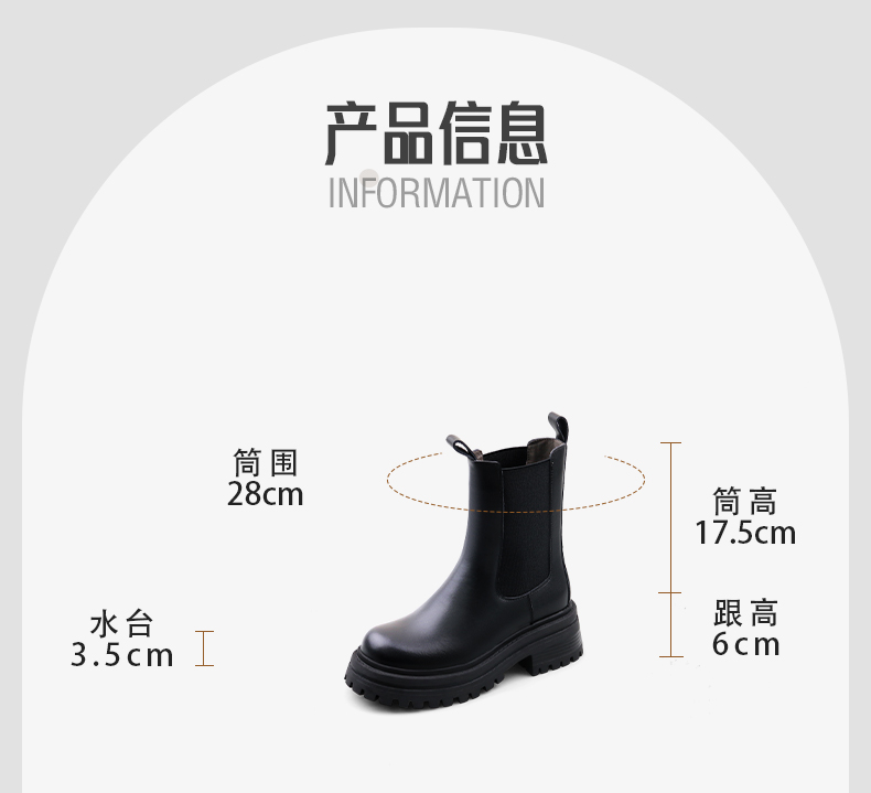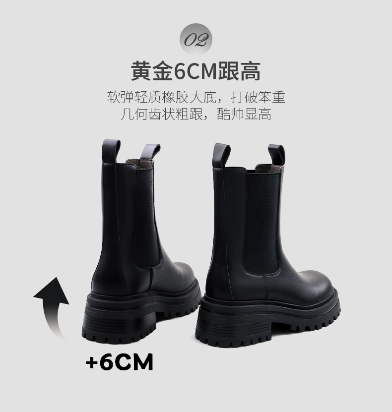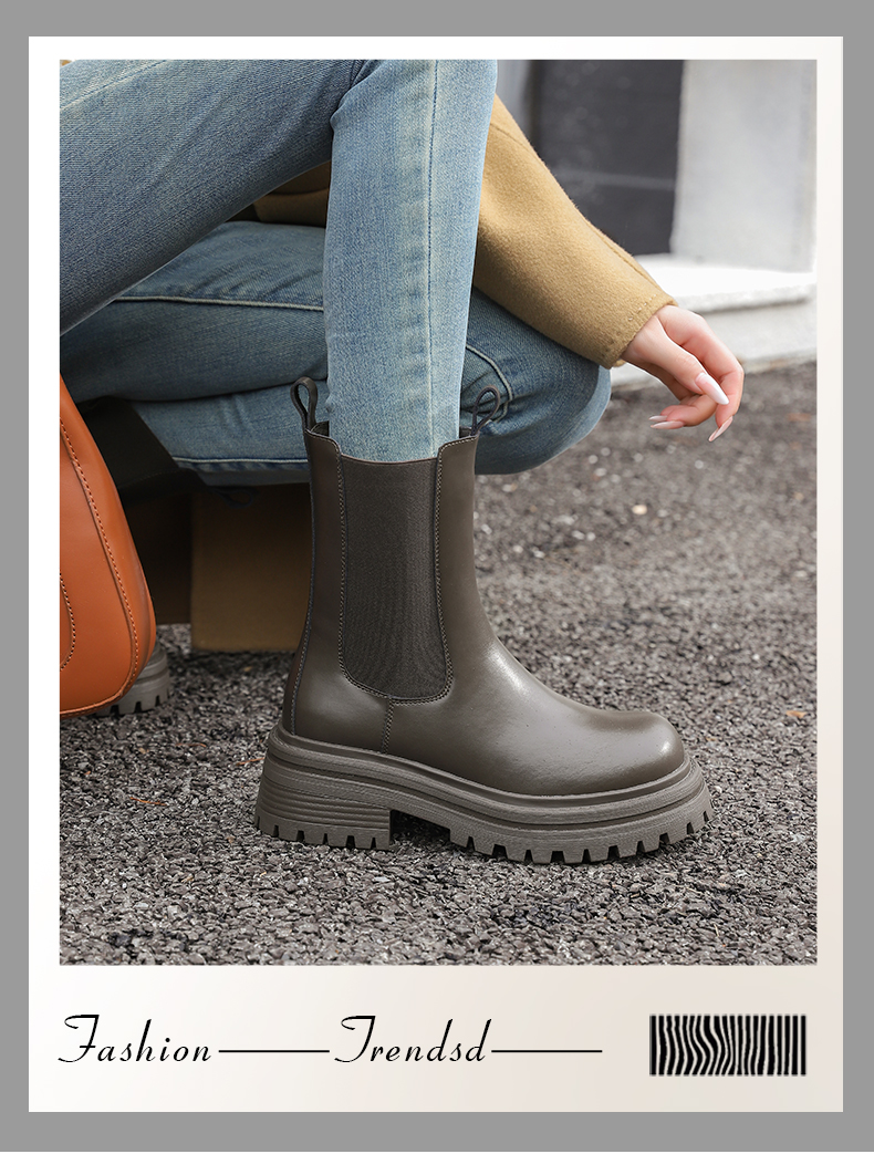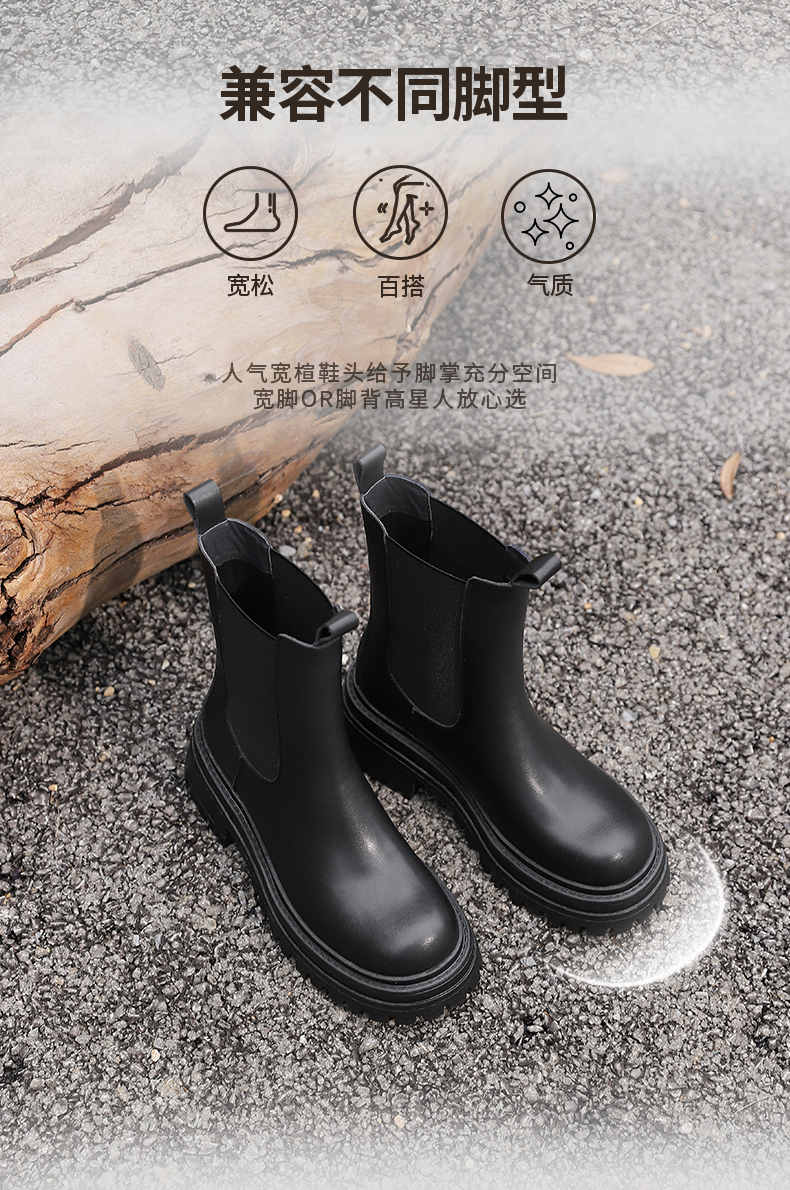 Safiya/索菲娅2024英伦风时尚厚底粗跟套筒加绒休闲切尔西短靴SF44116410/SF44118410