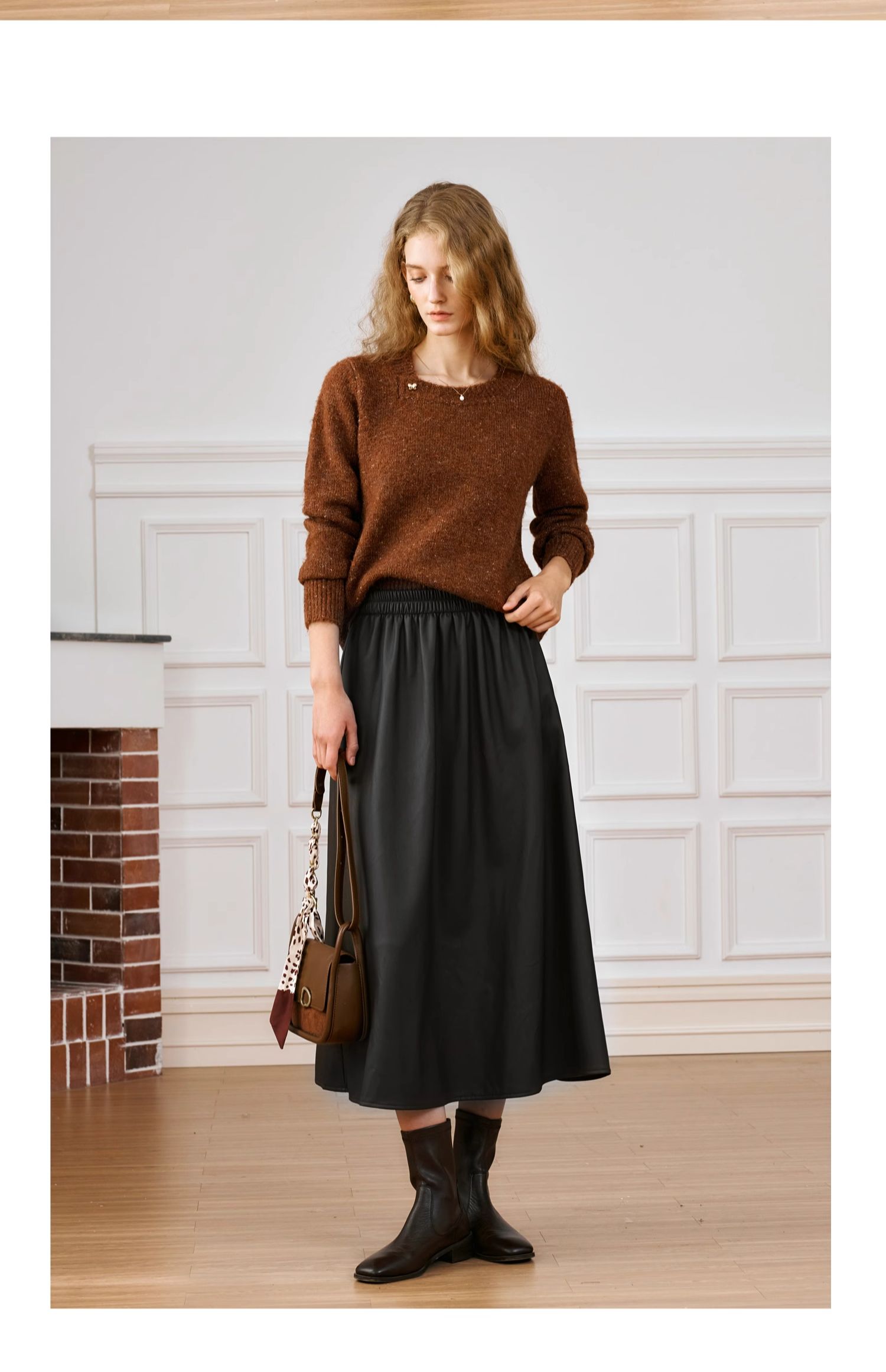OLrain欧芮儿法式半身裙女冬季2024新款名媛高级百搭伞形中长半裙