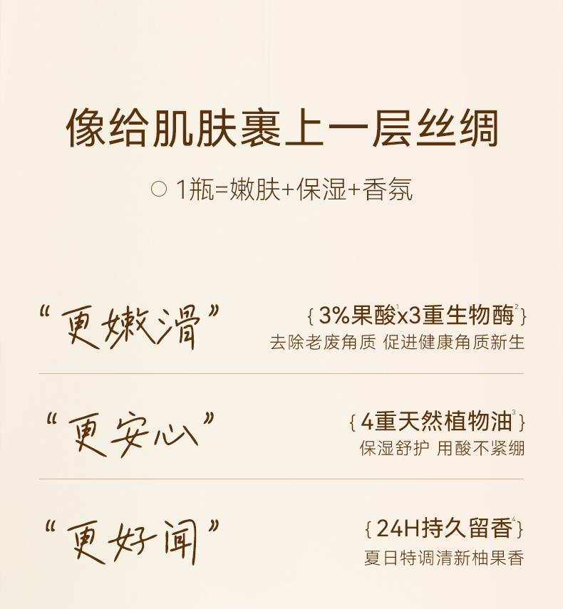 【多妈团购 水之蔻果酸嫩肤/美白/倍润身体乳】肉眼看得到的美白,长效保湿72小时,润而不粘,肌肤滑溜溜,一抹改善粗糙,超强修护保湿-乐果村