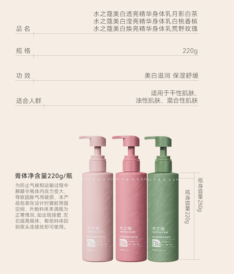 水之蔻美白身体乳,美白滋润,舒缓保湿