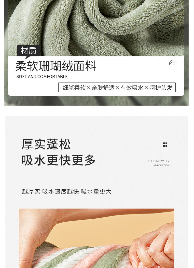 「双层加厚!正反两用」干发帽女吸水新款包头巾洗擦头发不掉毛浴帽居家布艺