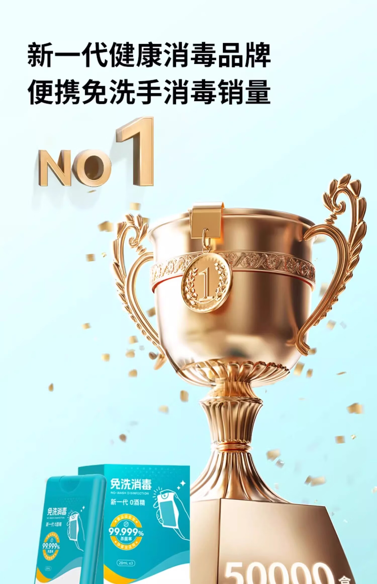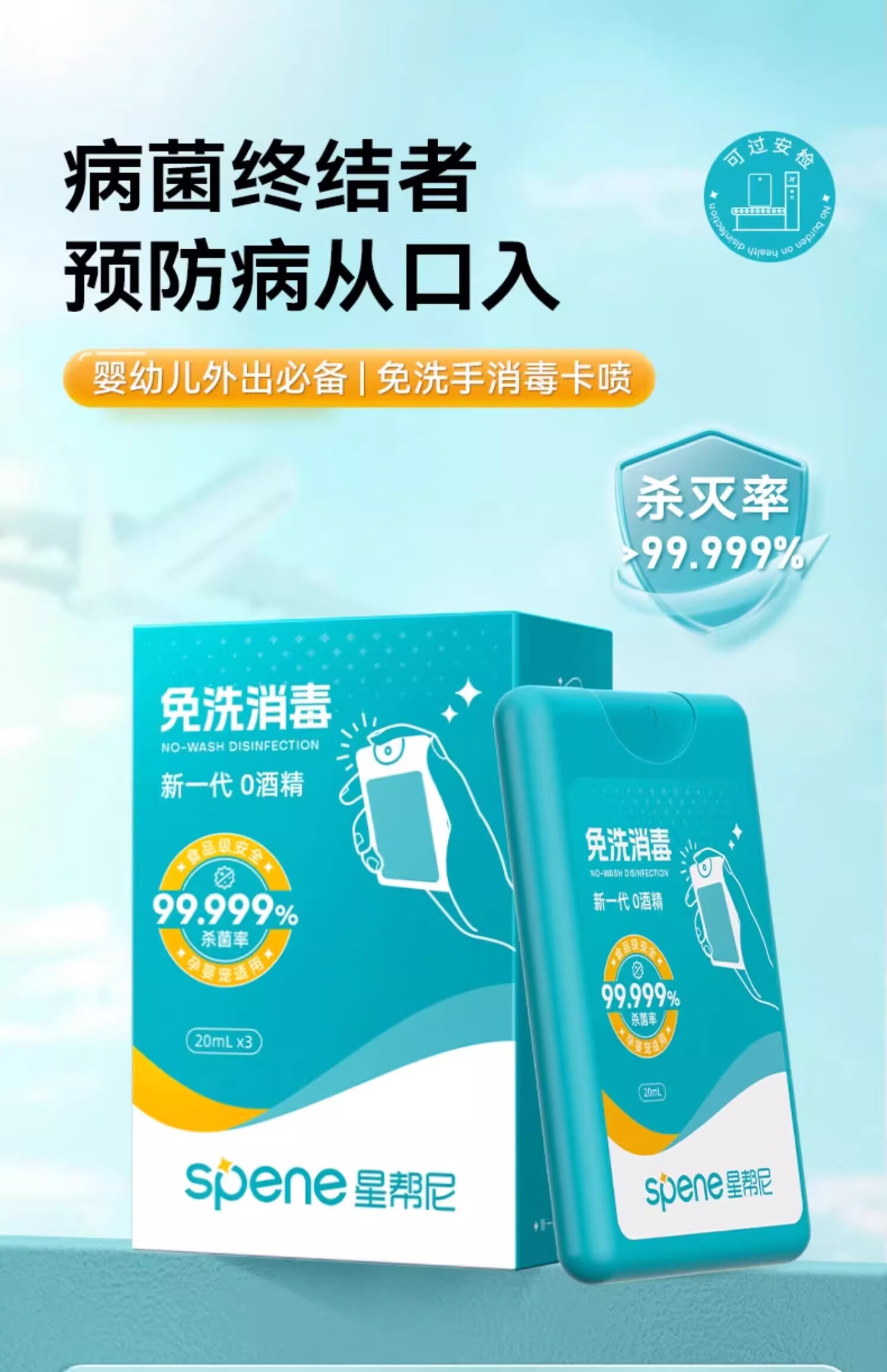 【ZY25】星帮尼免洗洗手消毒液免洗便携式20ml*3片/盒