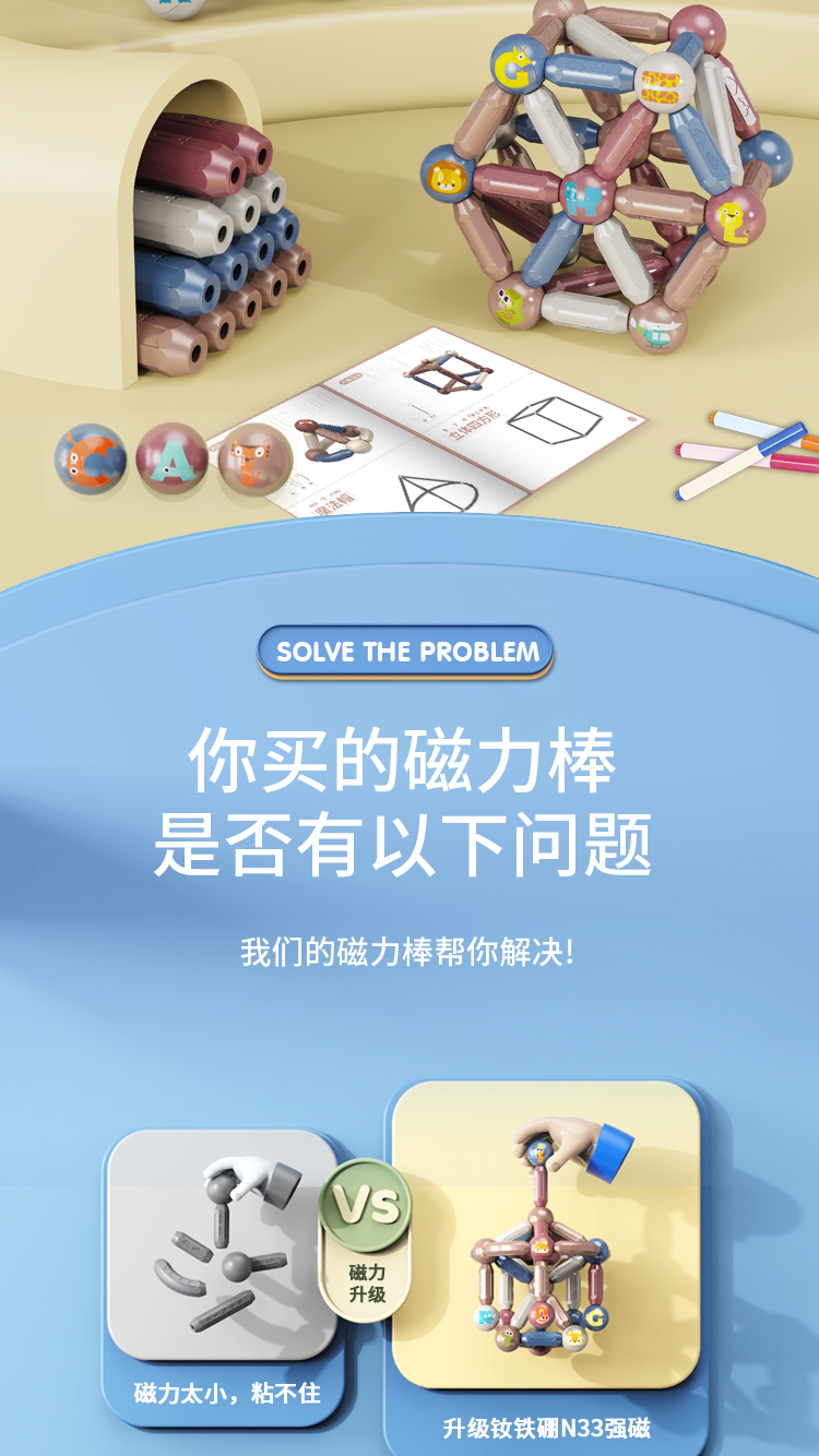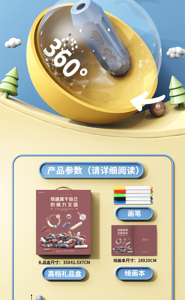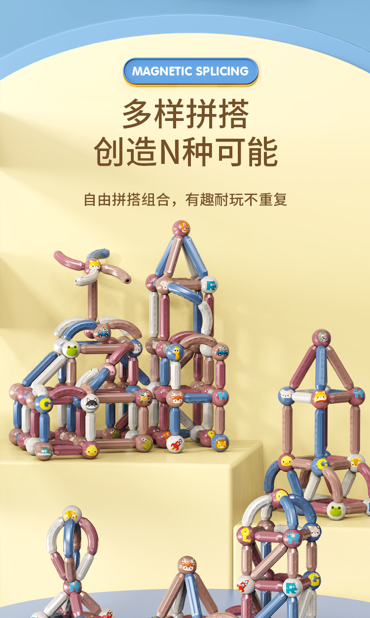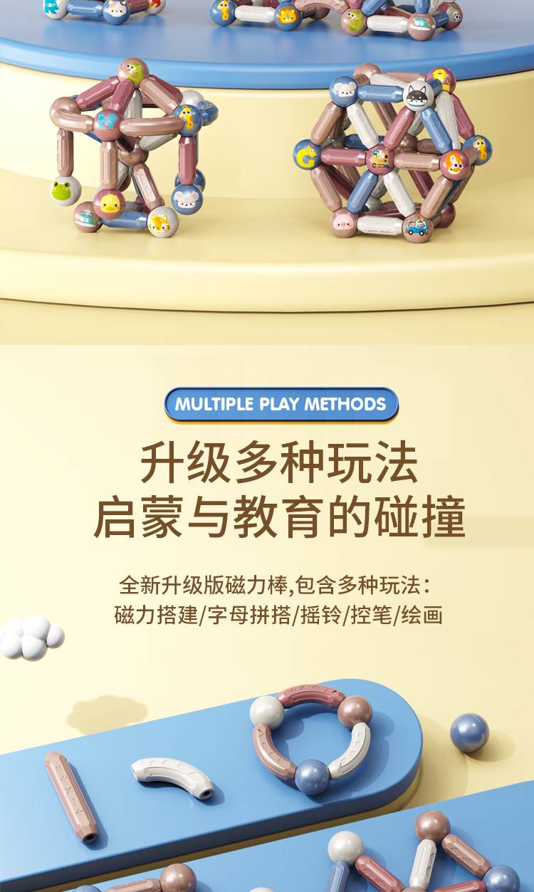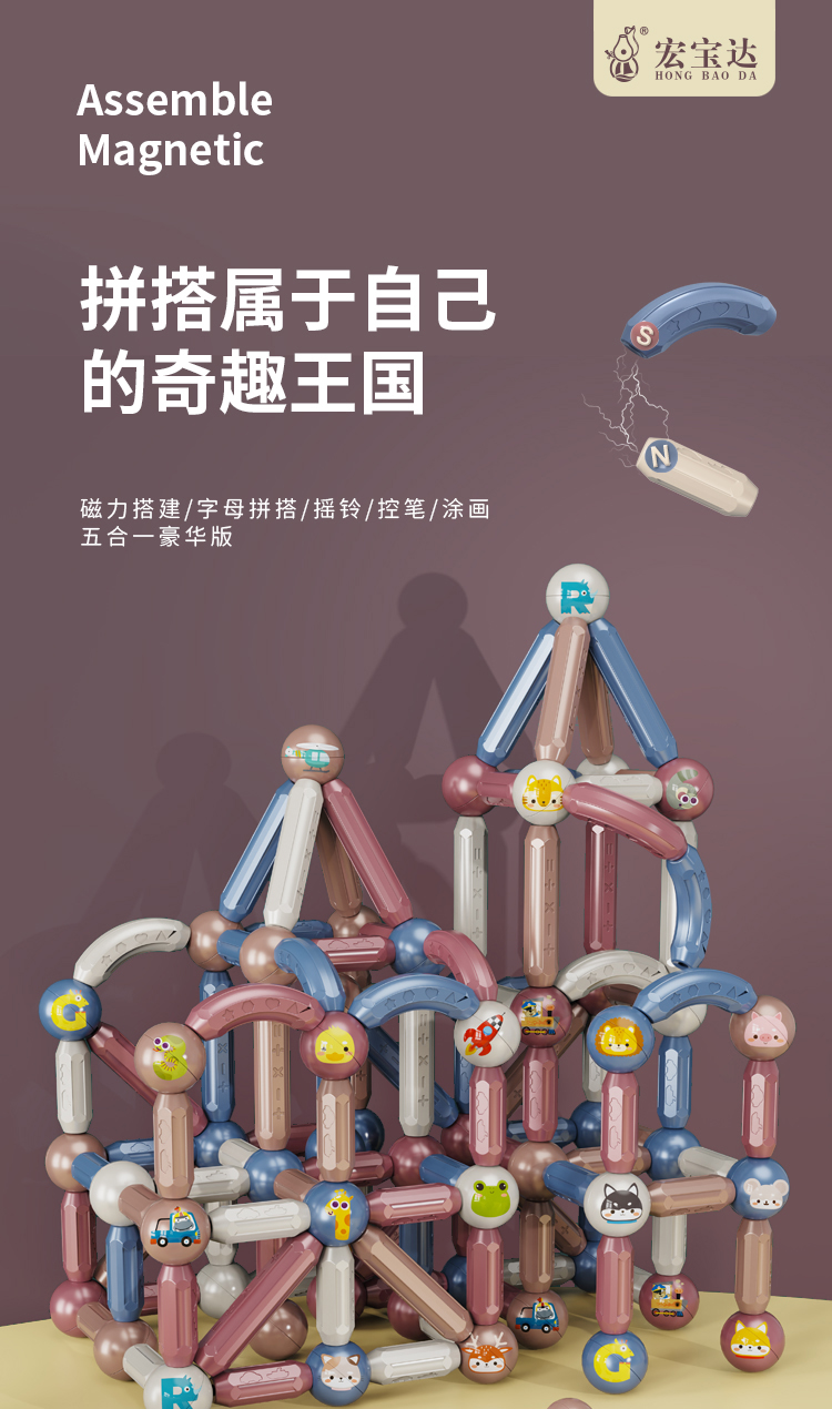 【百变磁力棒礼盒装】儿童早教拼搭玩具 搭建/认知/摇铃/控笔/绘画五合一 升级强磁 多样玩法