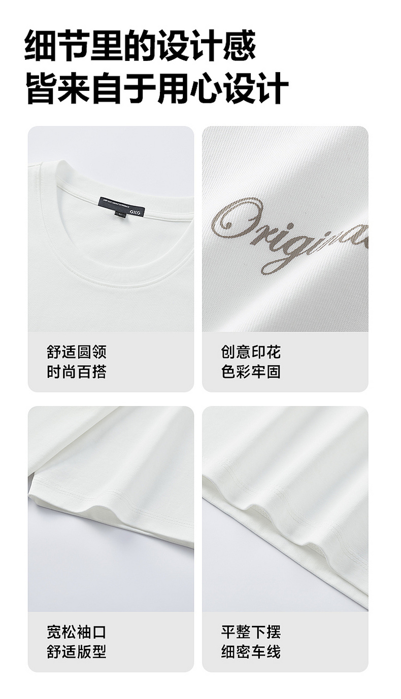 GXG男装 白色肌理面料短袖T恤 舒适简约休闲夏季热卖G24X442083
