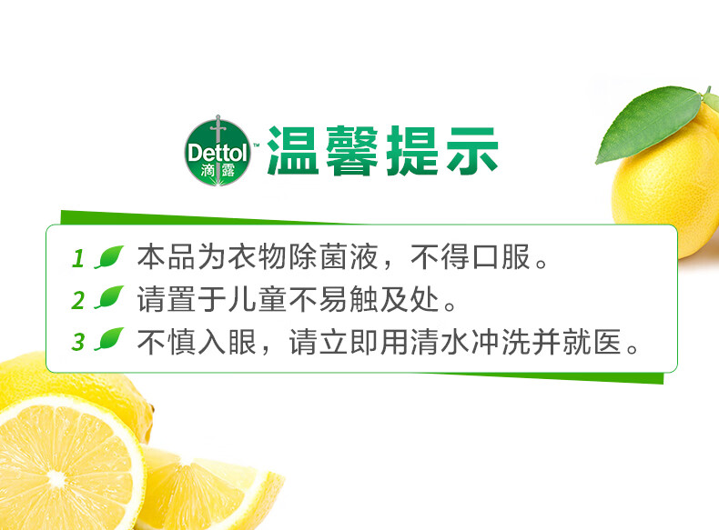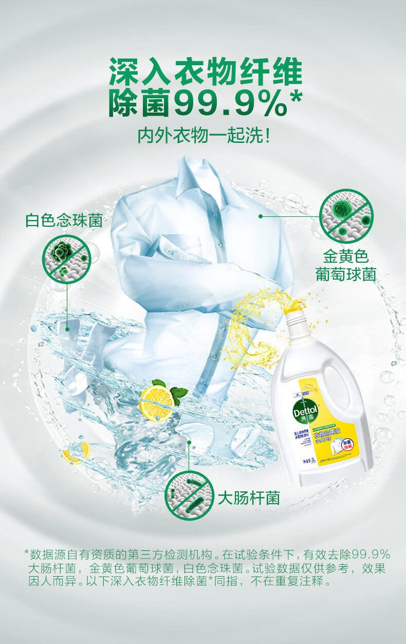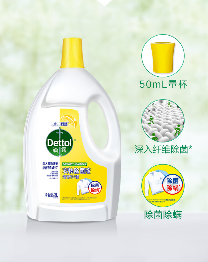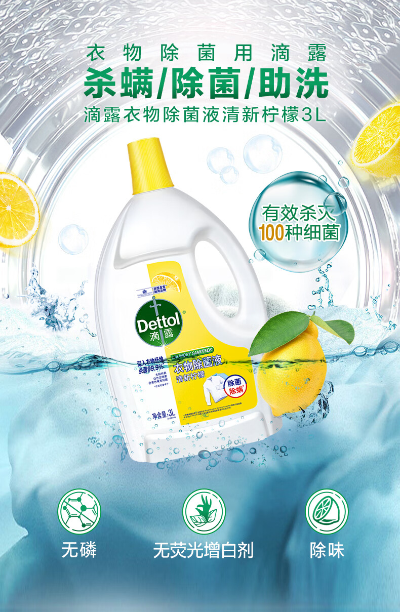 滴露 Dettol 衣物除菌液 清新柠檬3L 高效杀菌除螨消毒液 孕妇儿童内衣内裤一起洗 与洗衣液、柔顺剂配合