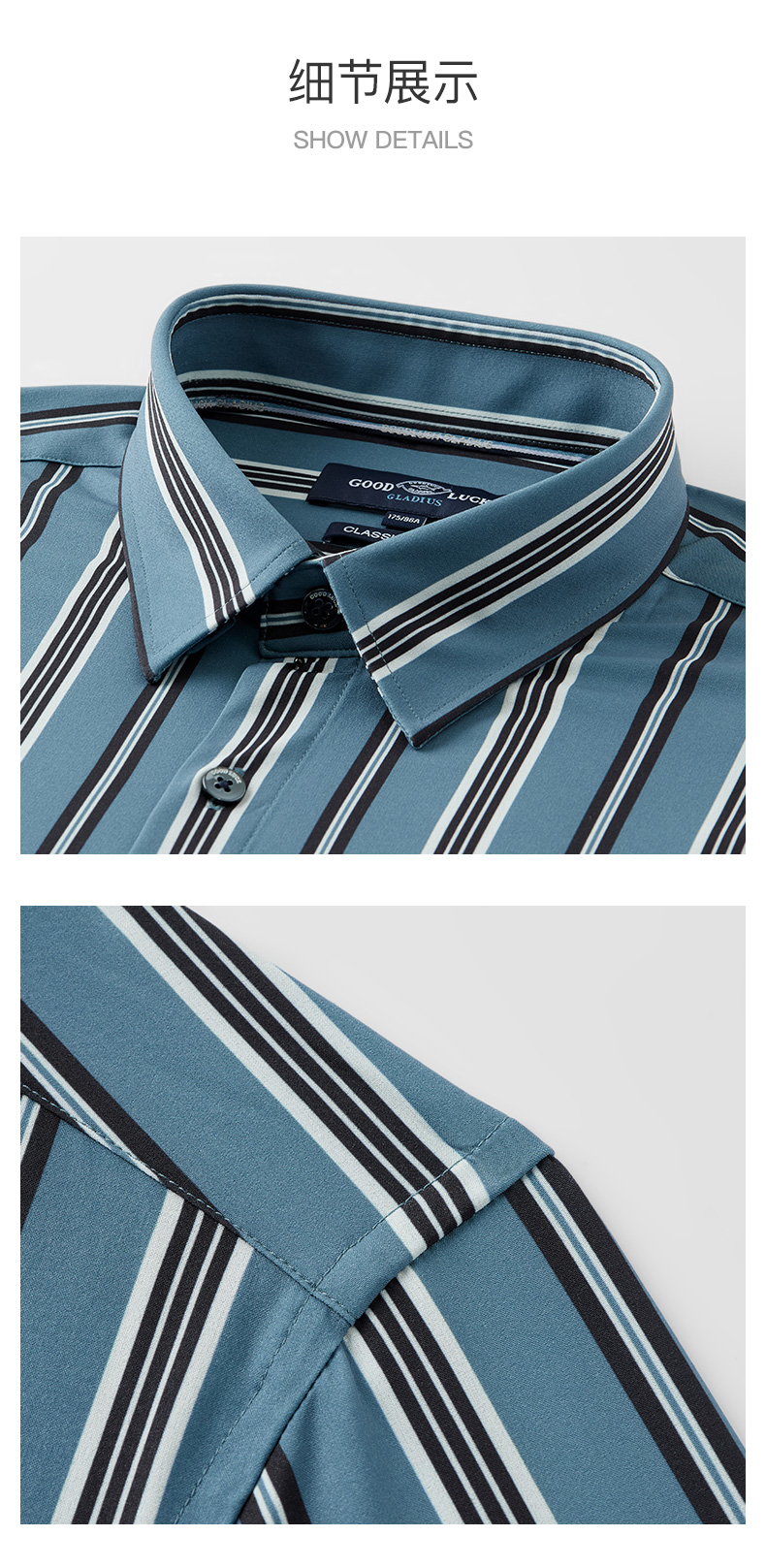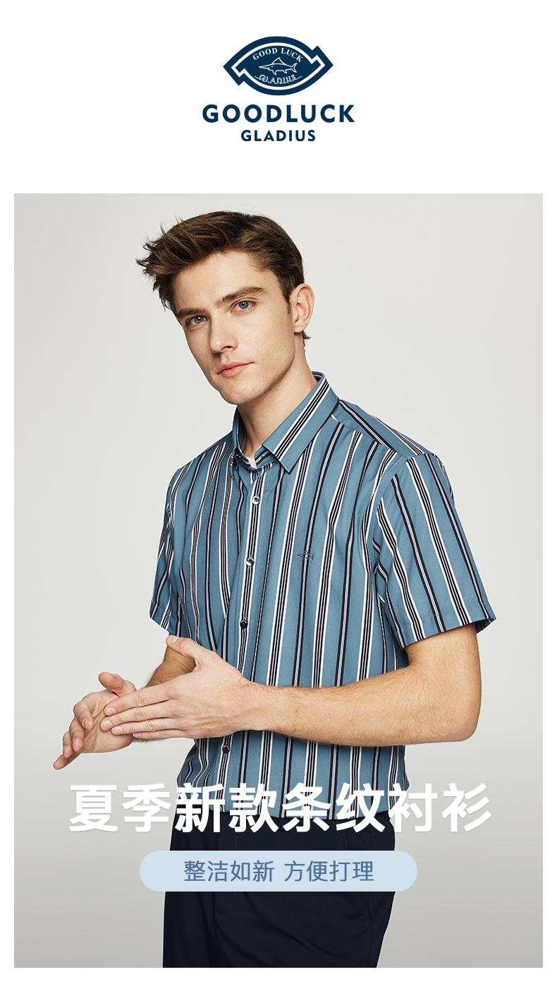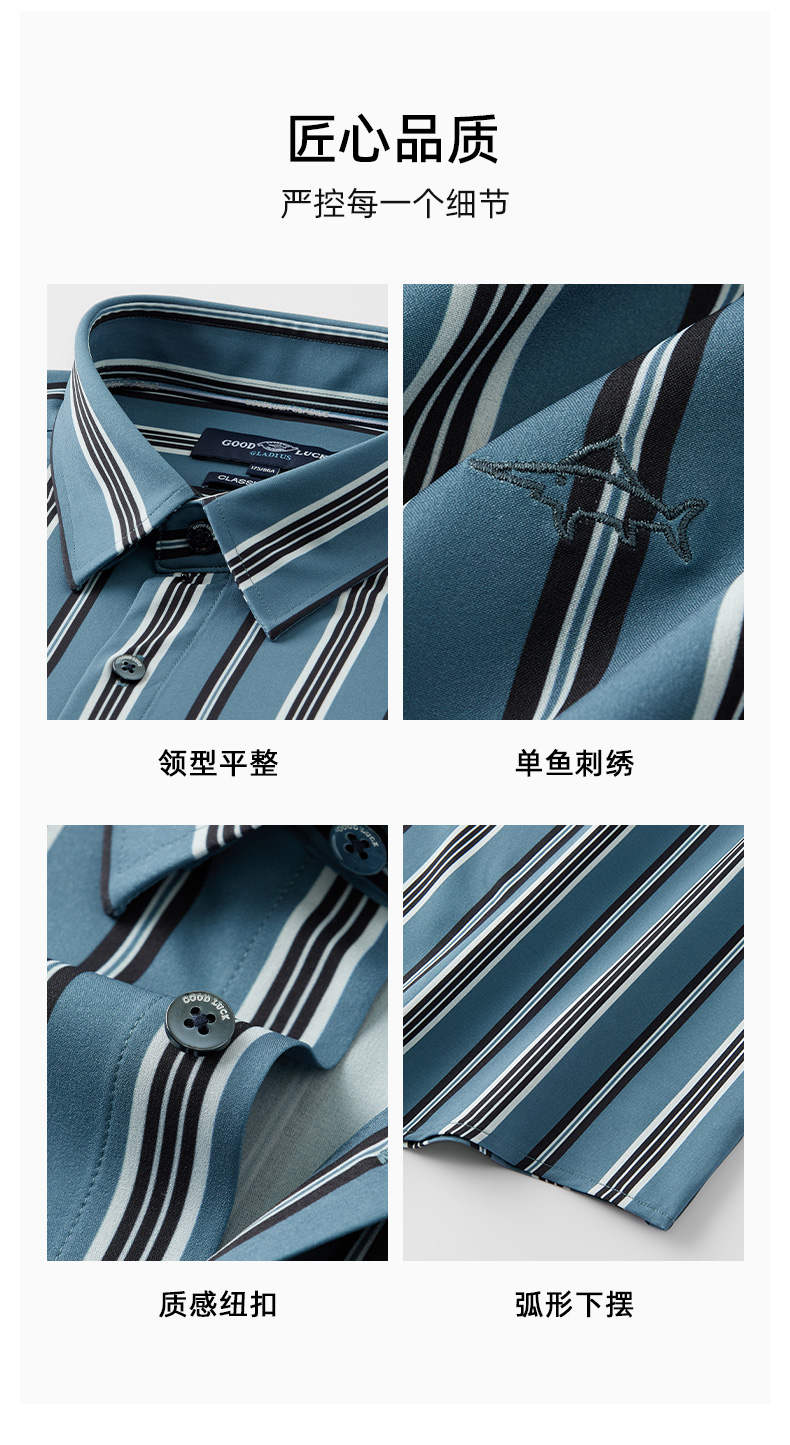 GOOD LUCK/德鲨100%棉雅致蓝白条纹时尚百搭长袖衬衫BY21309-842
