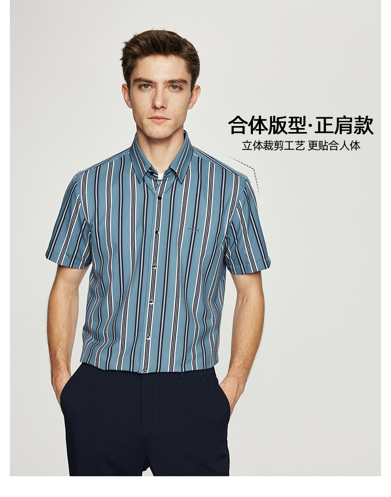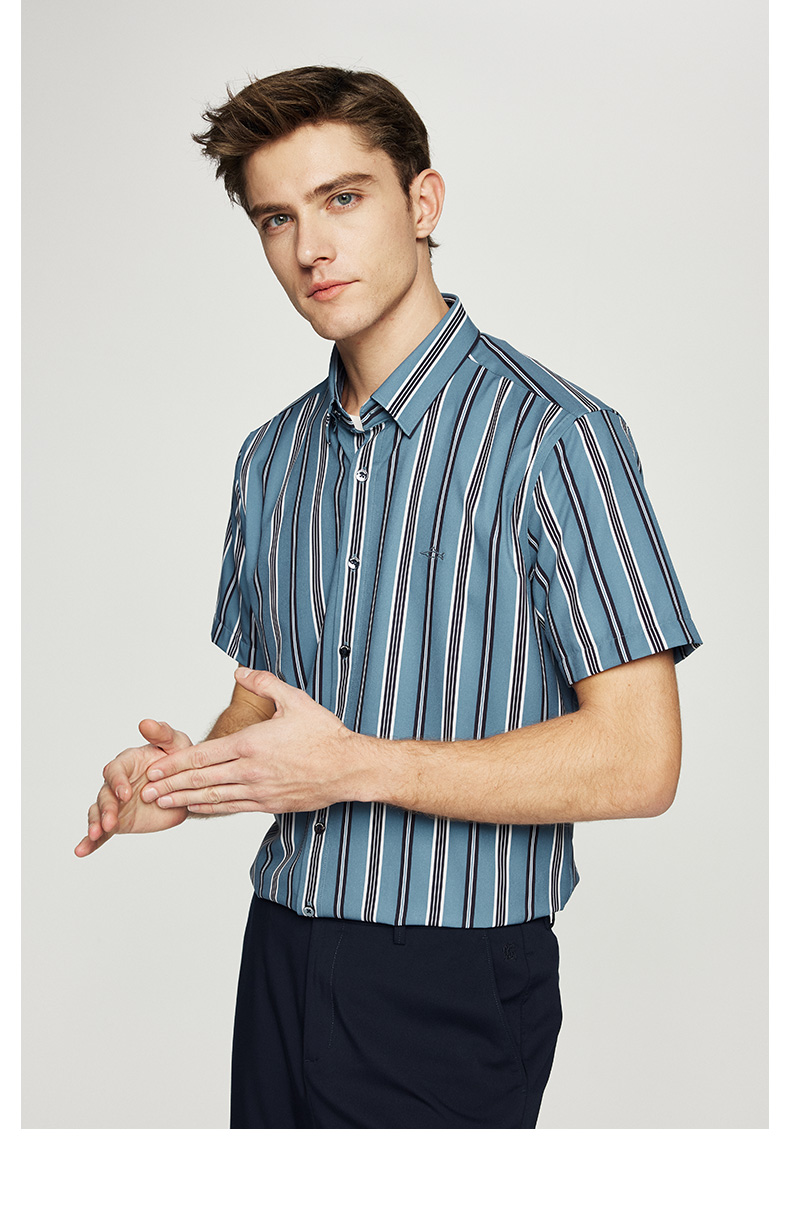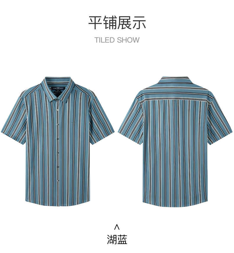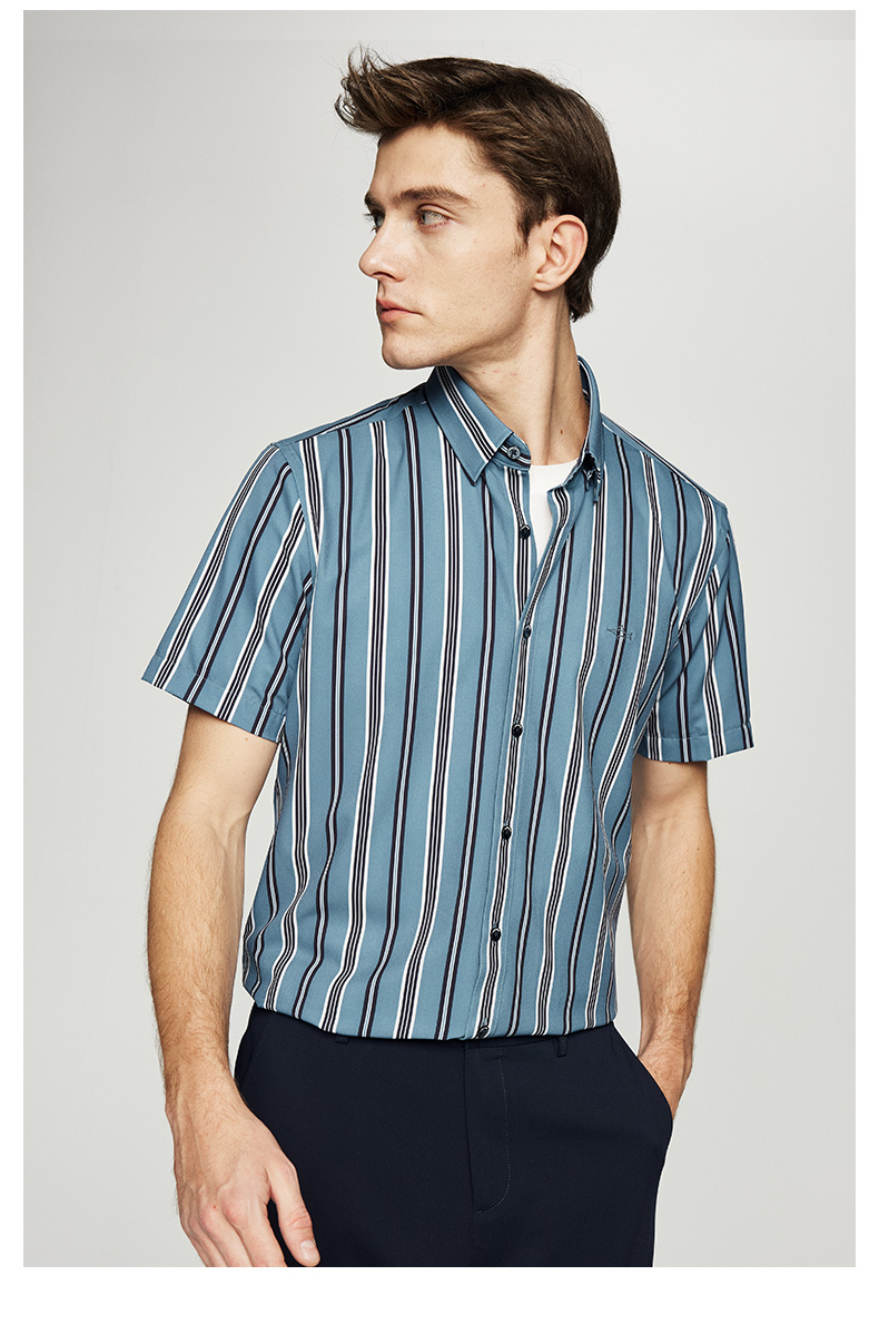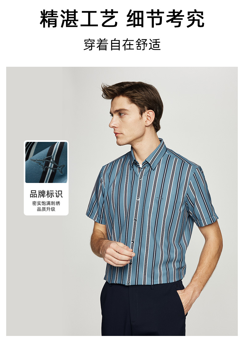 【高弹】德鲨鲨鱼条纹短袖衬衫男2026夏新款休闲打底衬衣