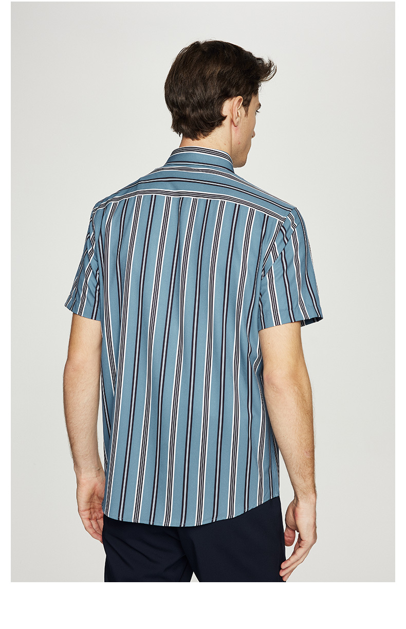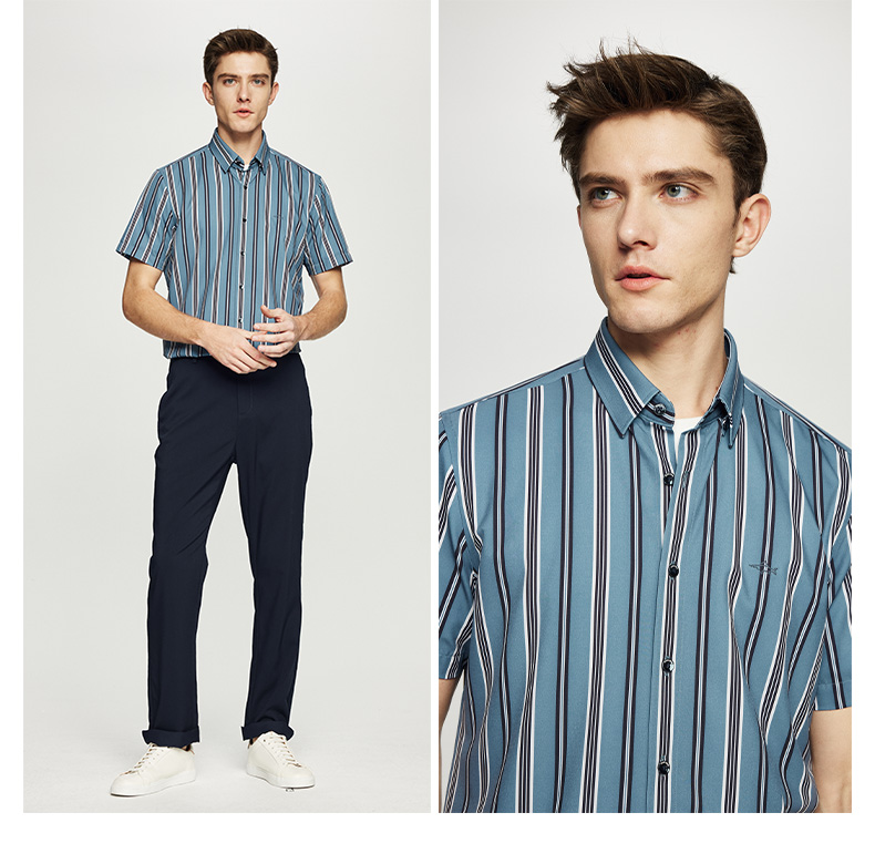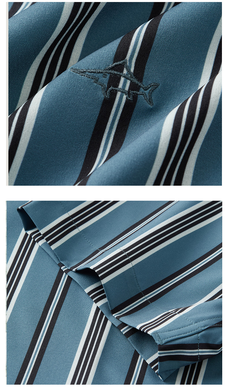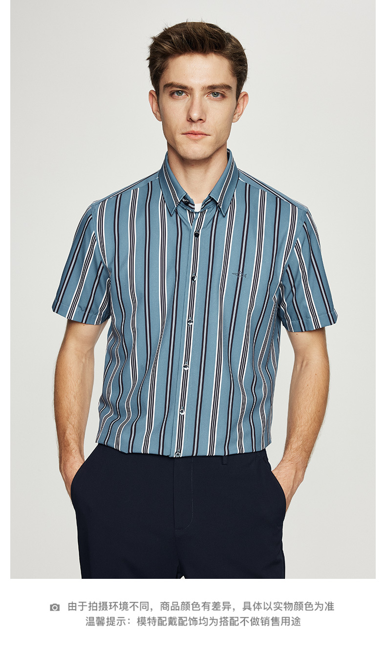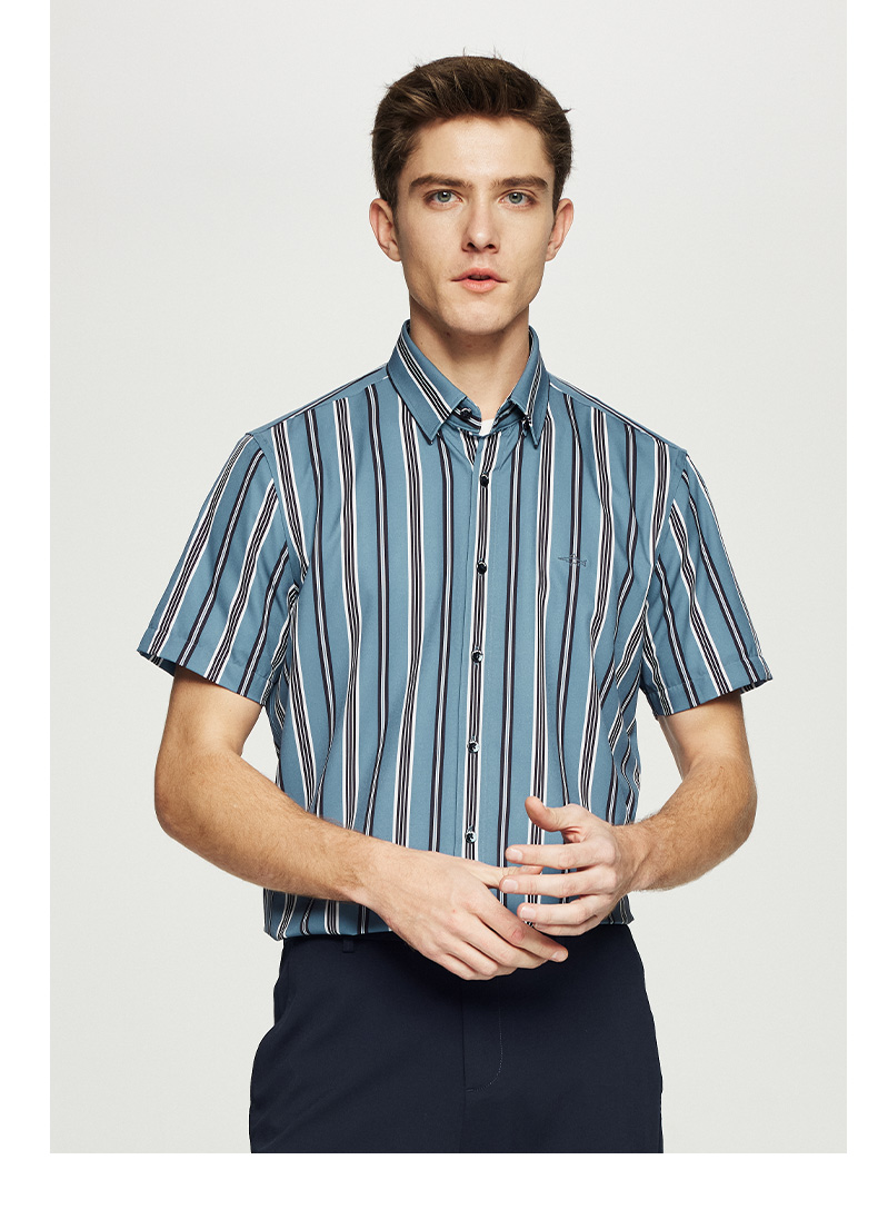 【高弹】德鲨鲨鱼条纹短袖衬衫男2026夏新款休闲打底衬衣