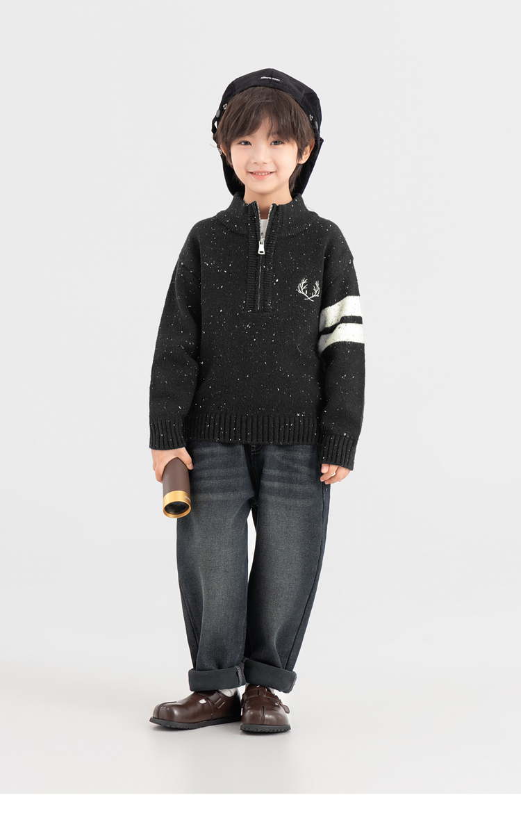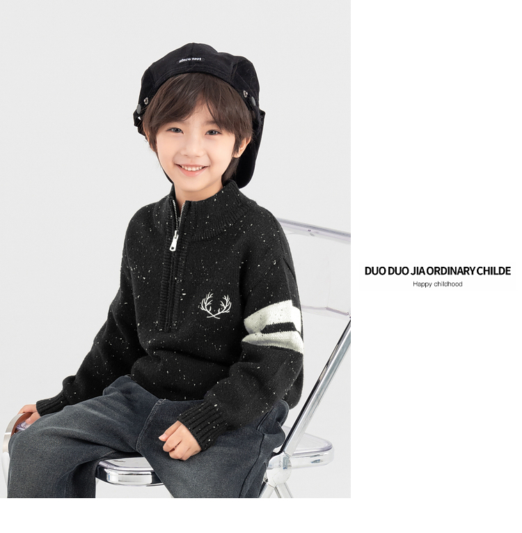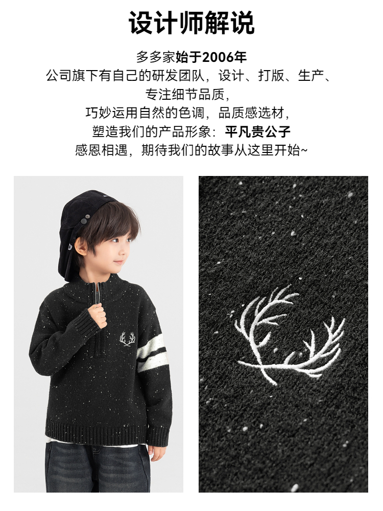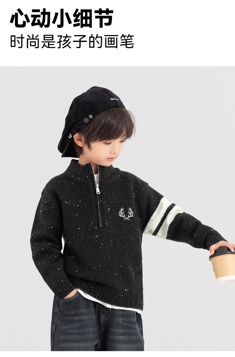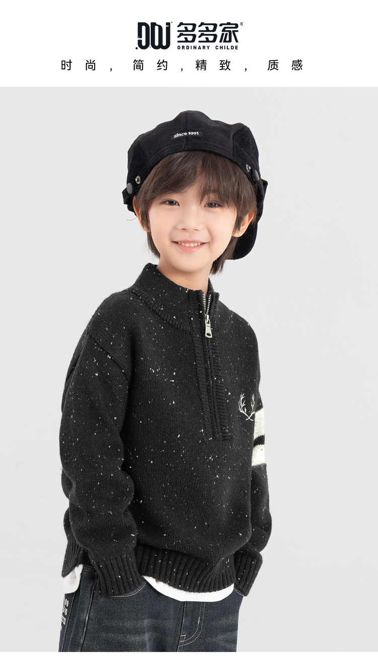 【件件底价,童装双倍积分】多多家男童毛衣针织衫秋冬季2025新款儿童中大童半拉链刺绣冬装潮11279