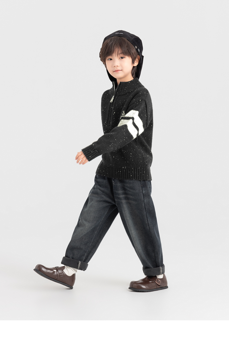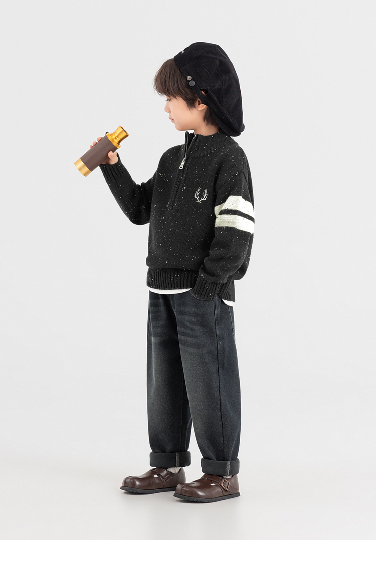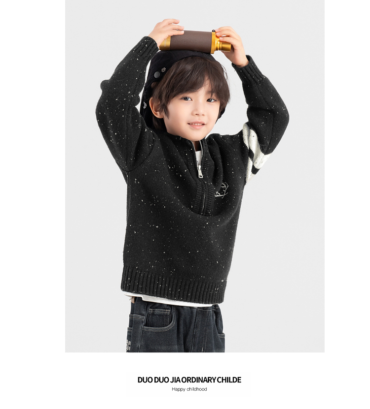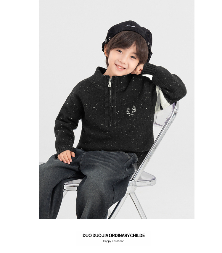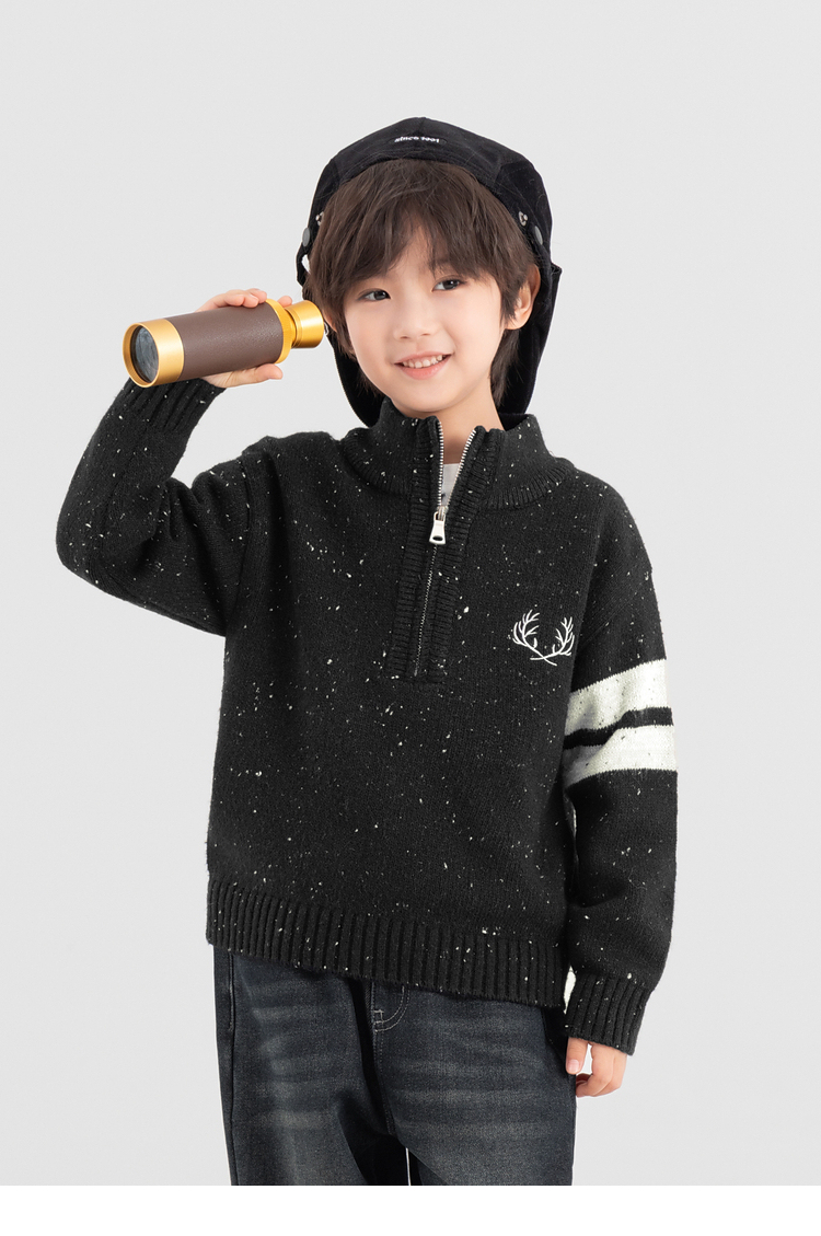 【件件底价,童装双倍积分】多多家男童毛衣针织衫秋冬季2025新款儿童中大童半拉链刺绣冬装潮11279