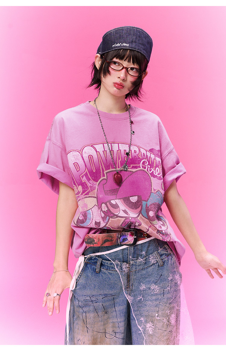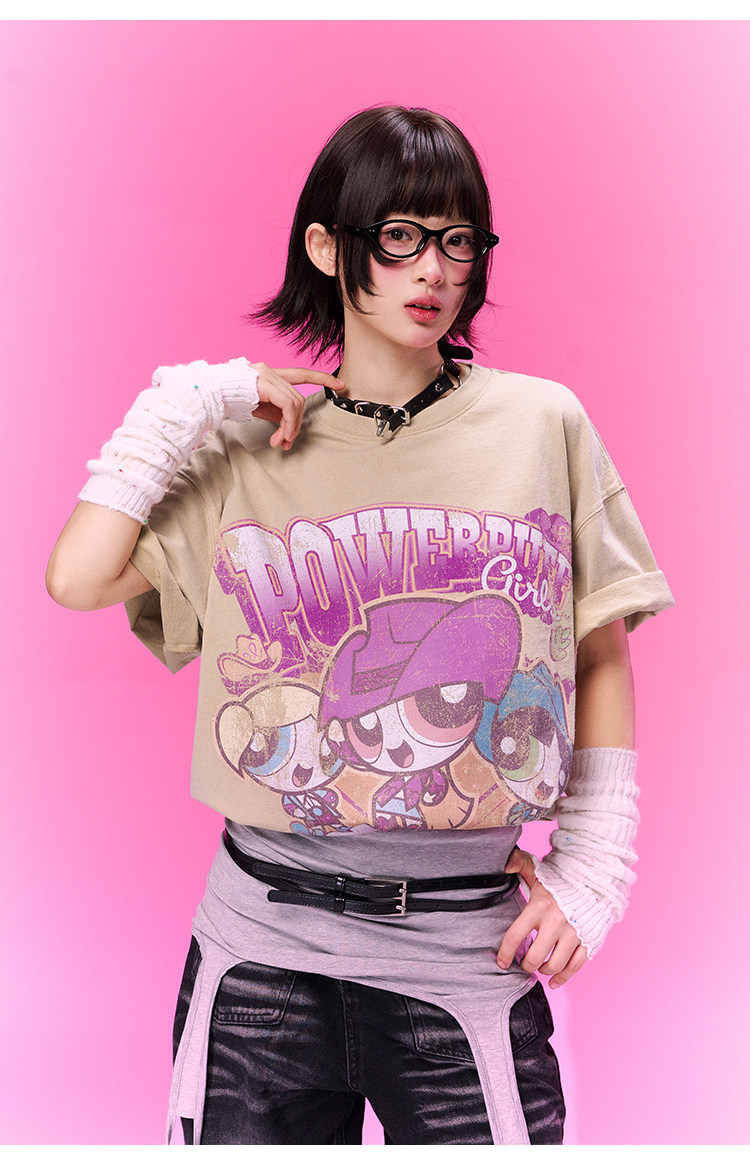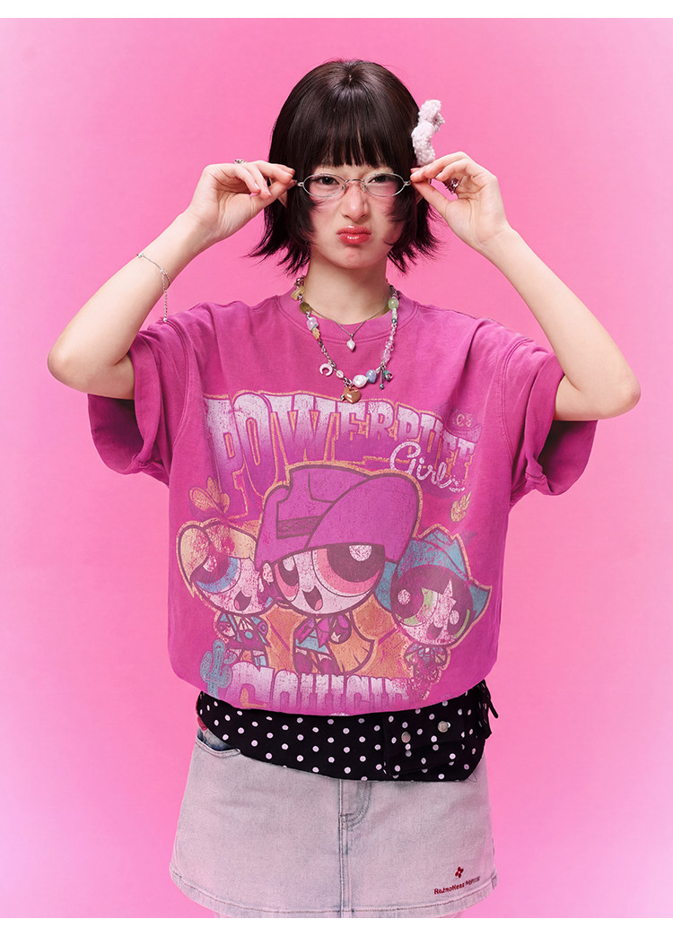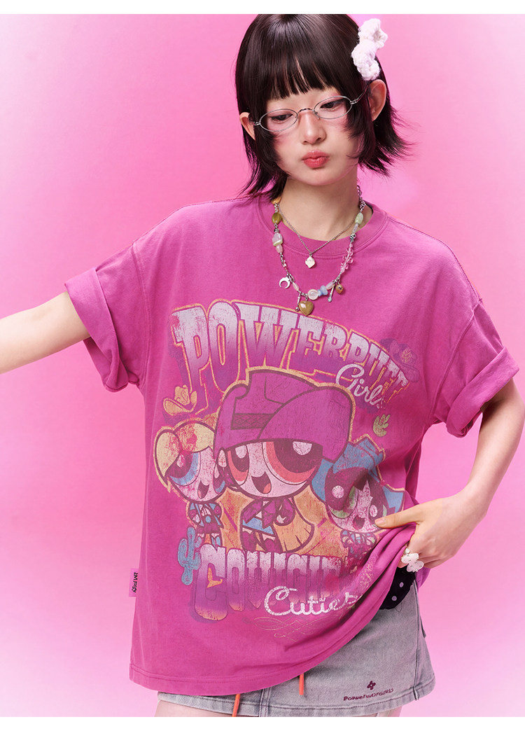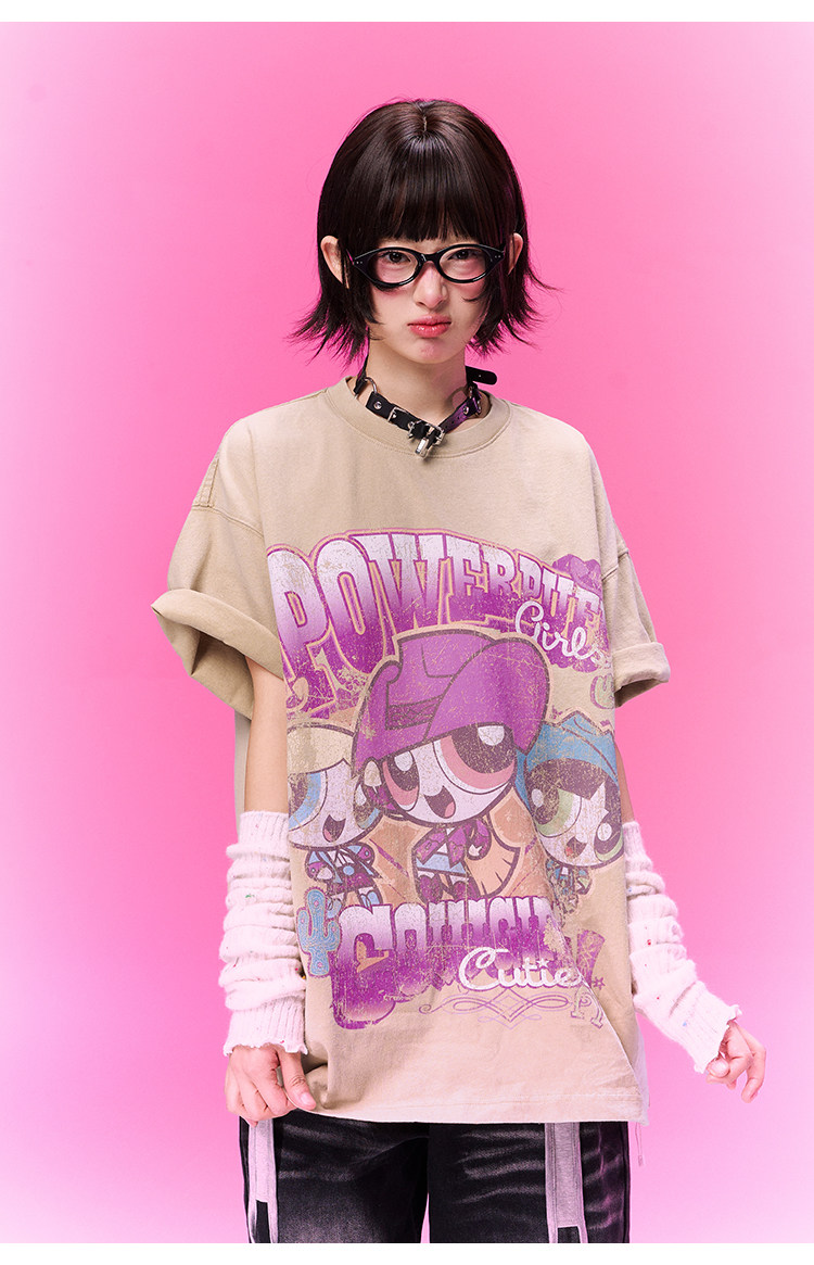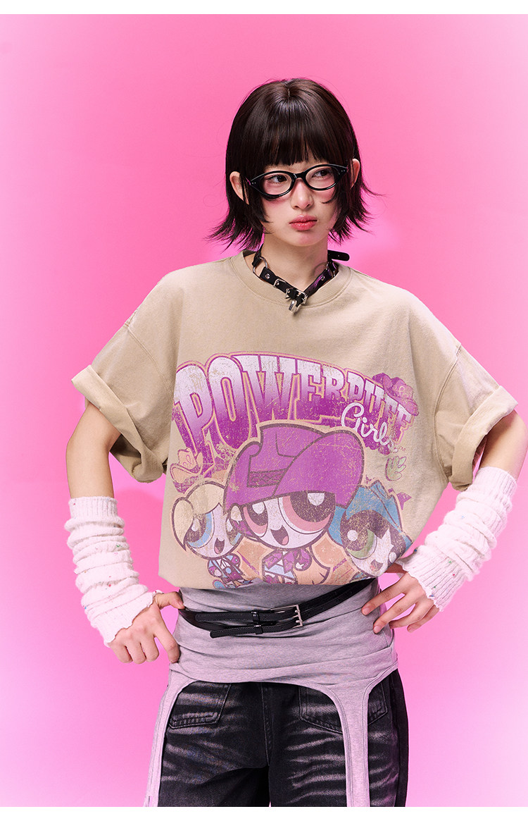 飞天小女警联名 BJHG不计后果复古卡通t恤女款夏新款宽松透气上衣