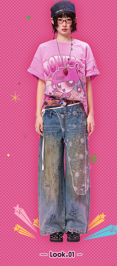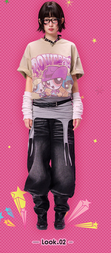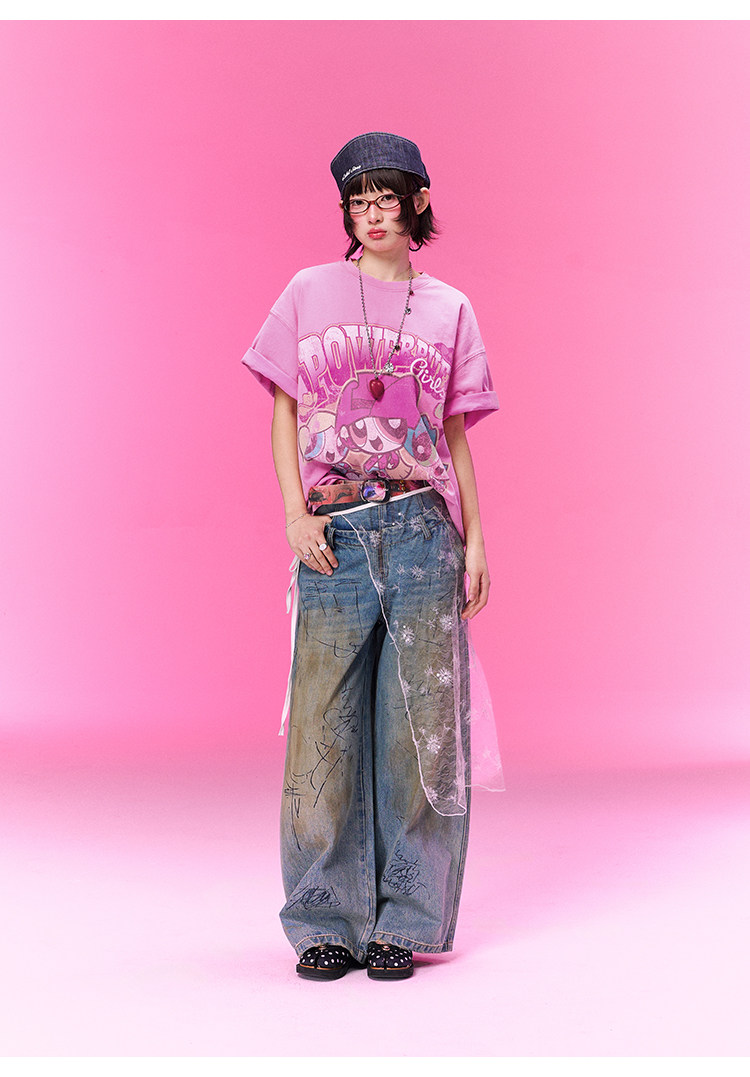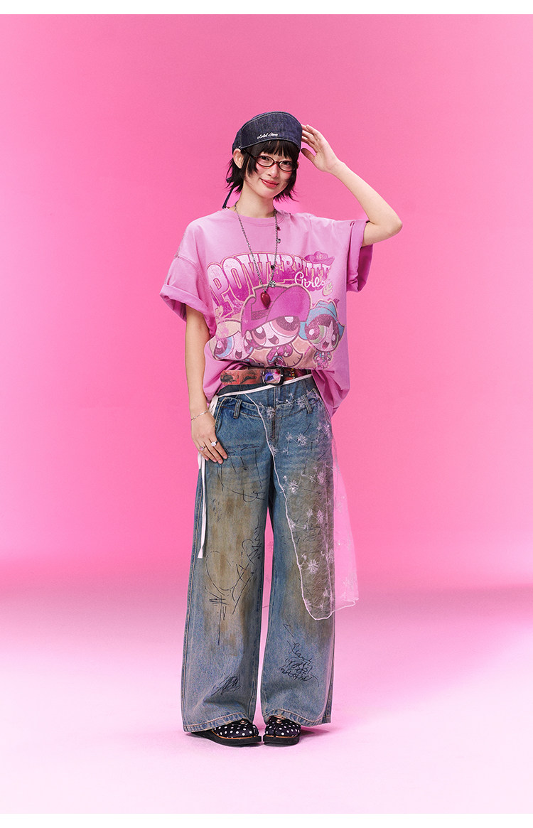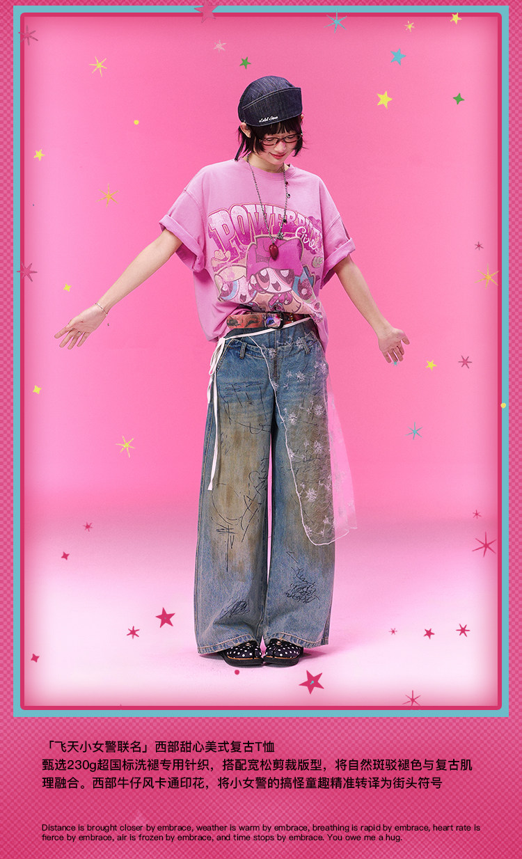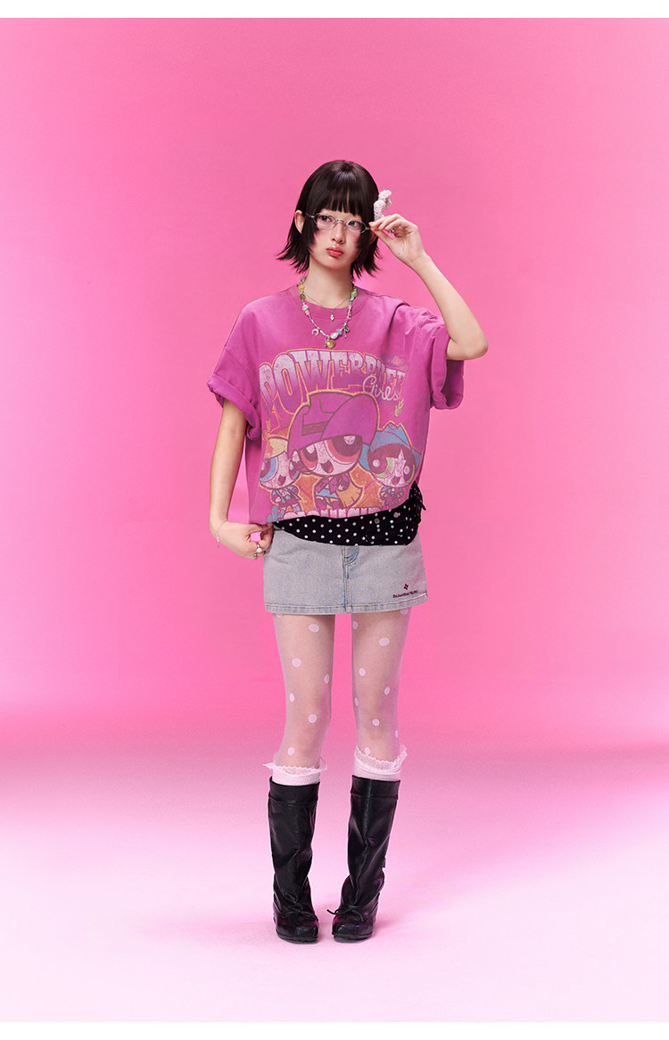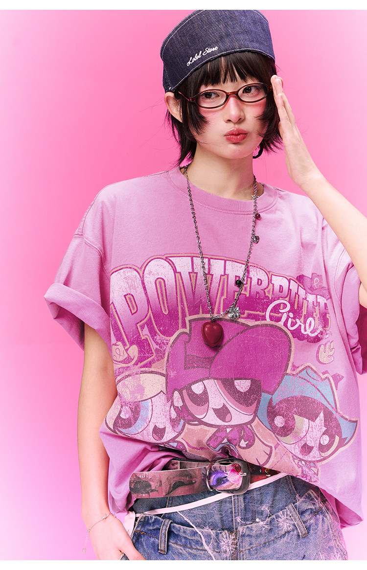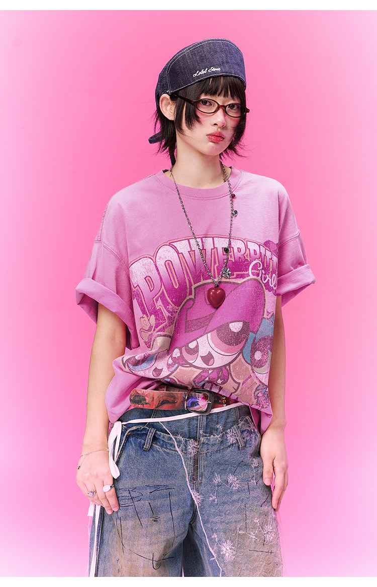 飞天小女警联名 BJHG不计后果复古卡通t恤女款夏新款宽松透气上衣