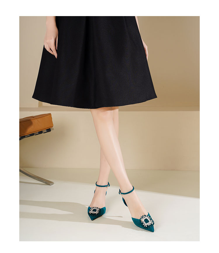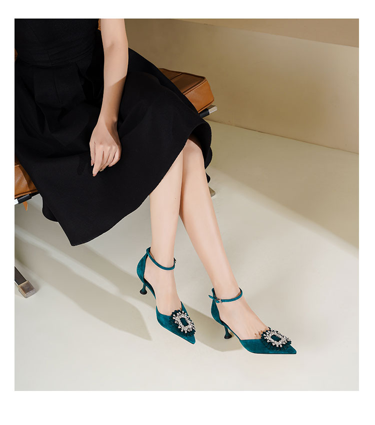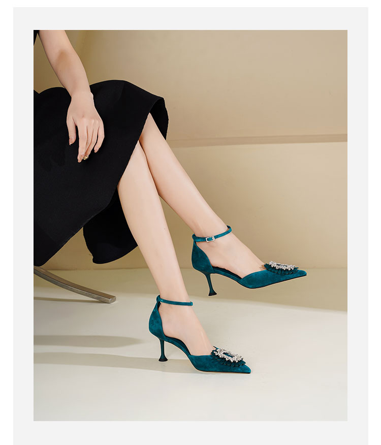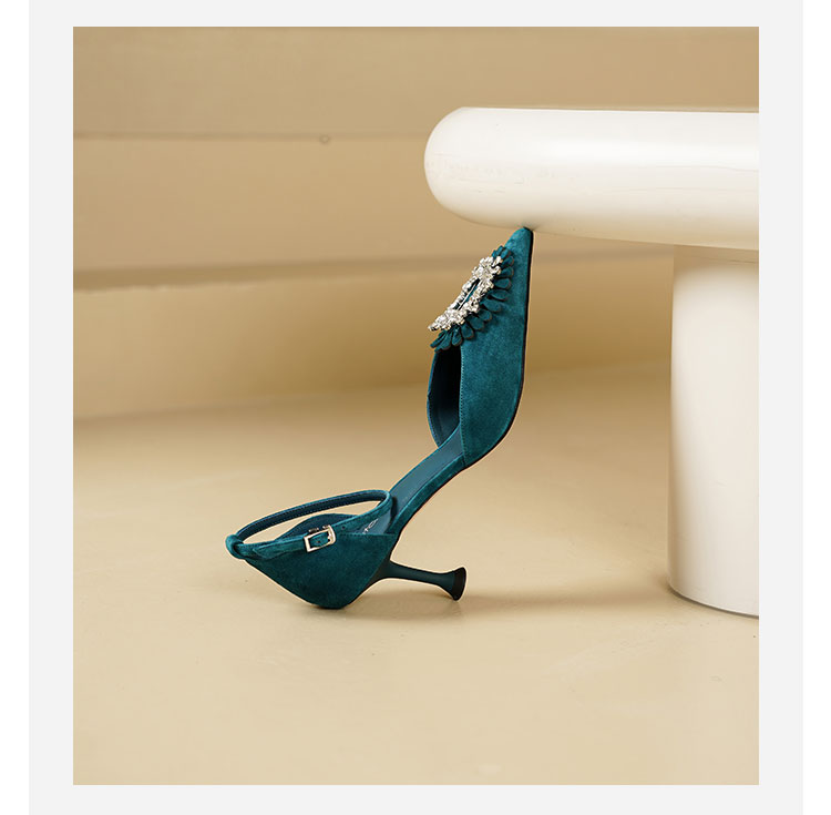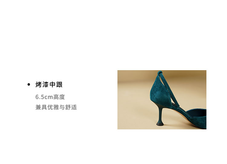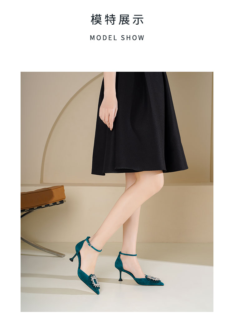 Westory2026年春季尖头中跟羊京孔雀蓝配花型方扣中空单鞋晚宴鞋W26AH50141
