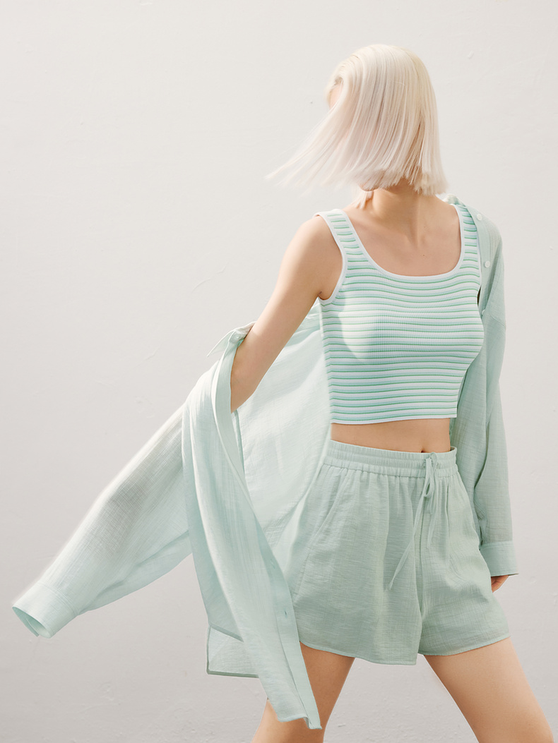 【积分换购不退货】【特惠不退货】诗凡黎条纹翻领衬衫2024夏新款衬衣女3F4320961