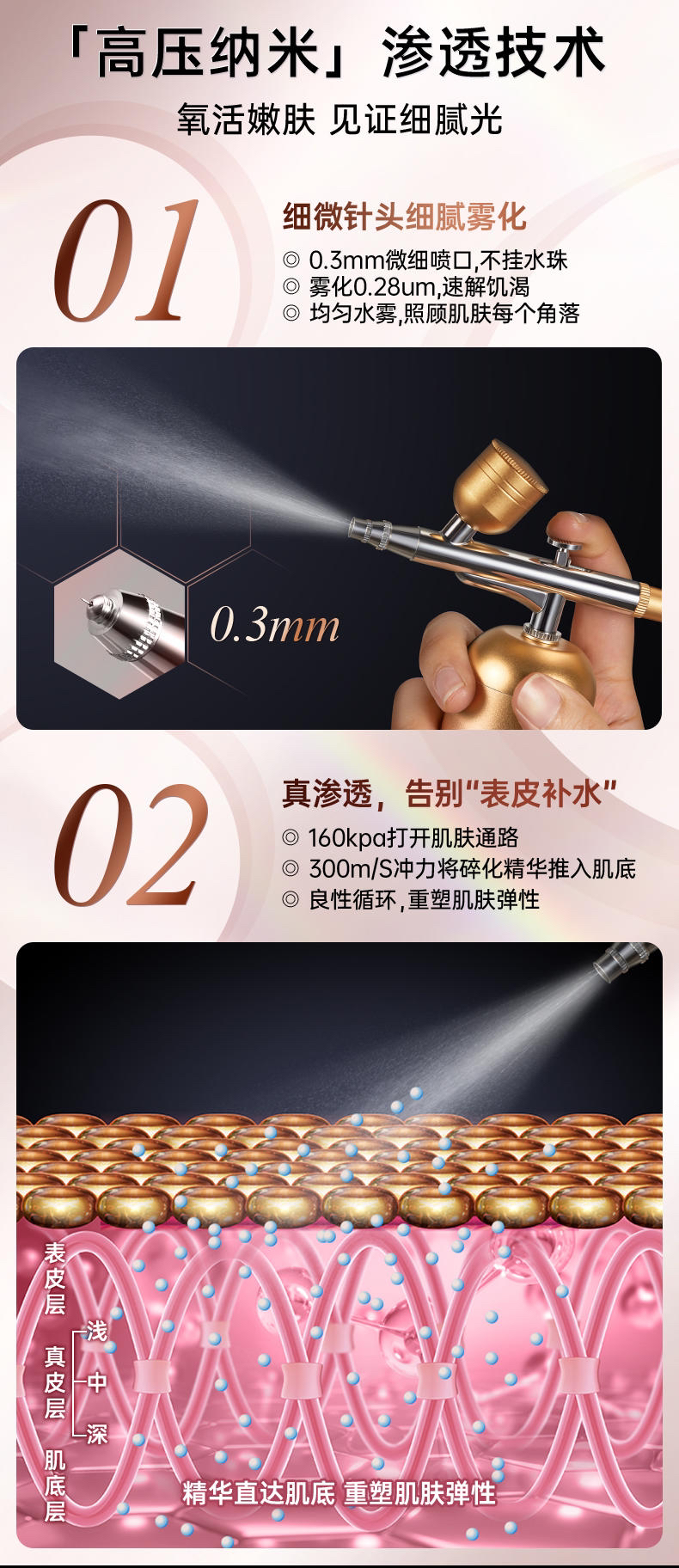 ERIMOTA注氧仪家用便携式手持高压纳米喷雾器美容院脸部补水仪器