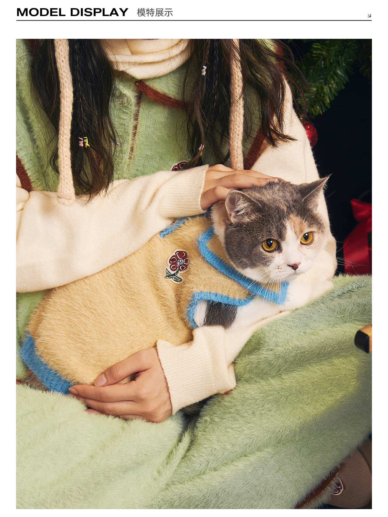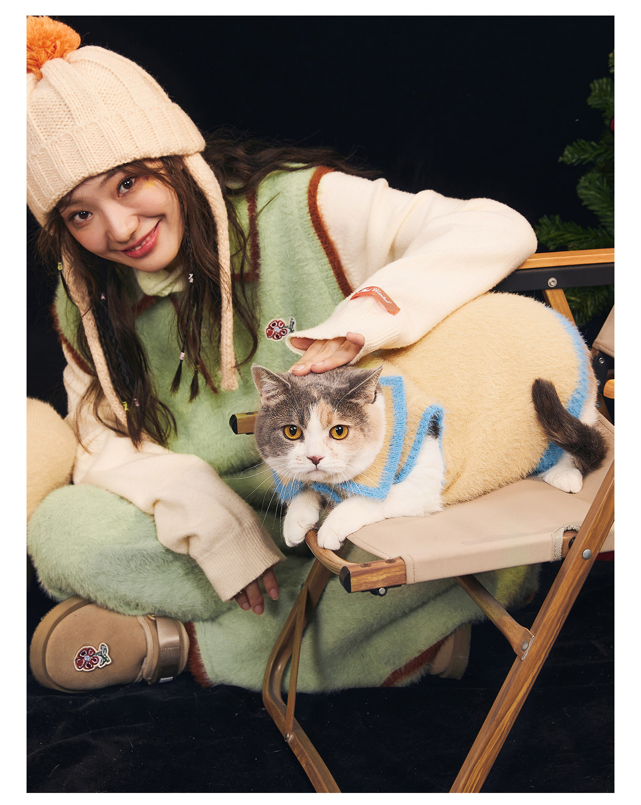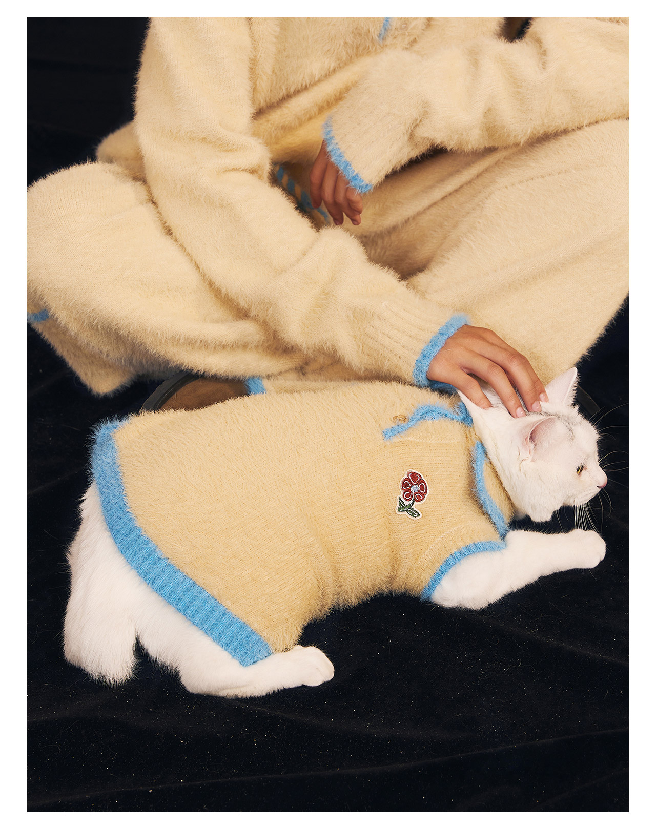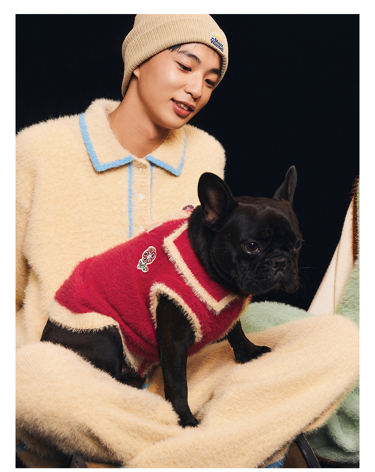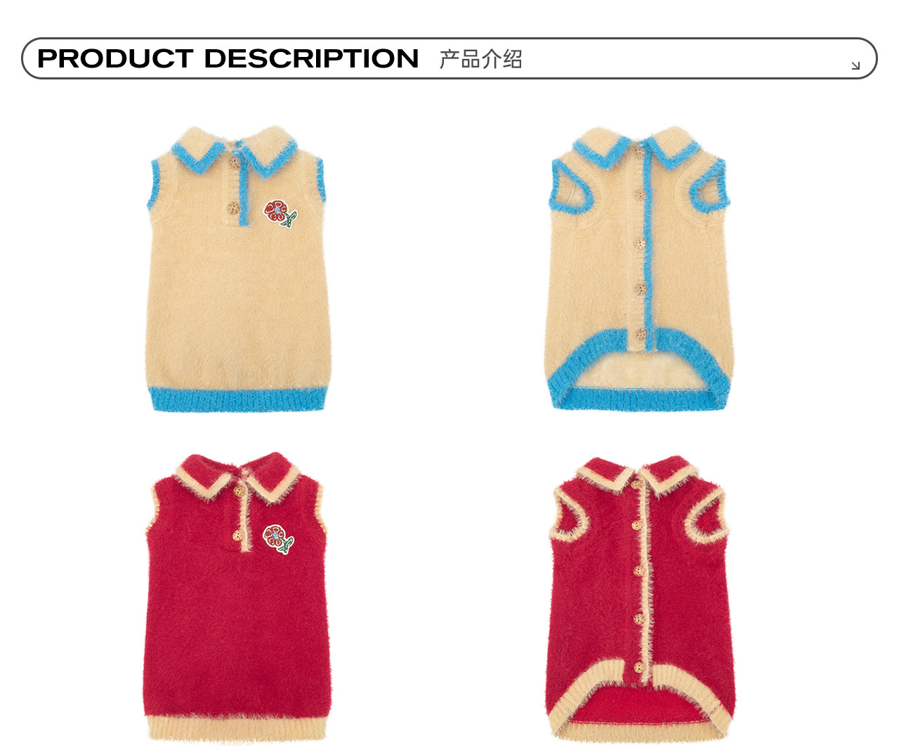 mostwantedlab彩虹/MWL-2334212/小花仿貂毛撞色Polo领家居背心宠物毛衣