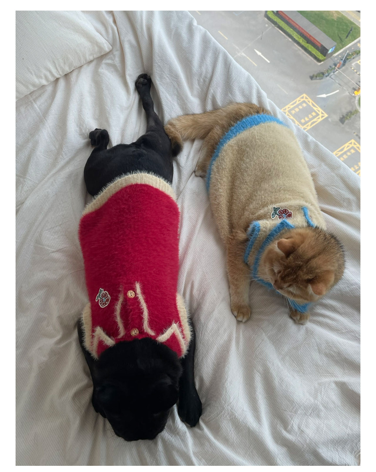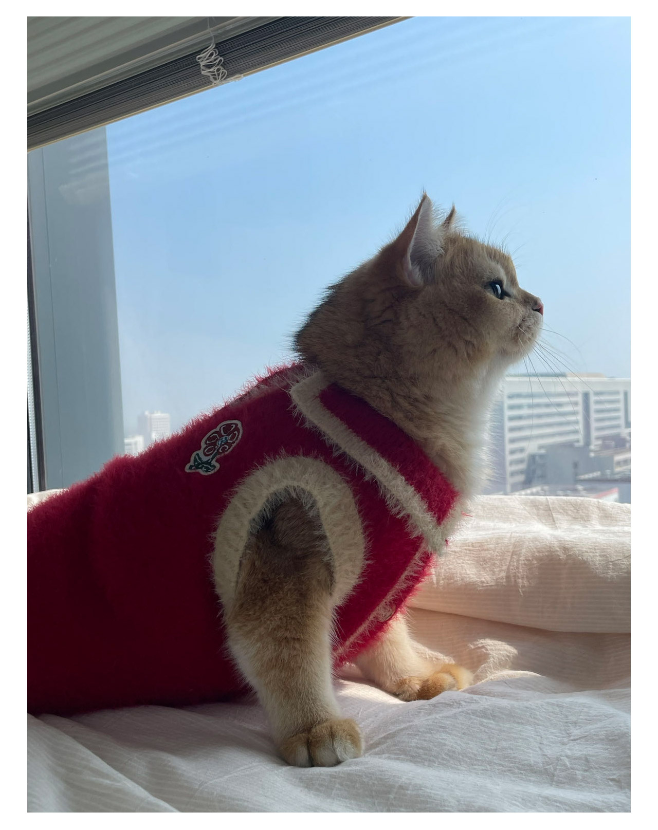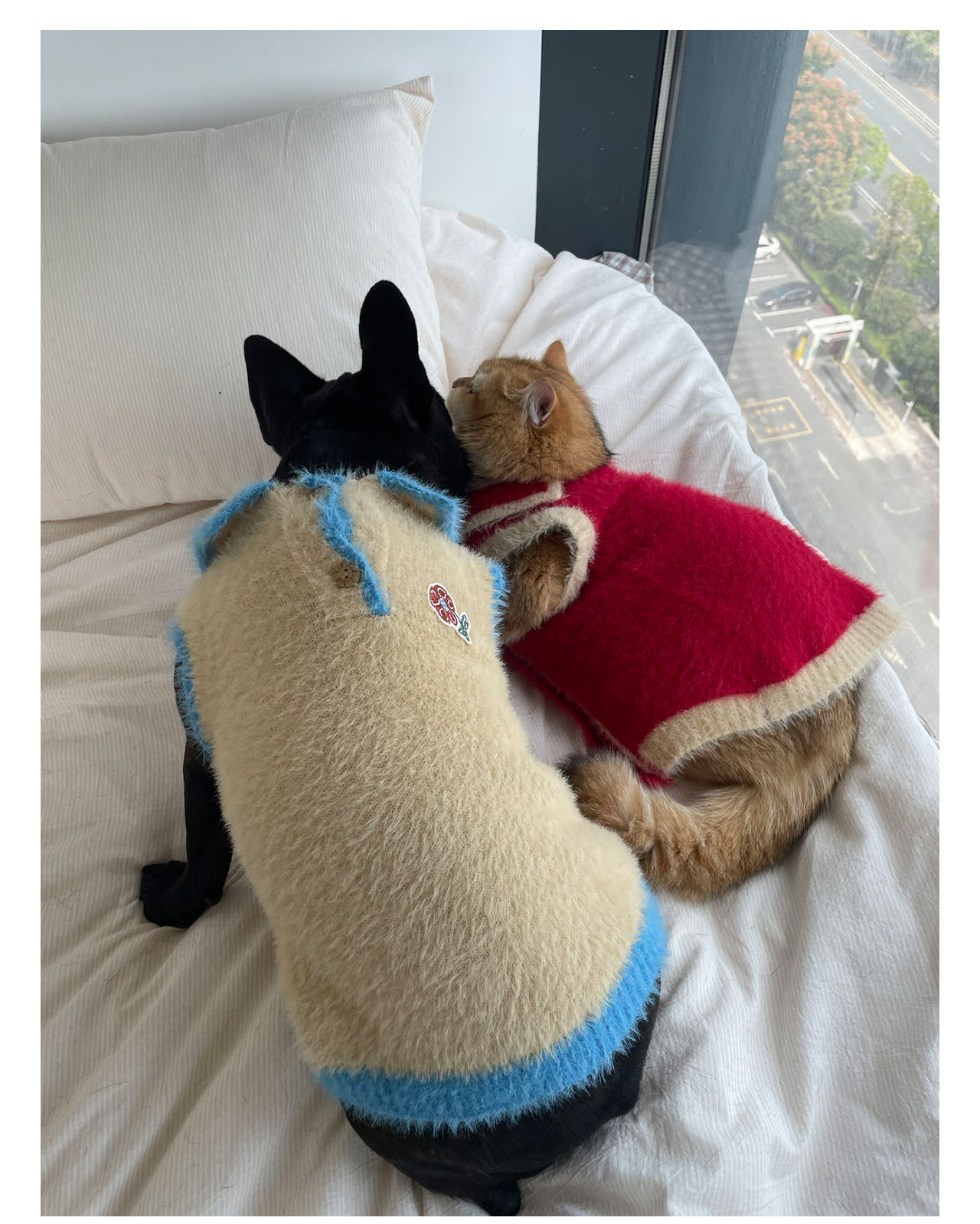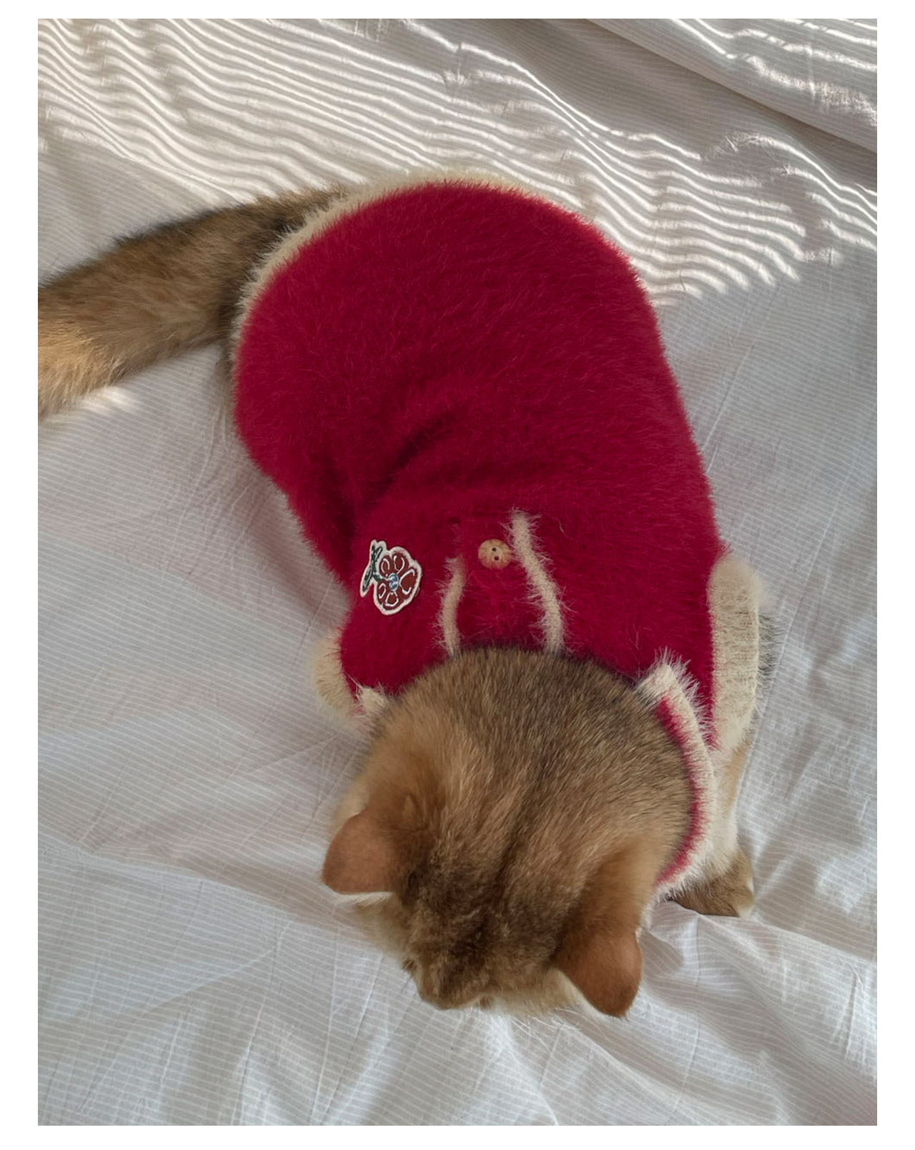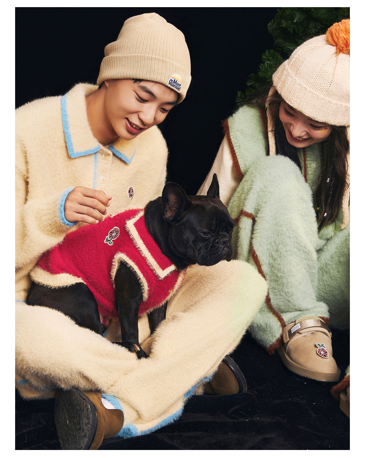mostwantedlab彩虹/MWL-2334212/小花仿貂毛撞色Polo领家居背心宠物毛衣
