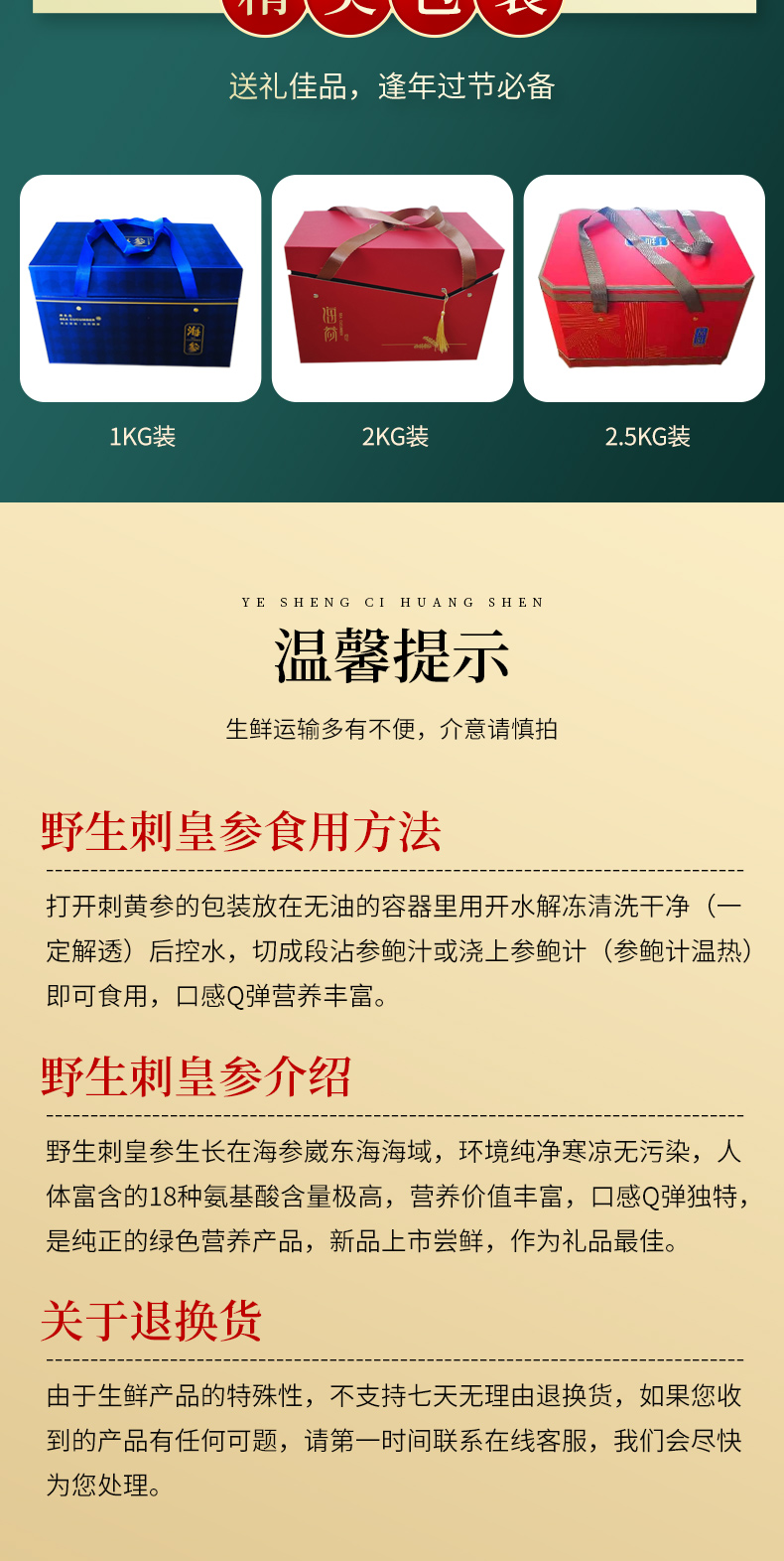 自营(海中源)-《新品上市》 野生刺皇参 顺丰发货