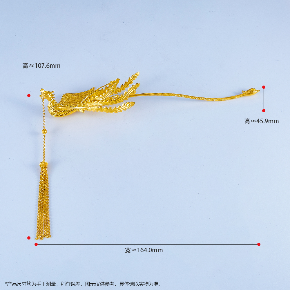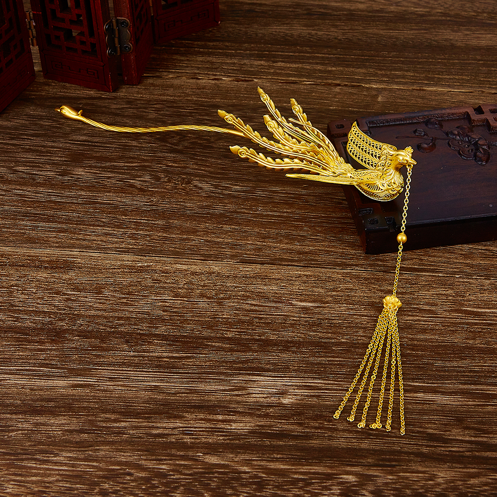 【限时克减150元】足金999 #婚庆 古法花丝凤凰于飞流苏发簪凤簪婚嫁头饰金步摇凤钗(YGFTS00001-2)(预售产品下单后不退款不退货不换货不补差价)