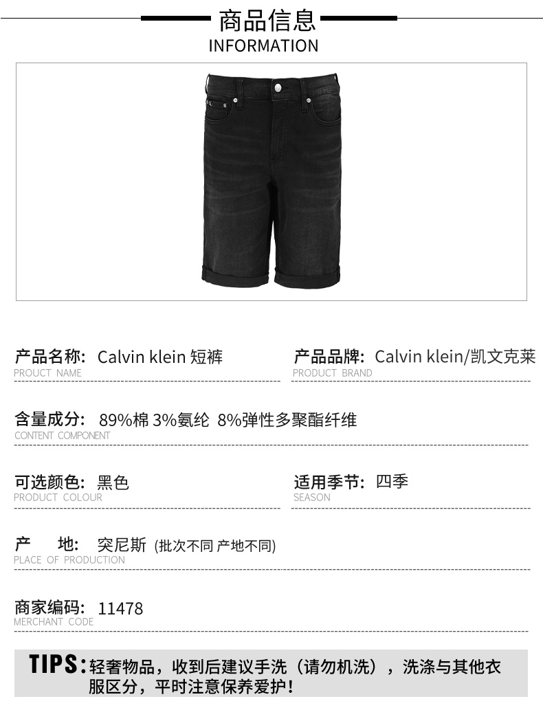超惠秒】CK 卡文·克莱 男士 弹棉牛仔休闲短裤 11478