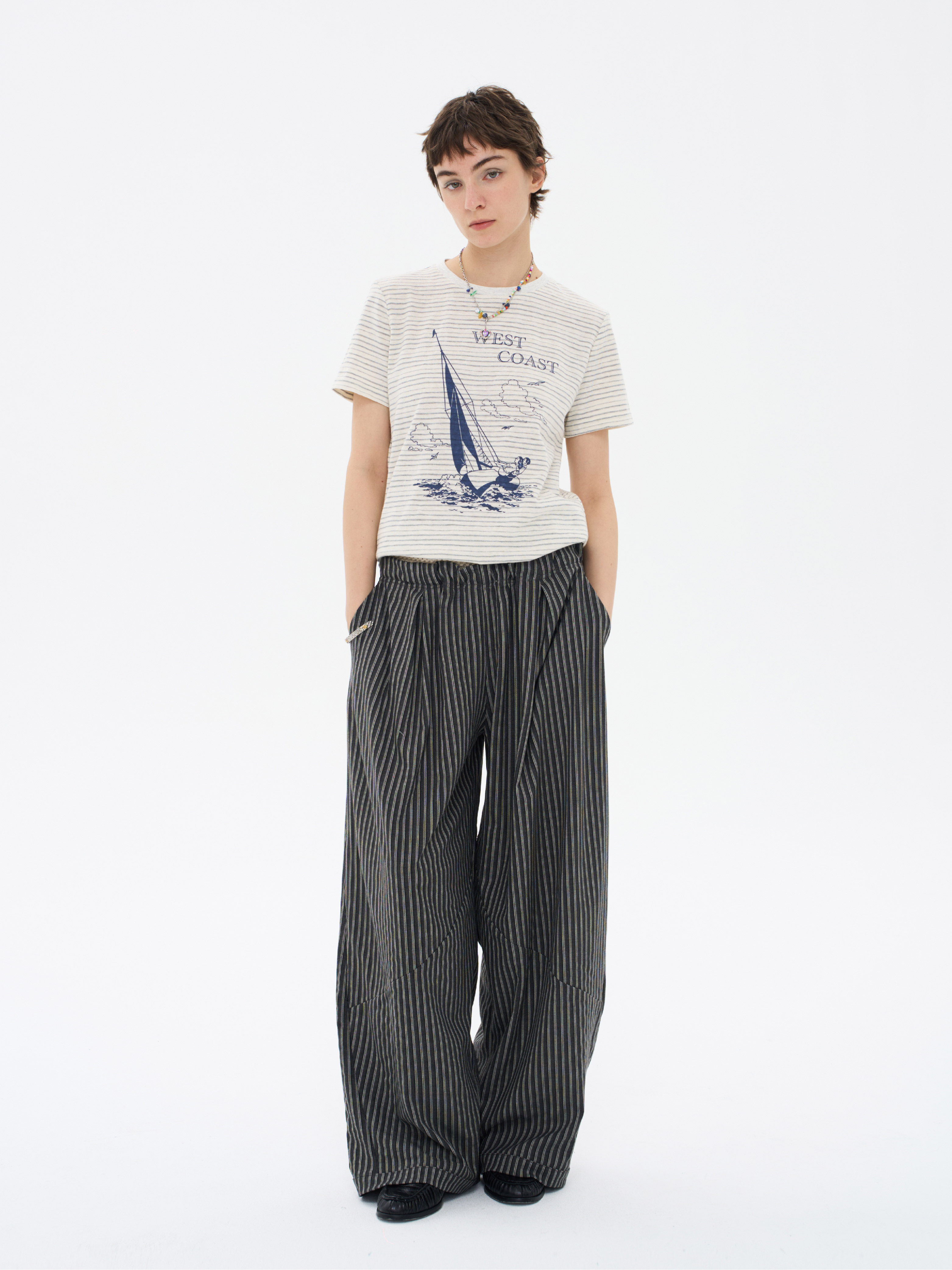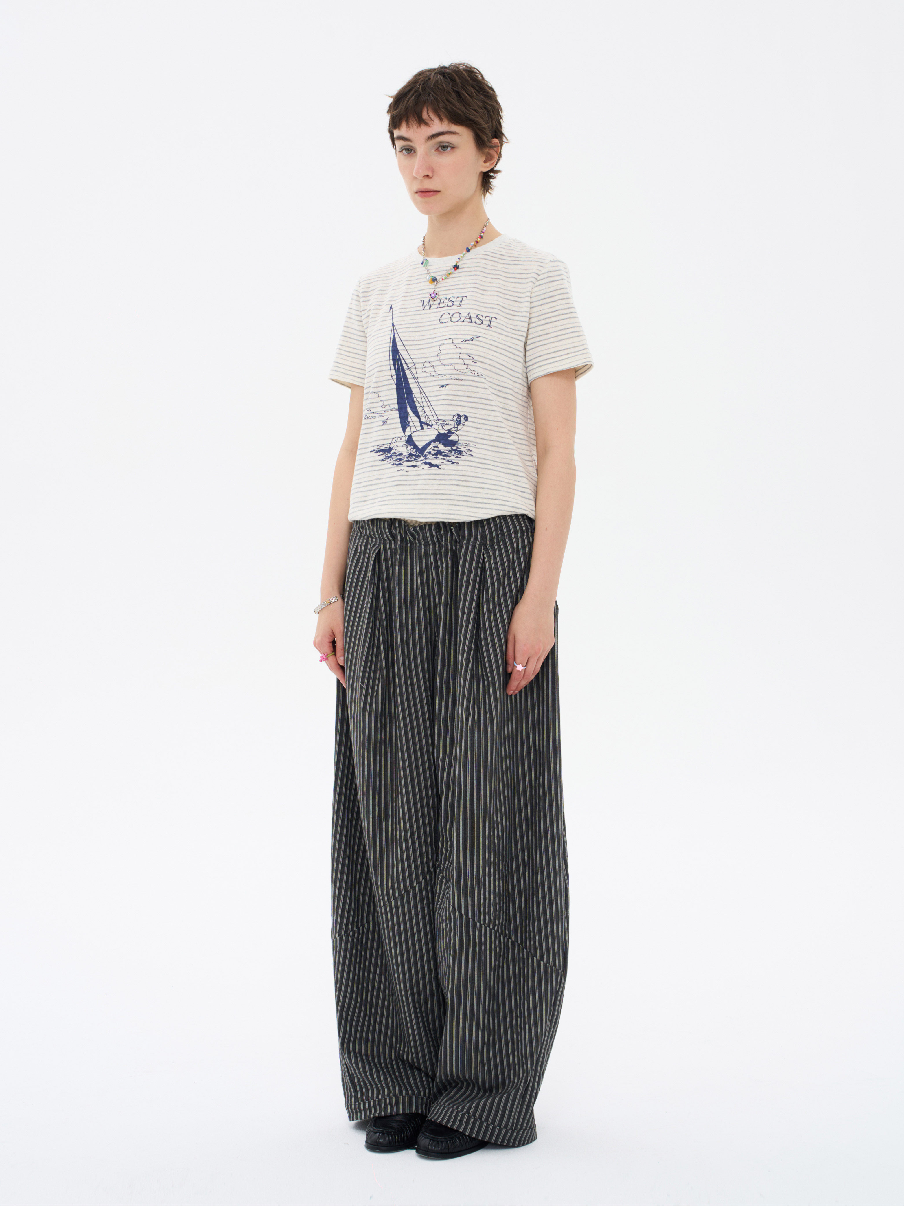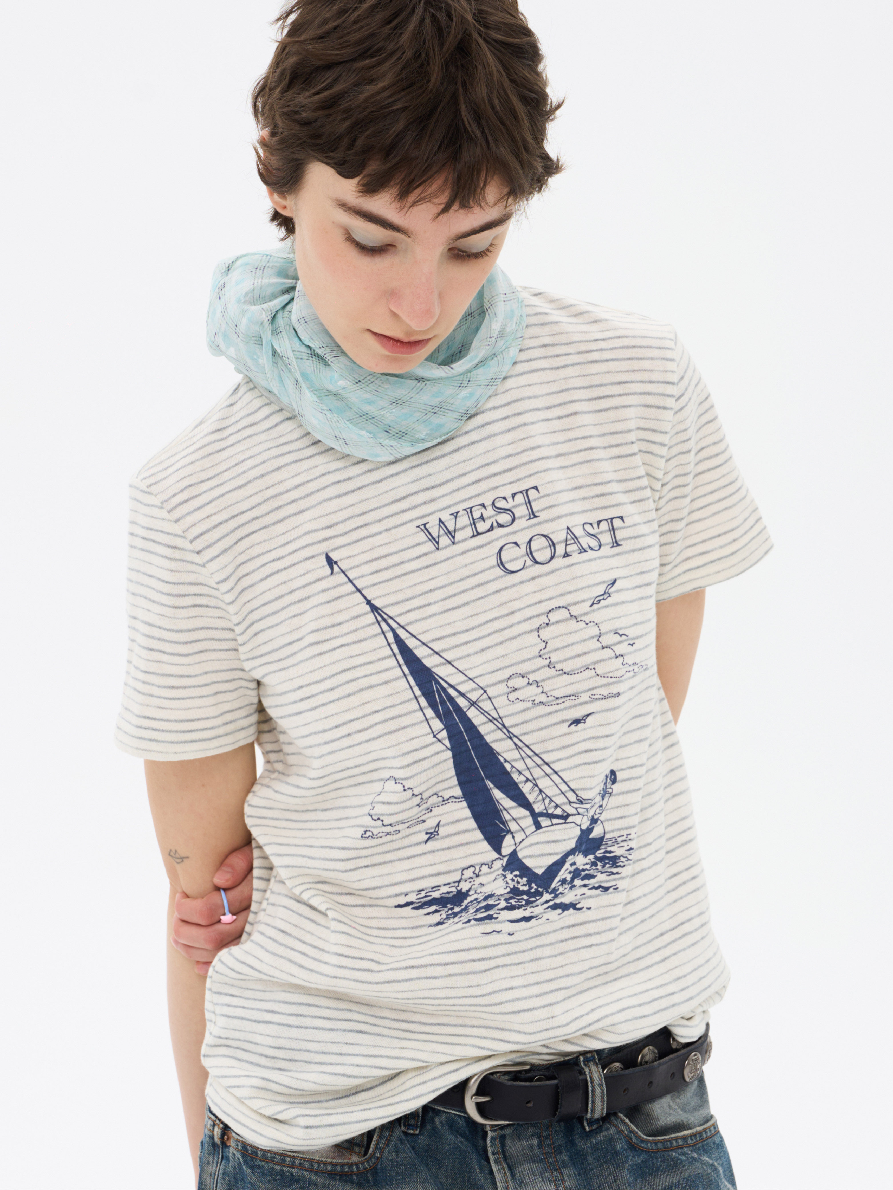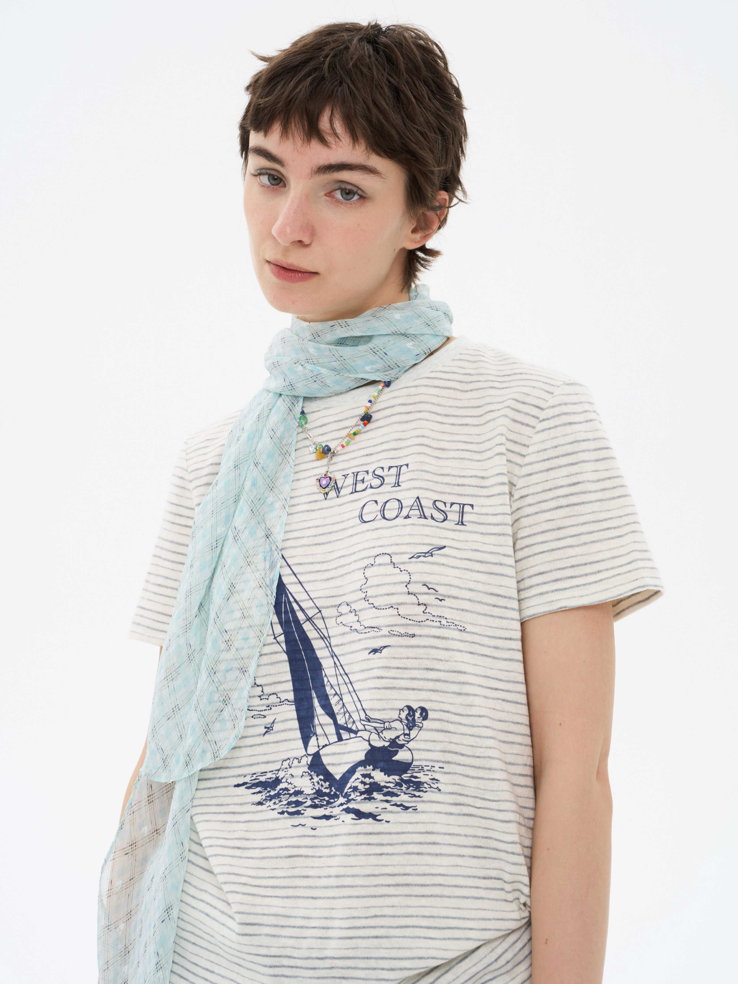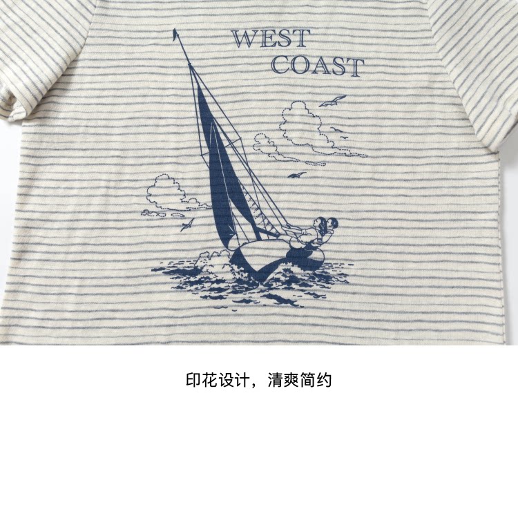 local tag/lt26ssk22/西海岸假日 度假条纹印花T 休闲百搭圆领短袖上衣