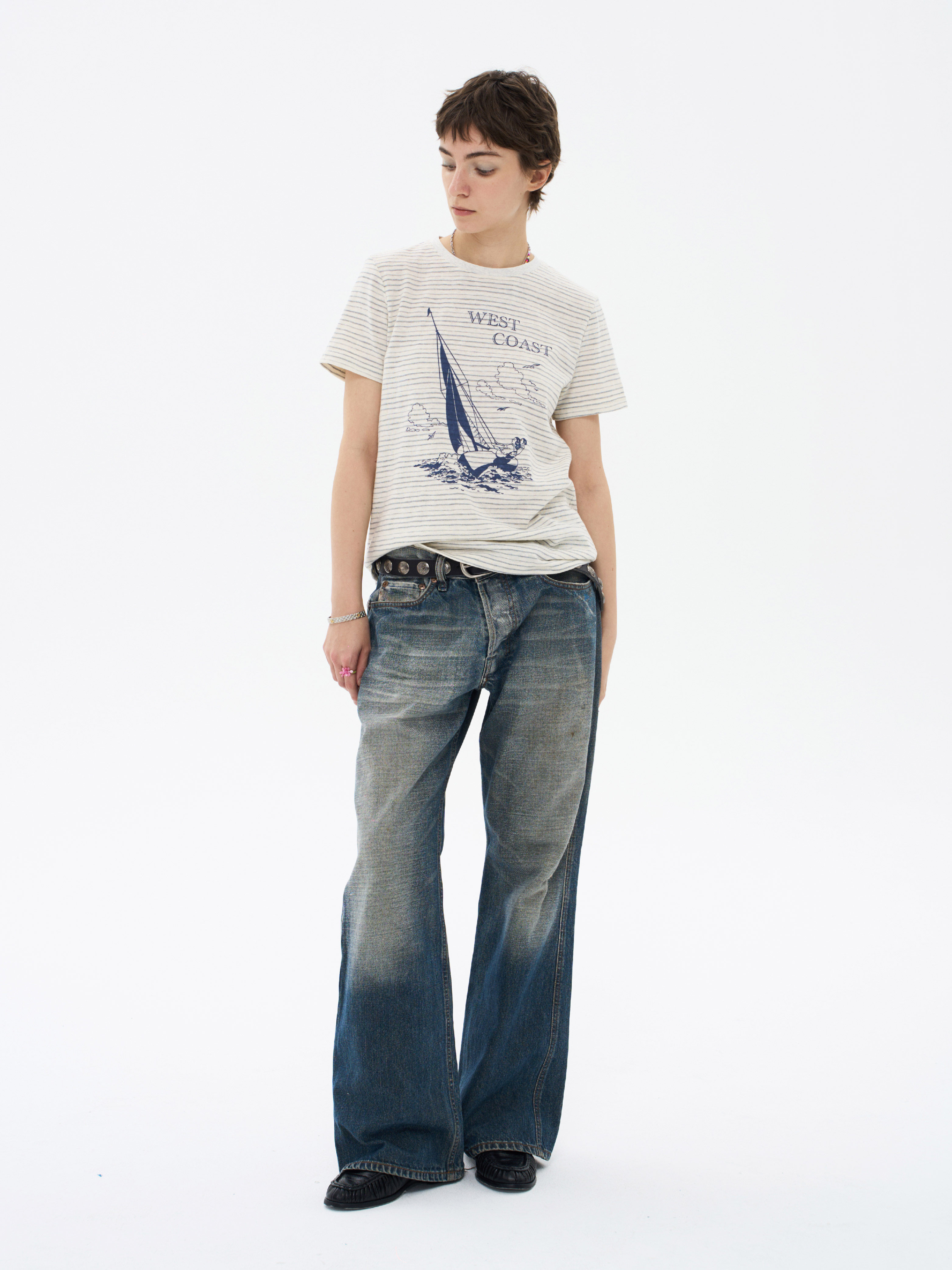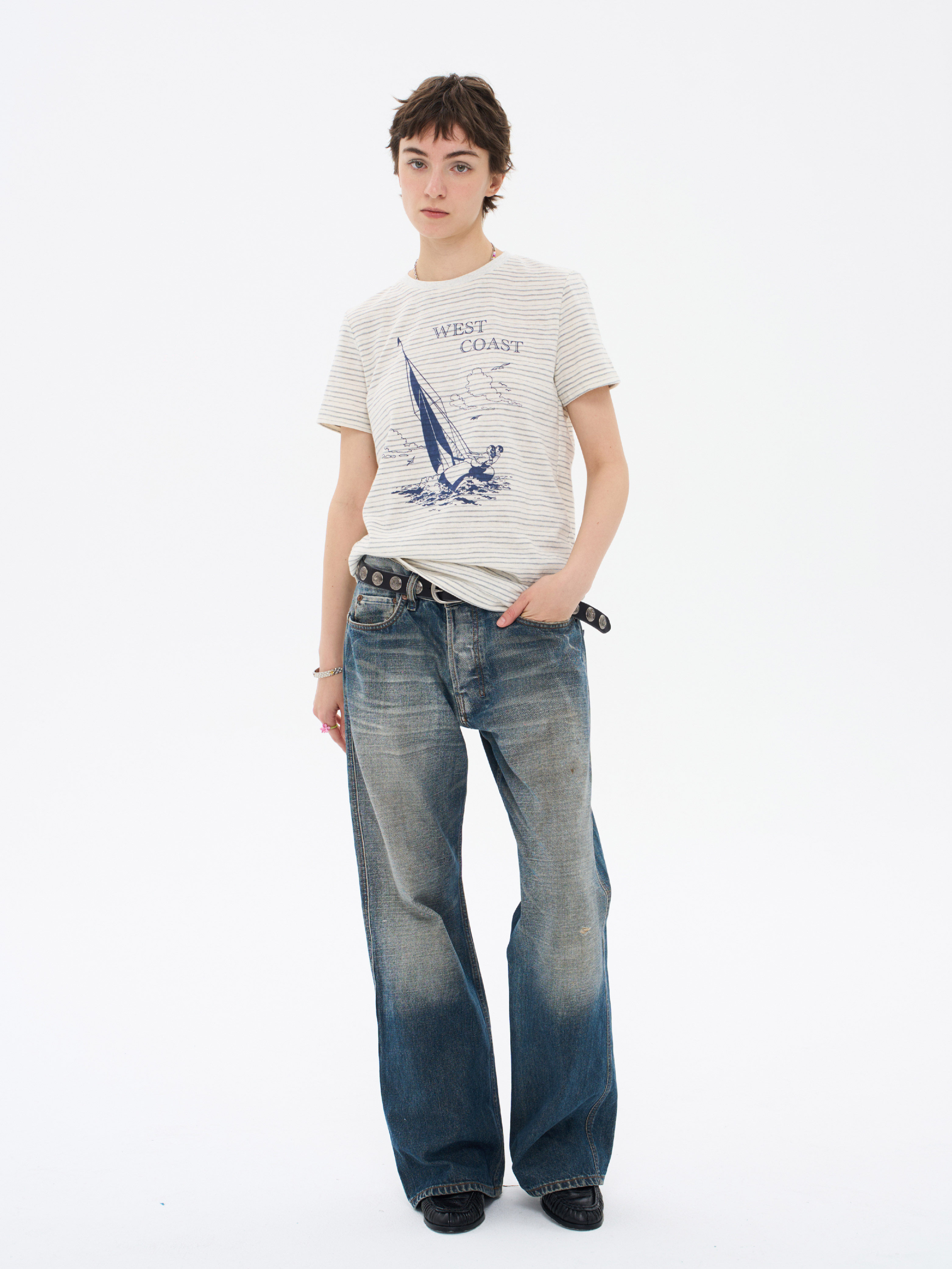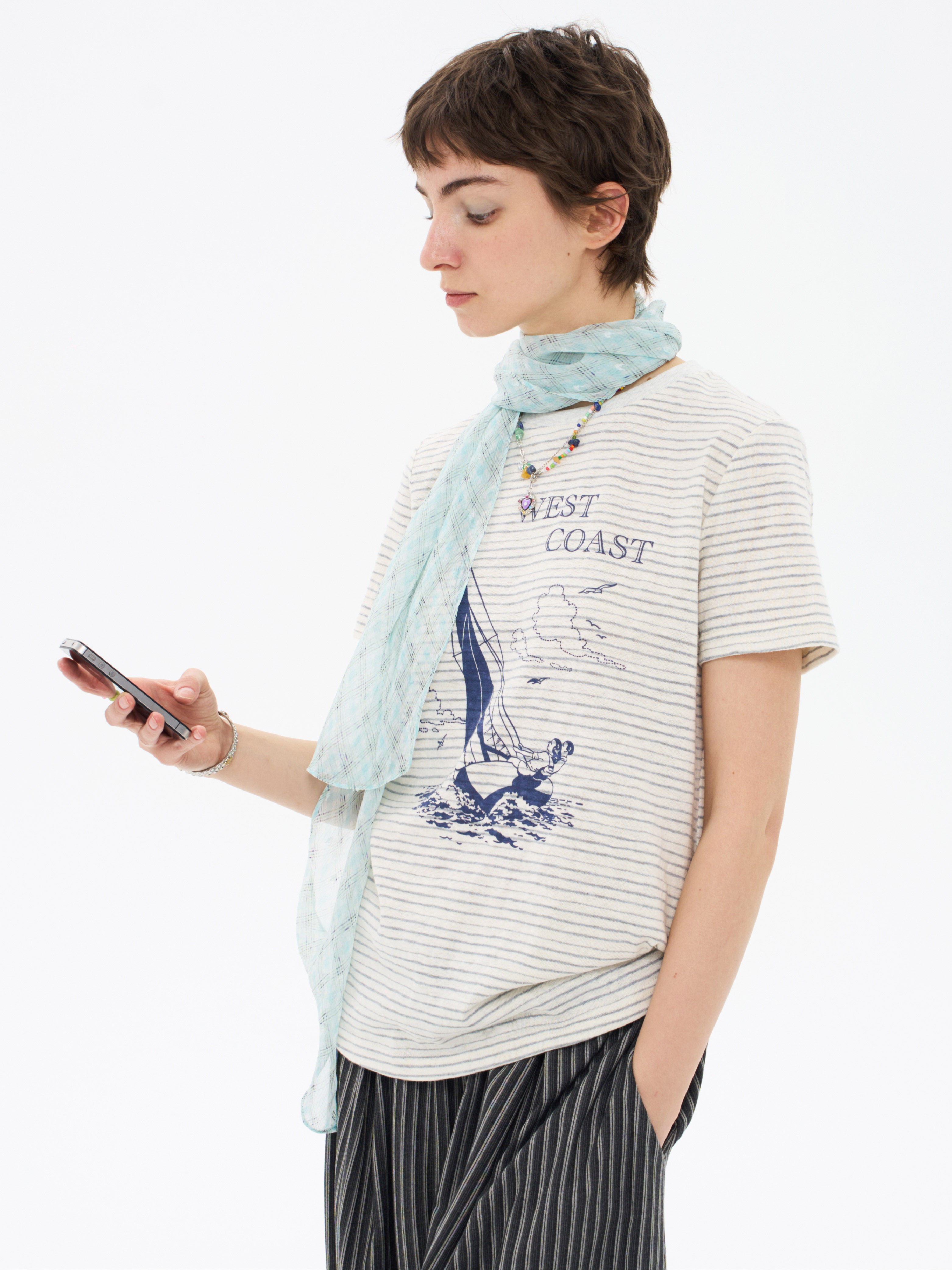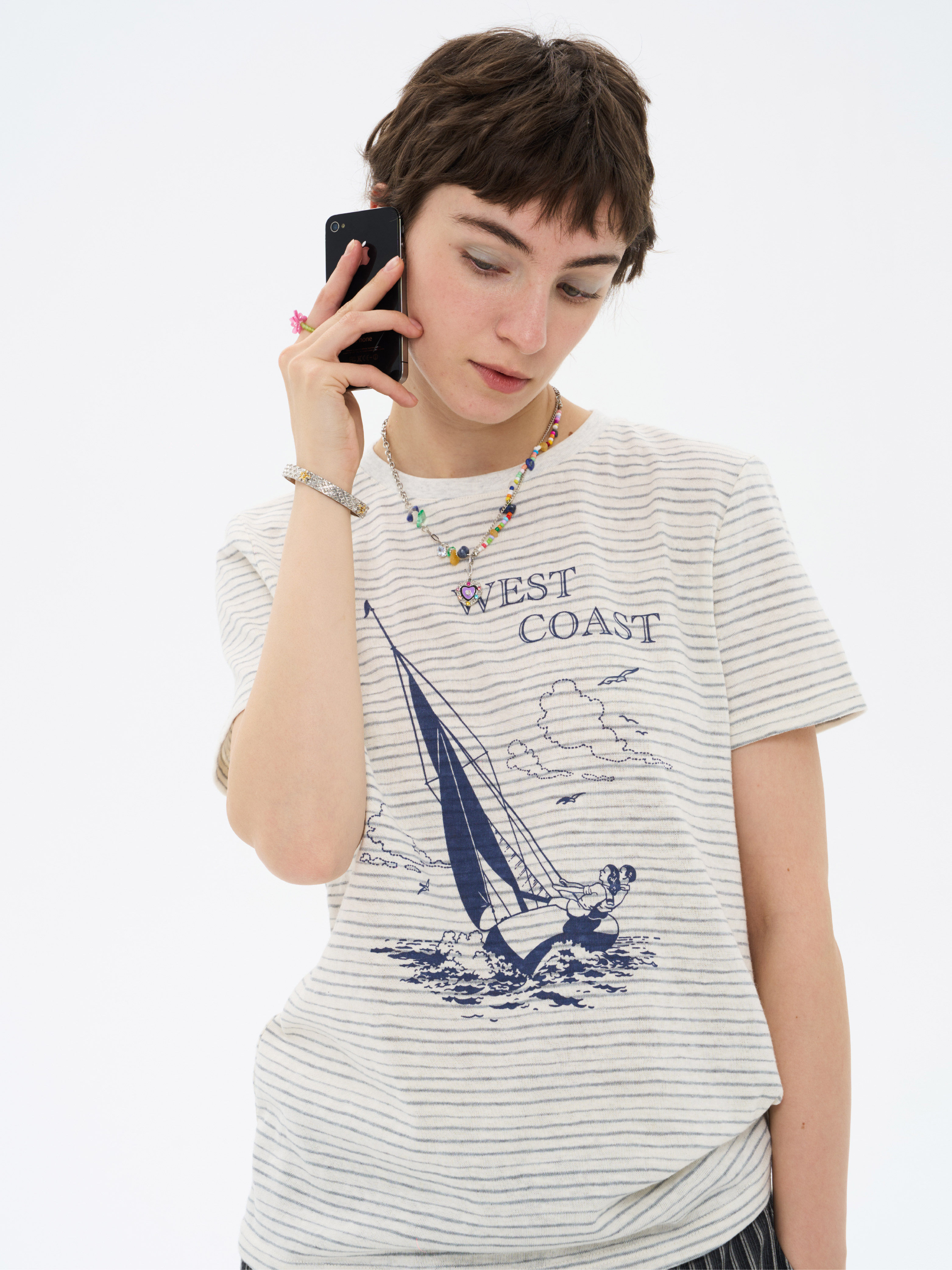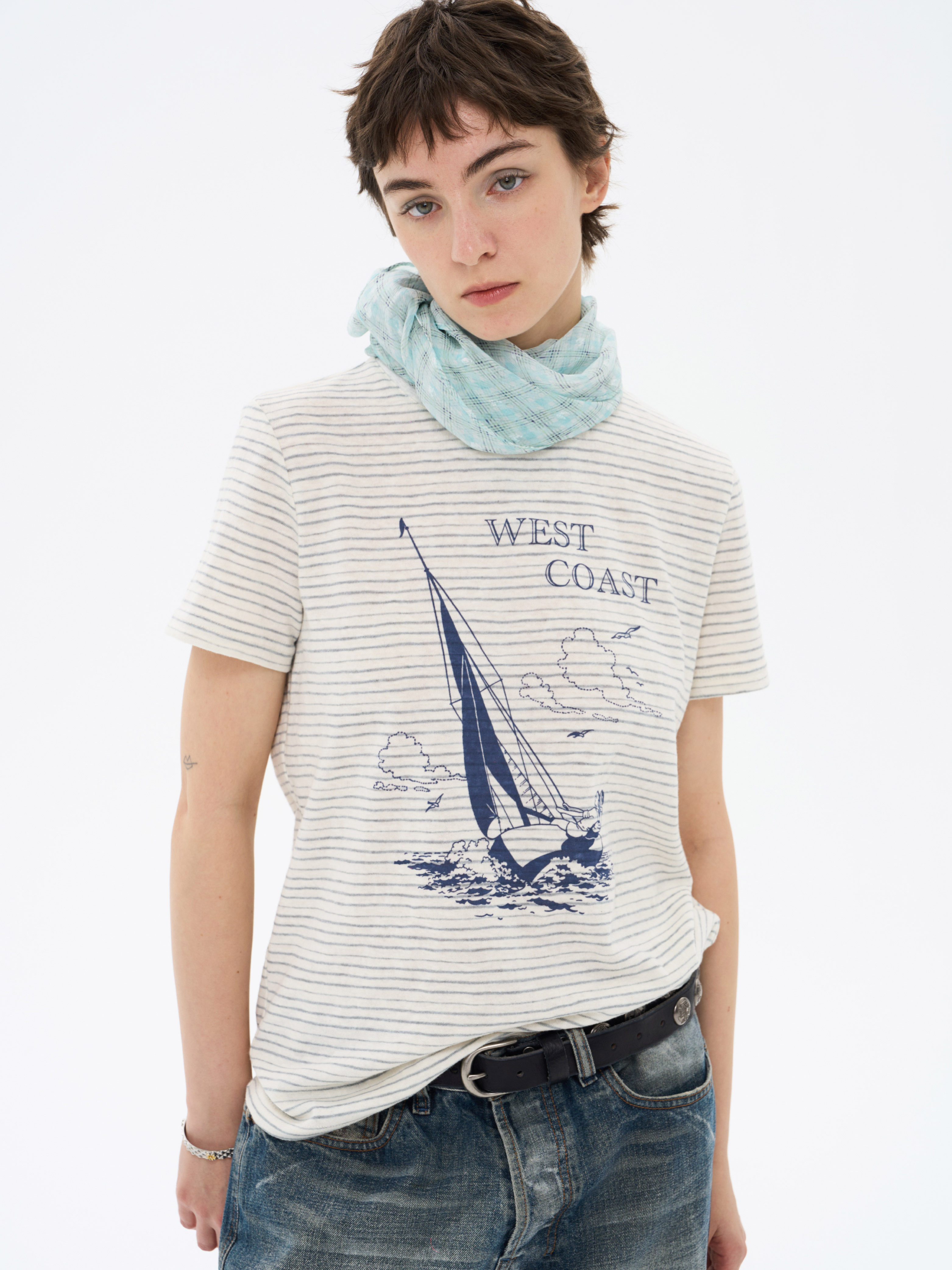 local tag/lt26ssk22/西海岸假日 度假条纹印花T 休闲百搭圆领短袖上衣