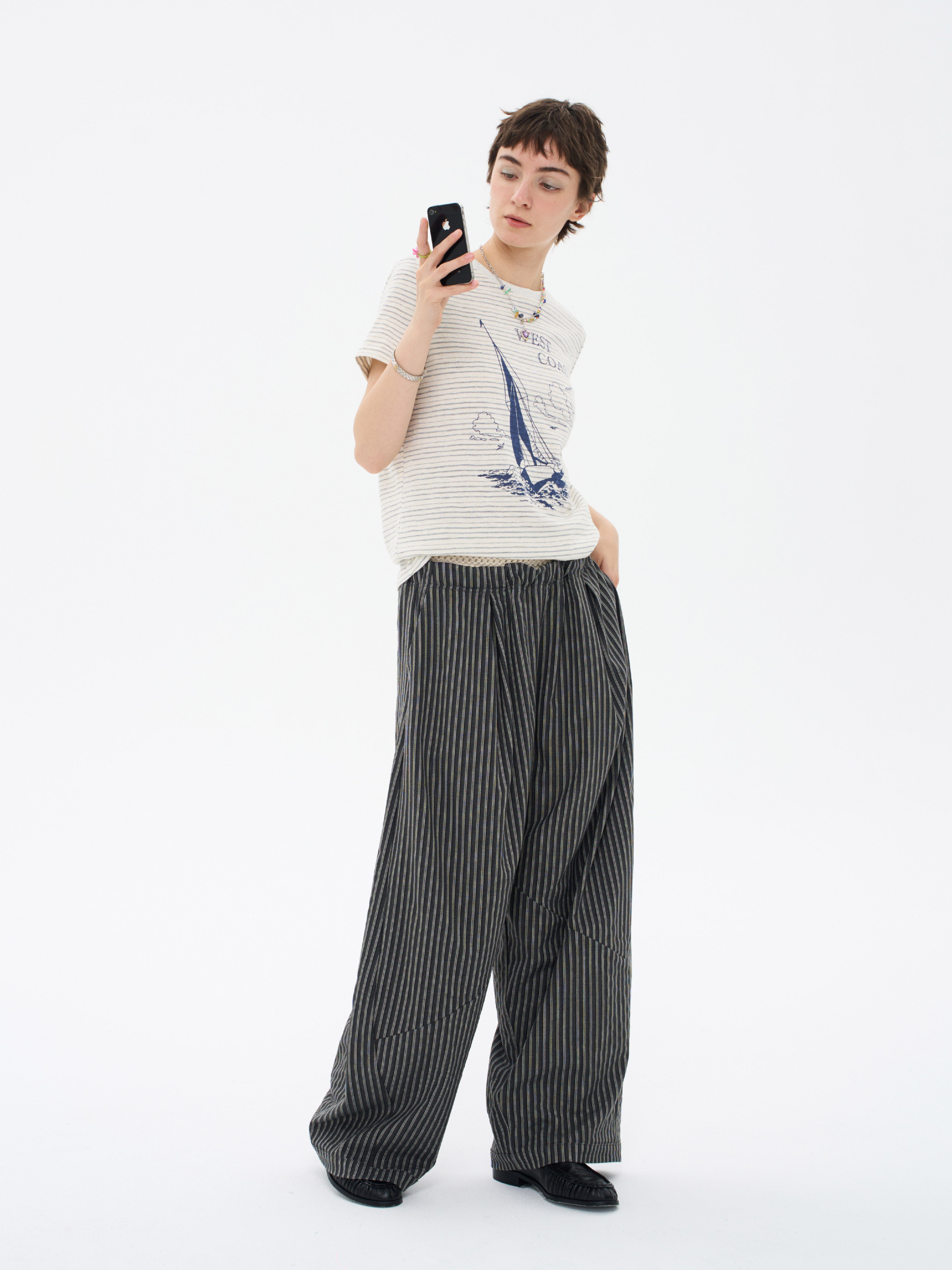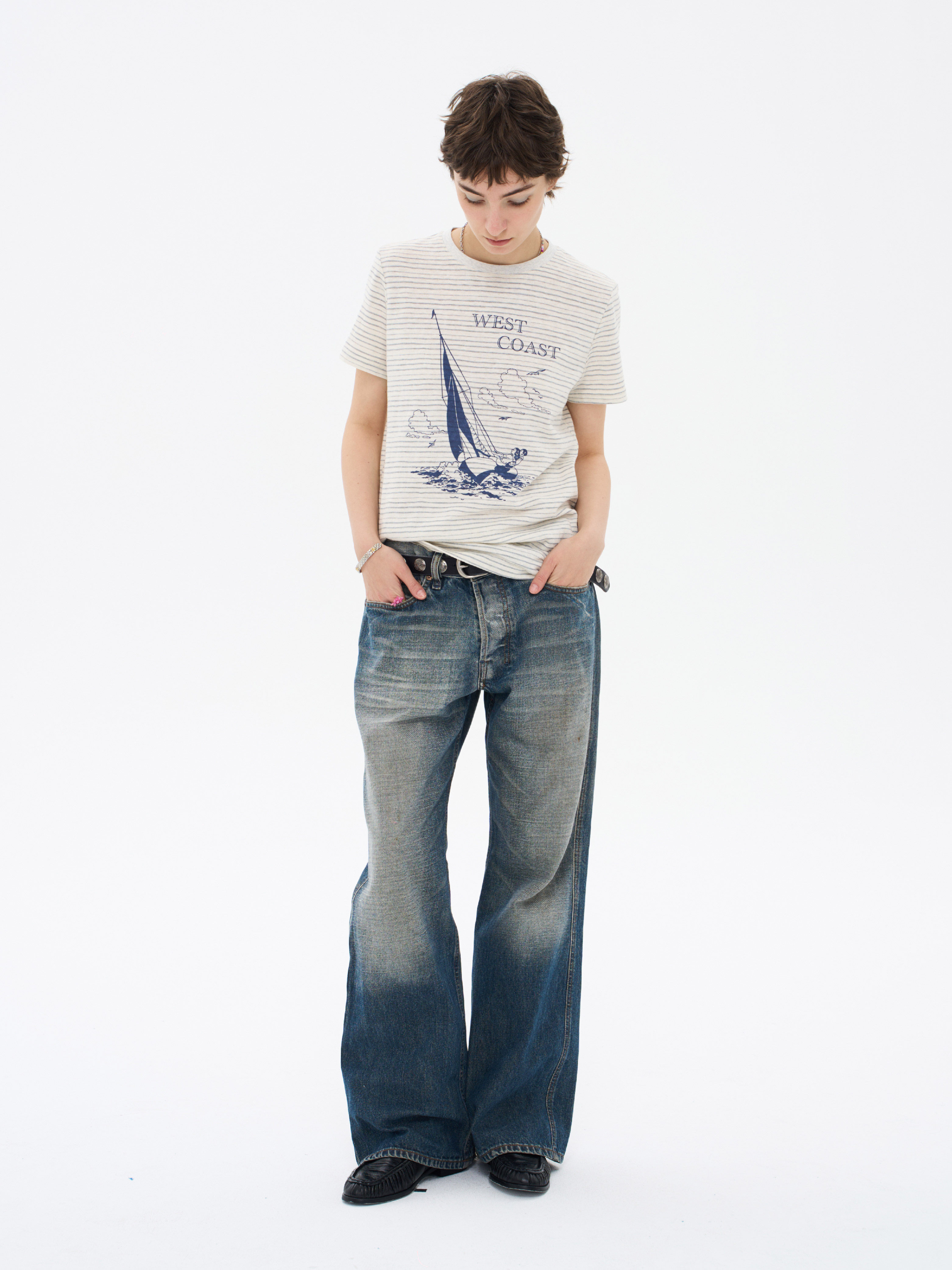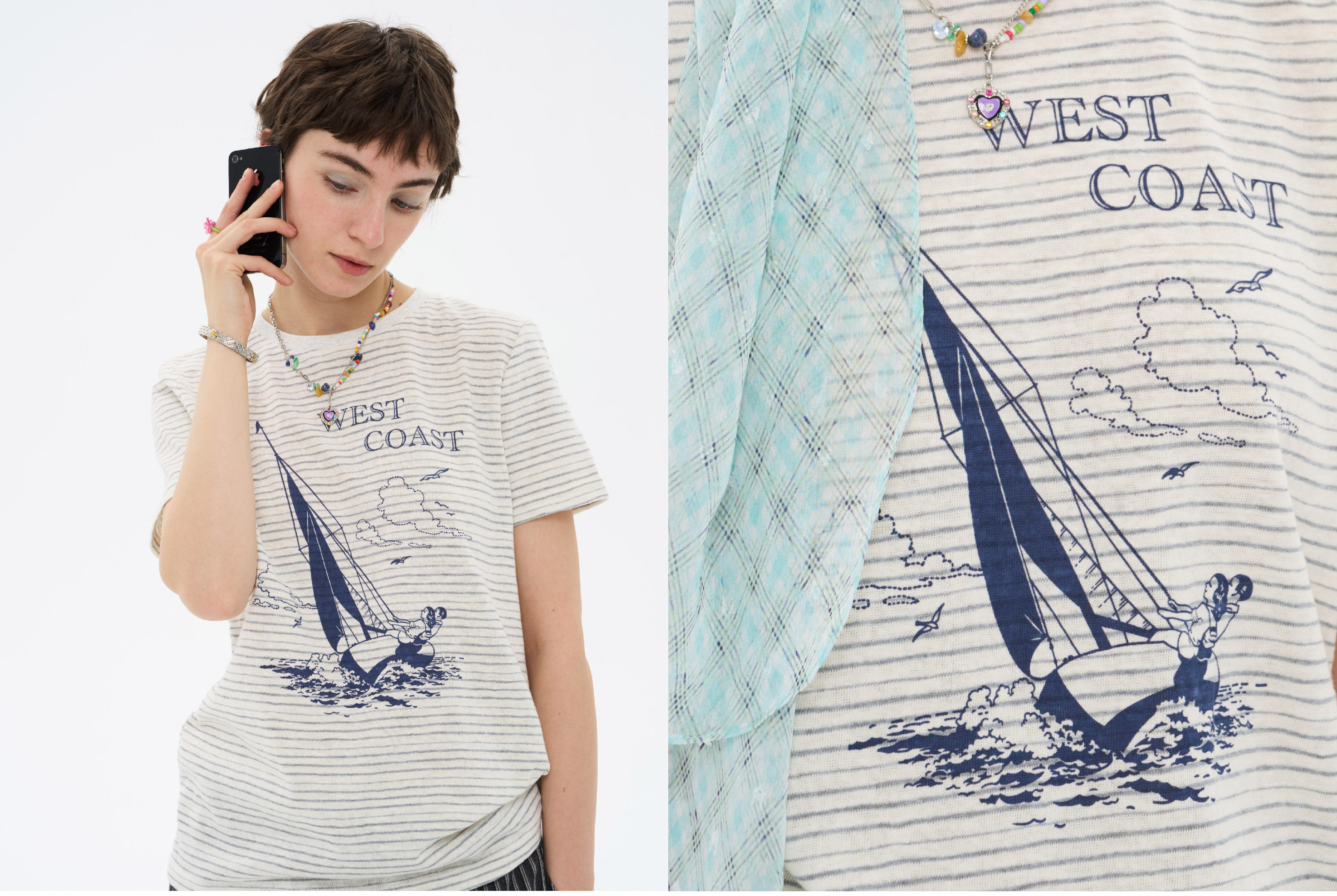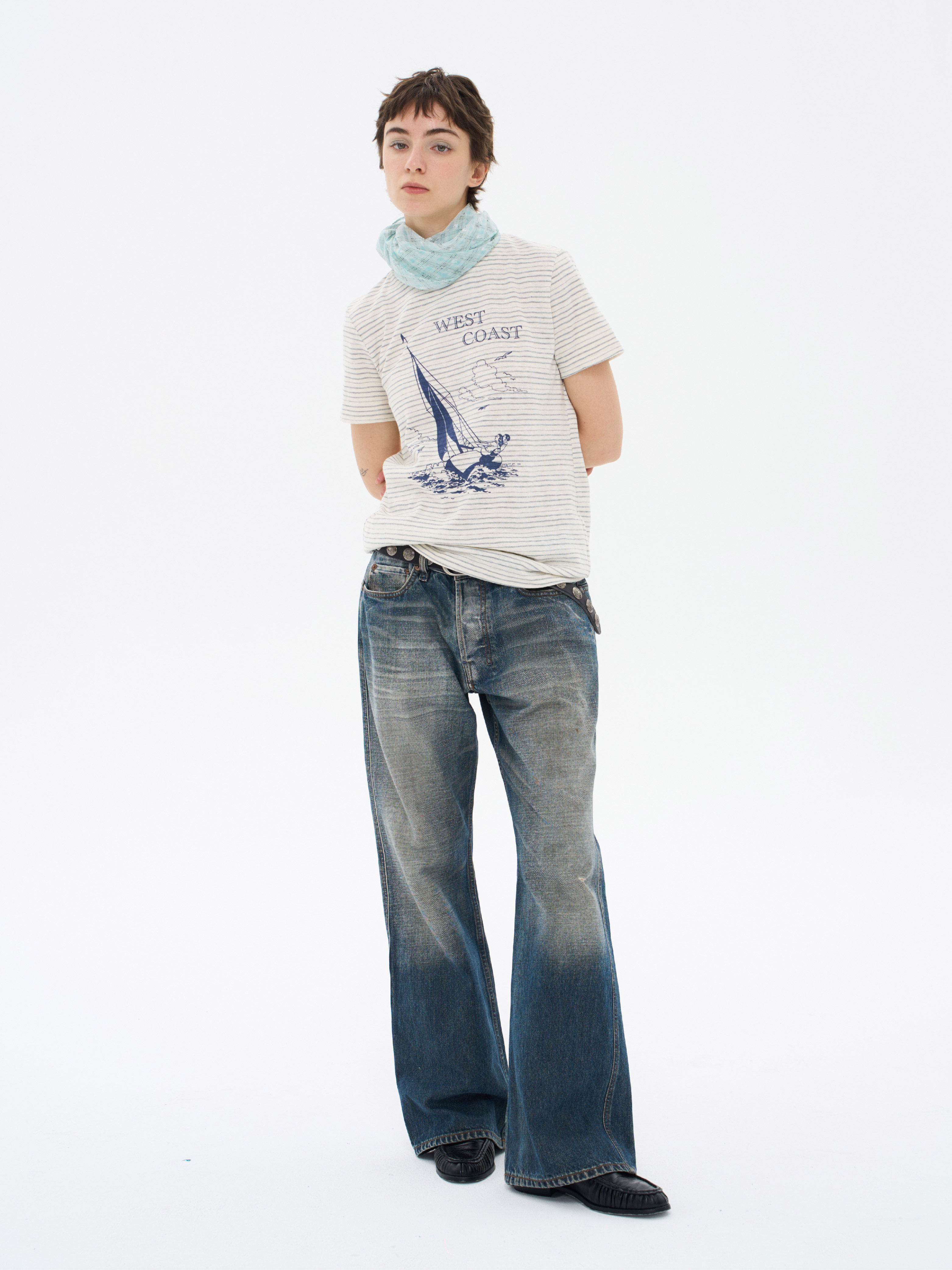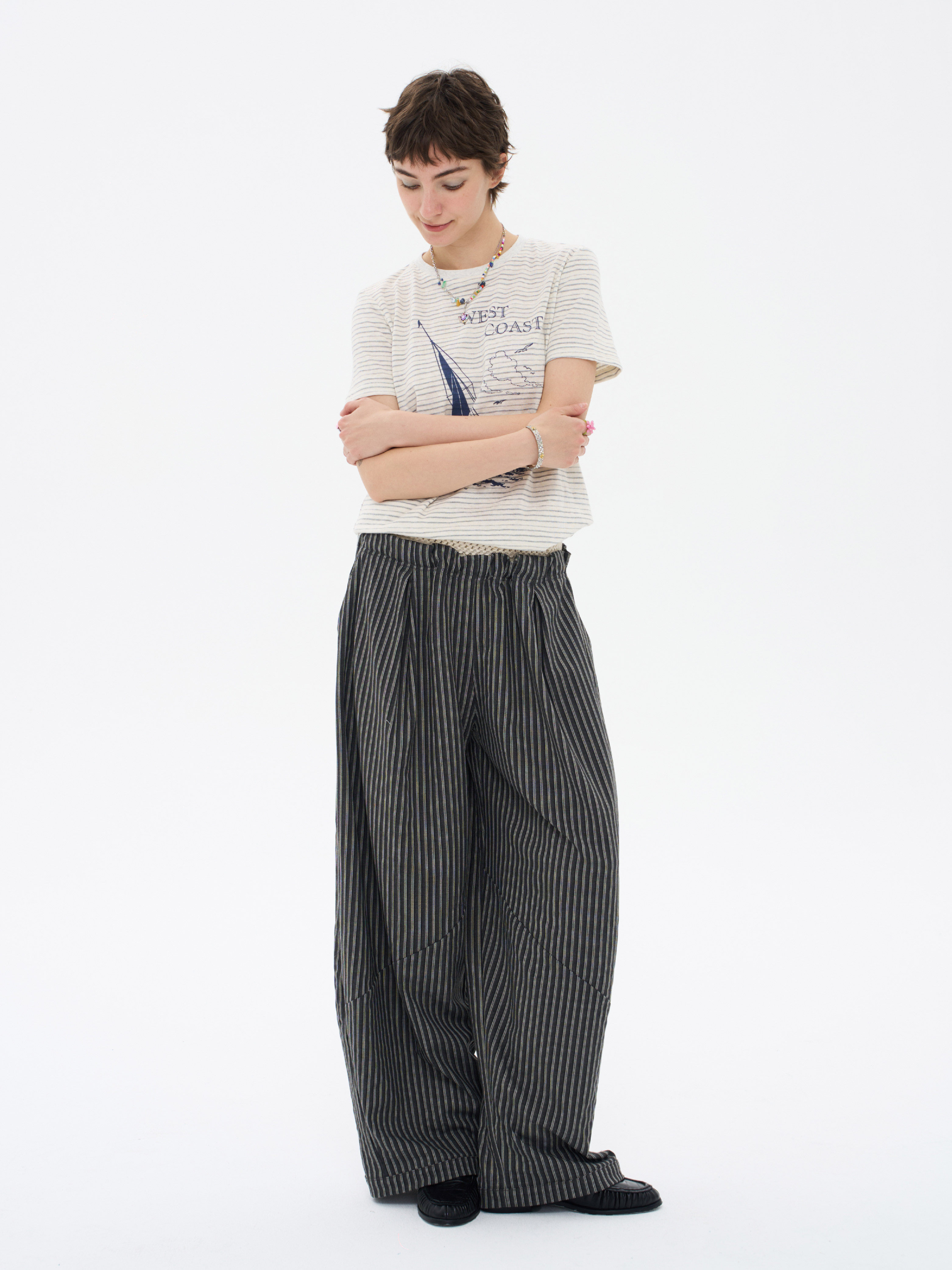 local tag/lt26ssk22/西海岸假日 度假条纹印花T 休闲百搭圆领短袖上衣