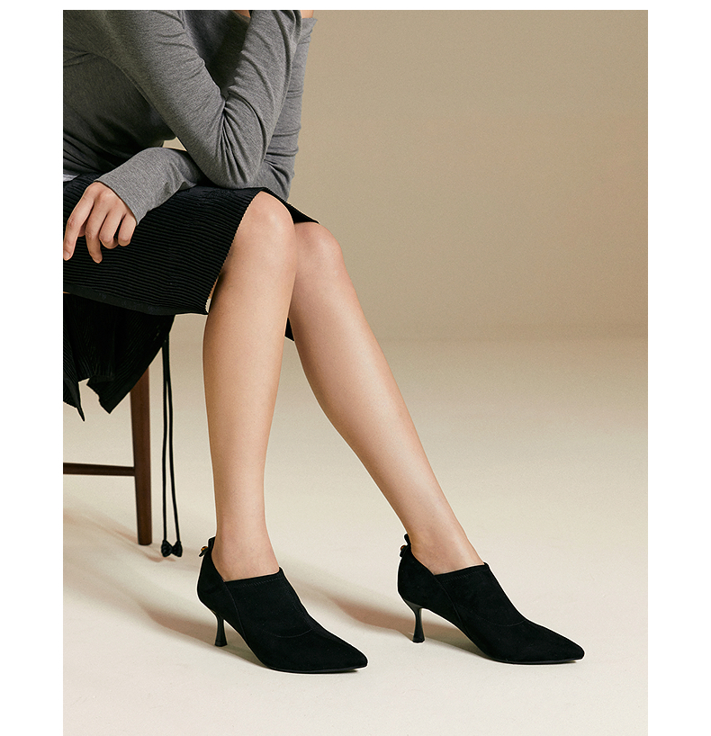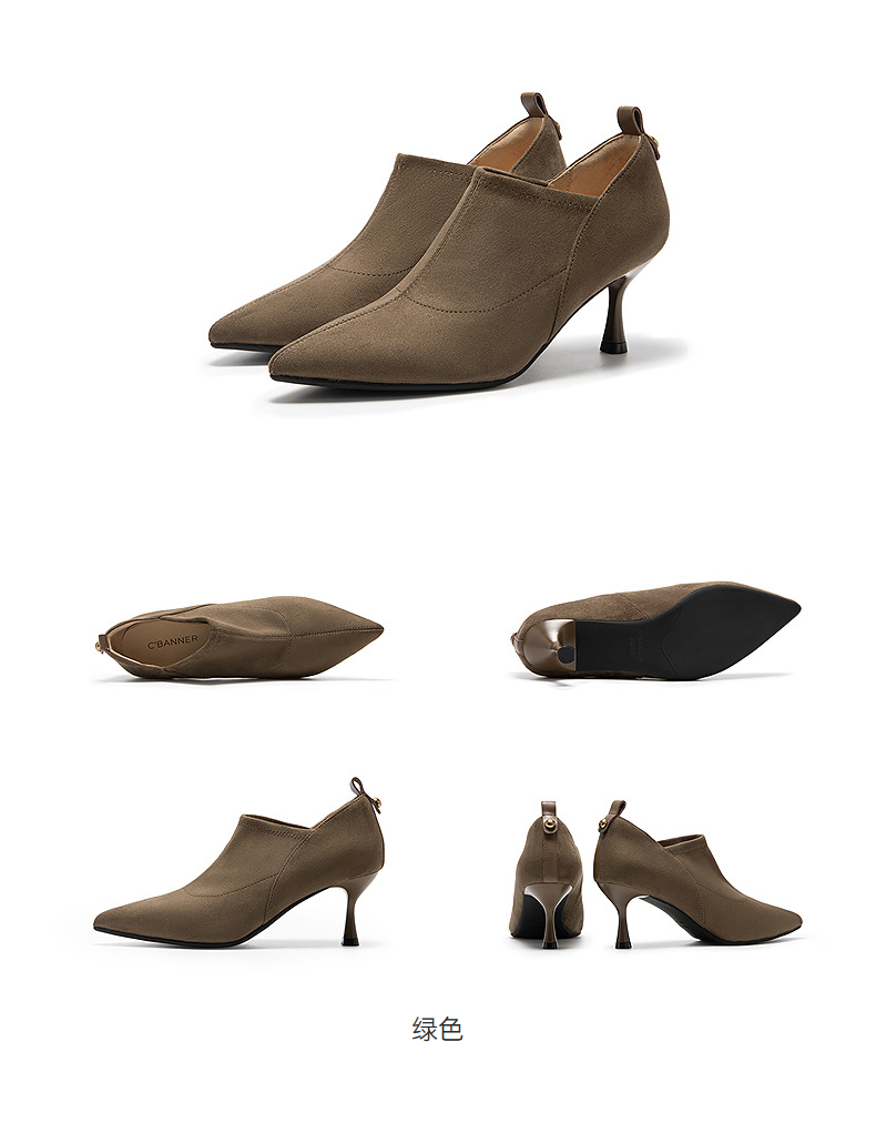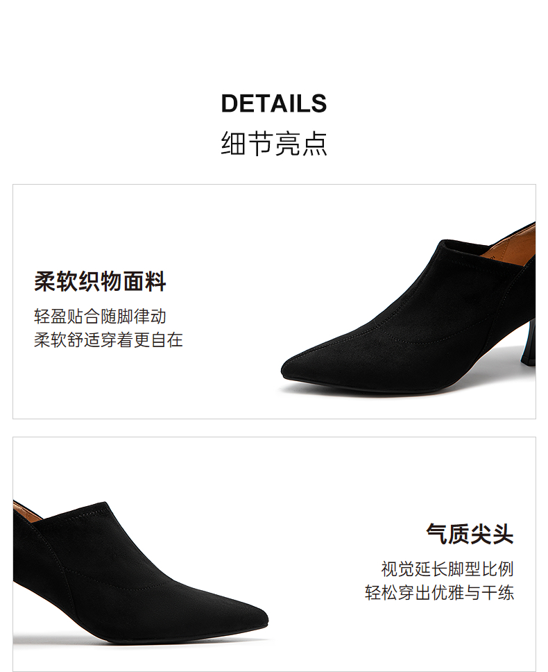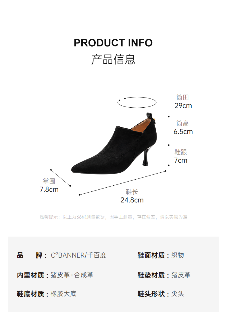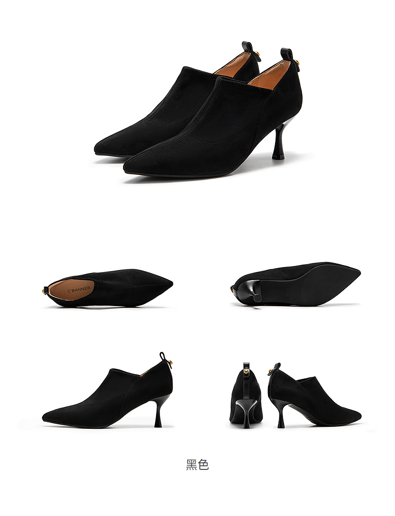 千百度细高跟时装靴女秋冬新款踝靴深口单鞋尖头通勤短靴子A25516803