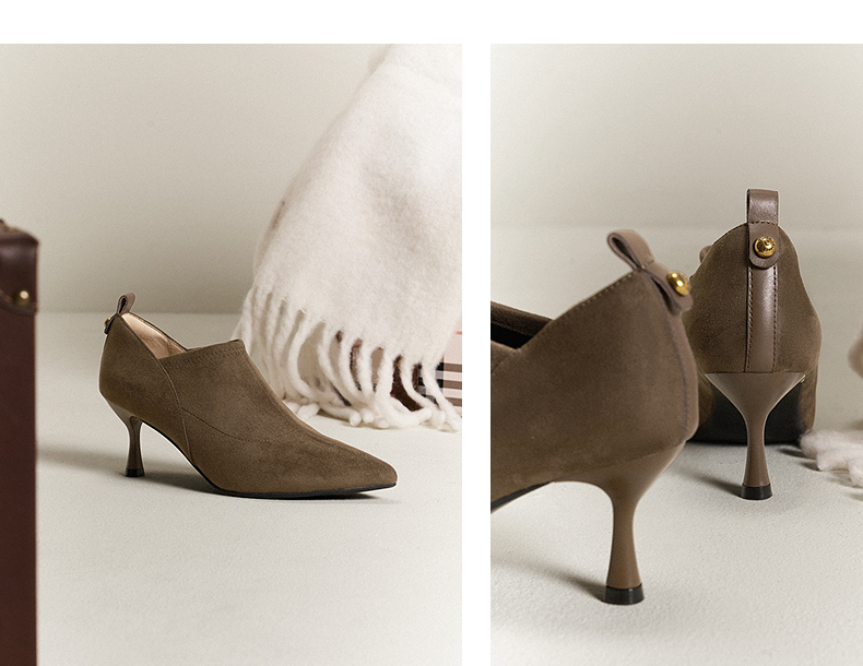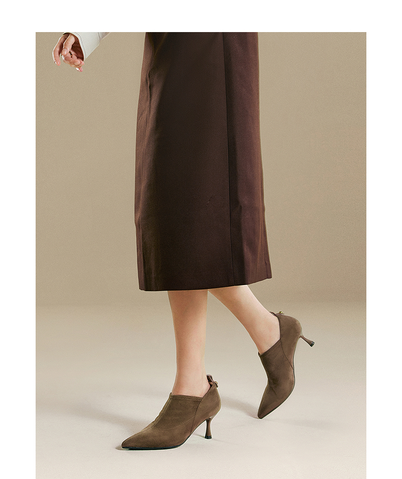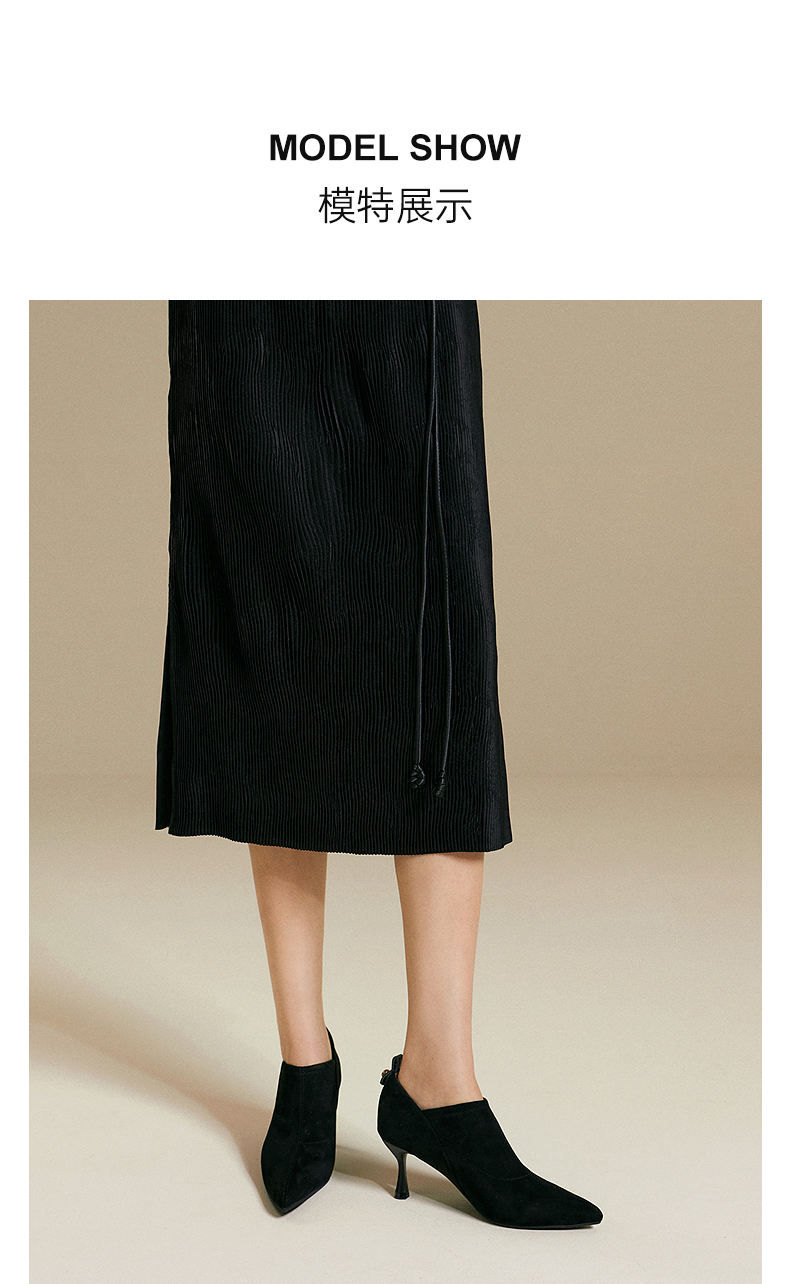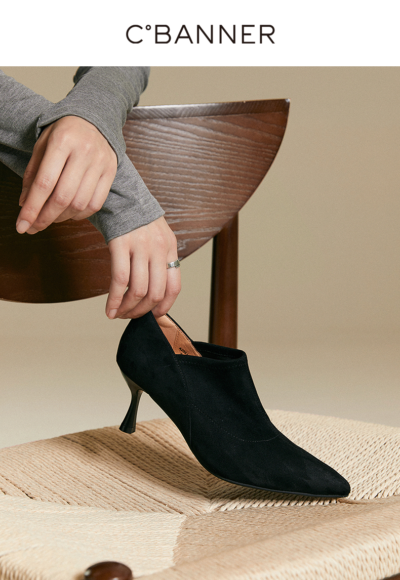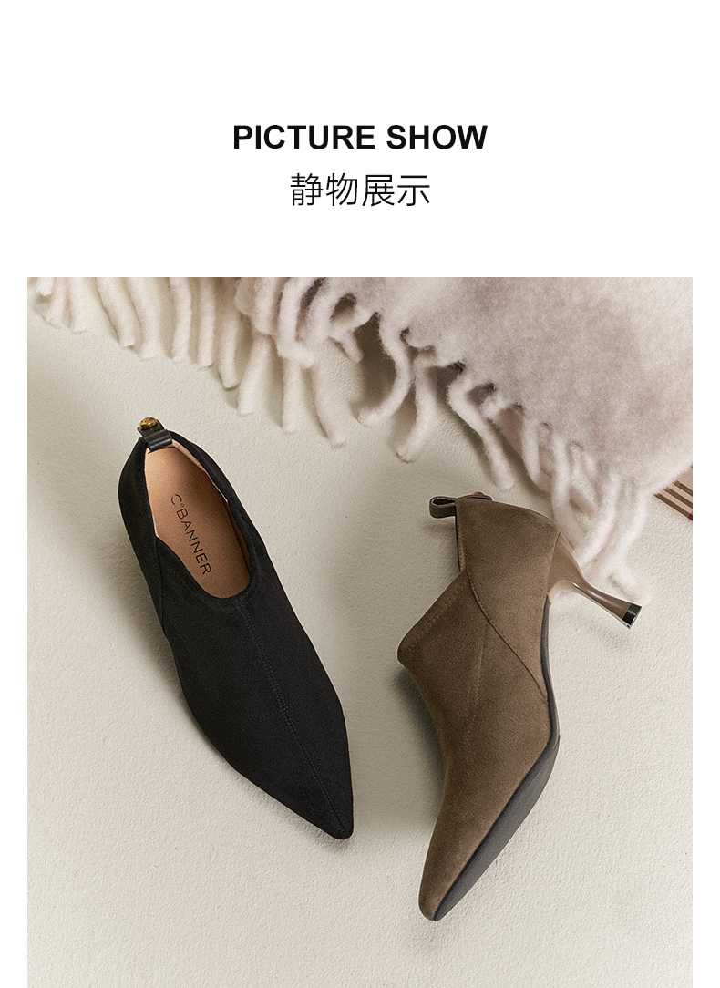 千百度细高跟时装靴女秋冬新款踝靴深口单鞋尖头通勤短靴子A25516803