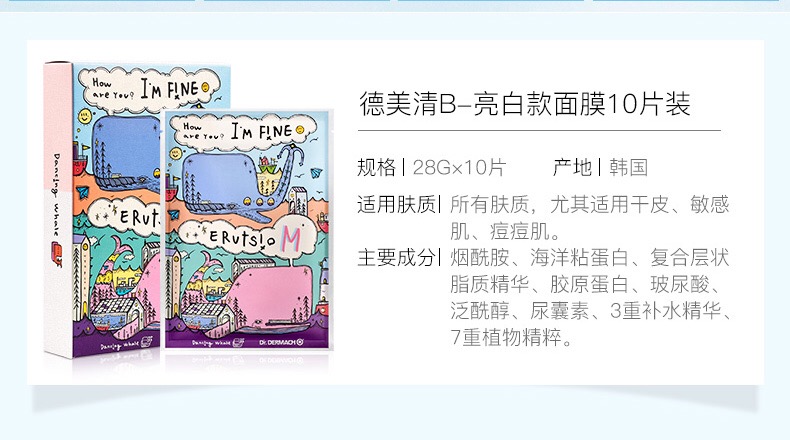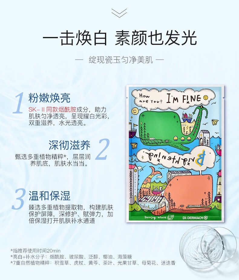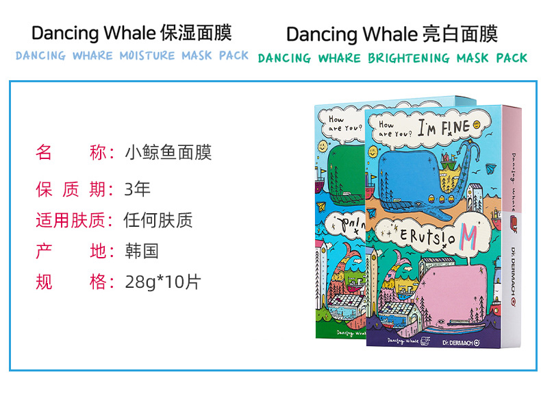 Dr.DERMACH韩国小鲸鱼面膜胶原蛋白补水保湿敏感肌可用10片