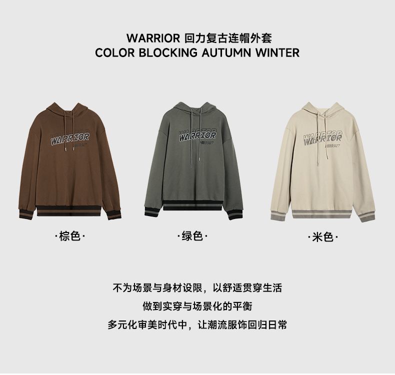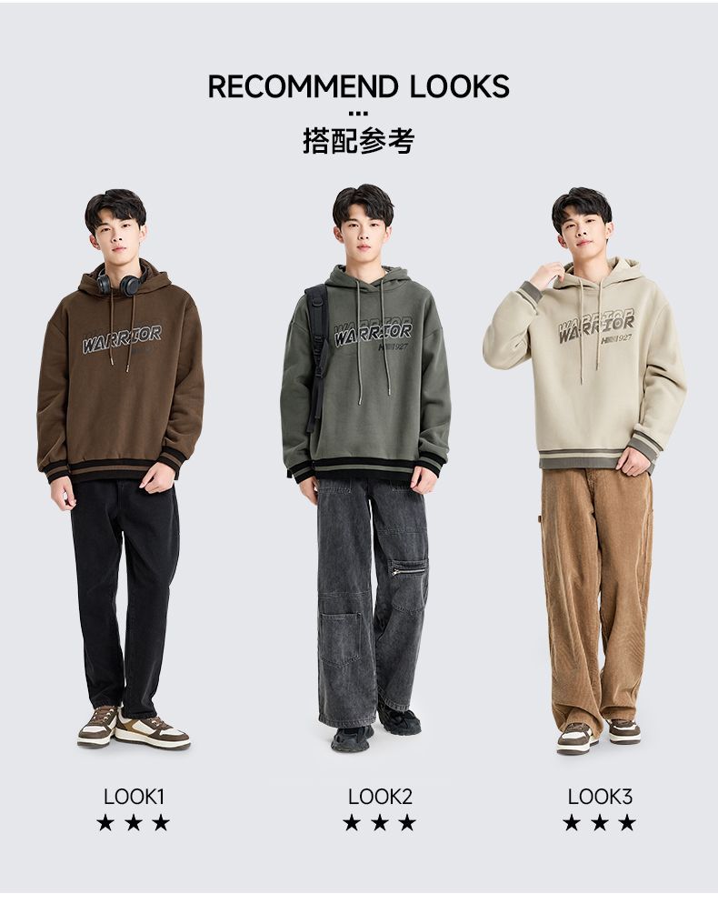 回力加绒加厚卫衣男款2025春季新款美式复古连帽情侣外套ins潮牌