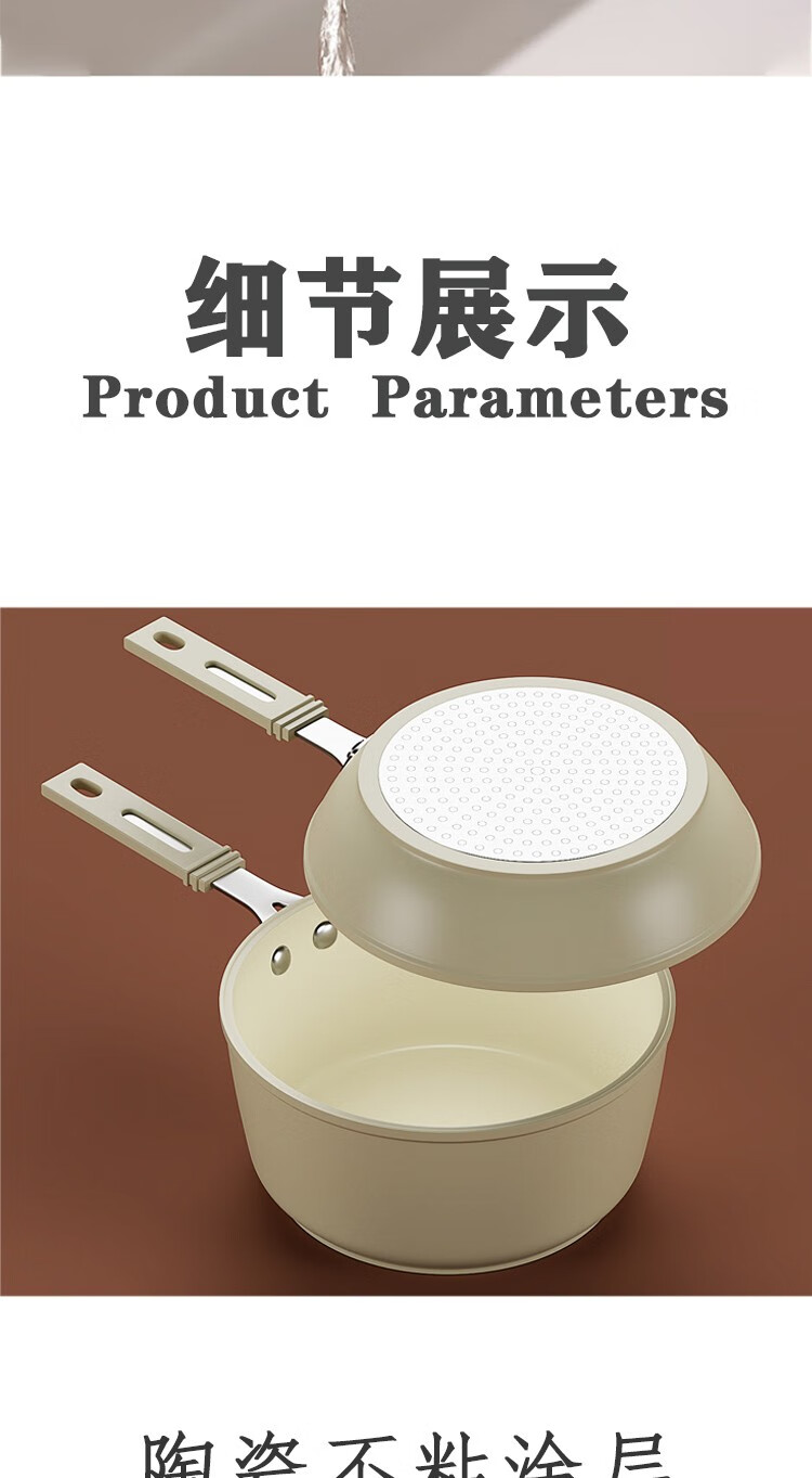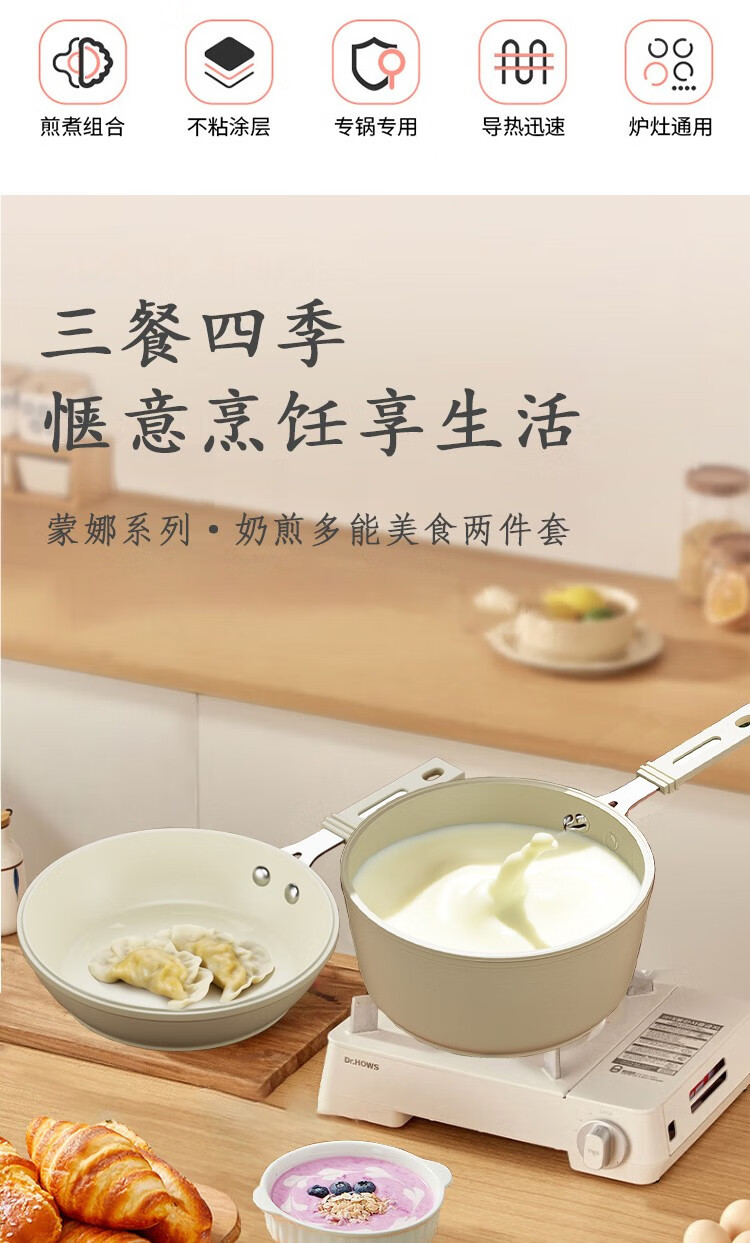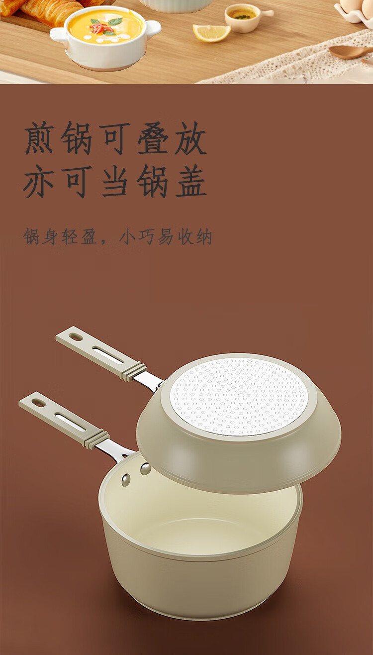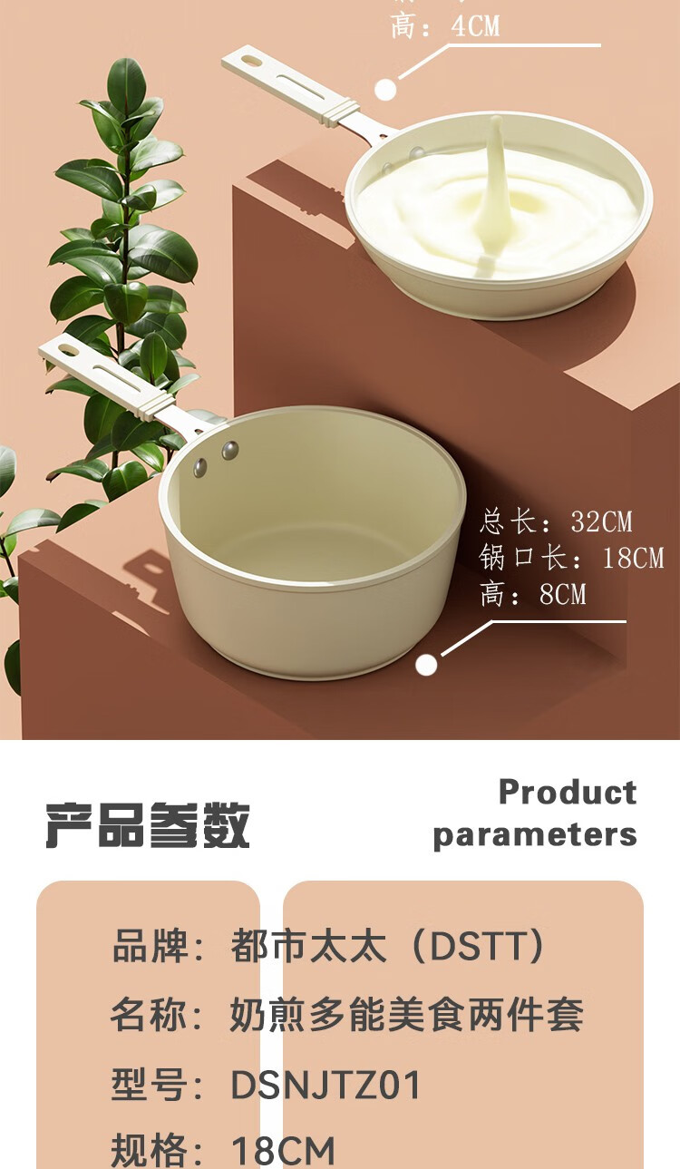 都市太太都市太太蒙娜系列奶煎多能美食两件套家用陶瓷不粘奶锅煎锅套装