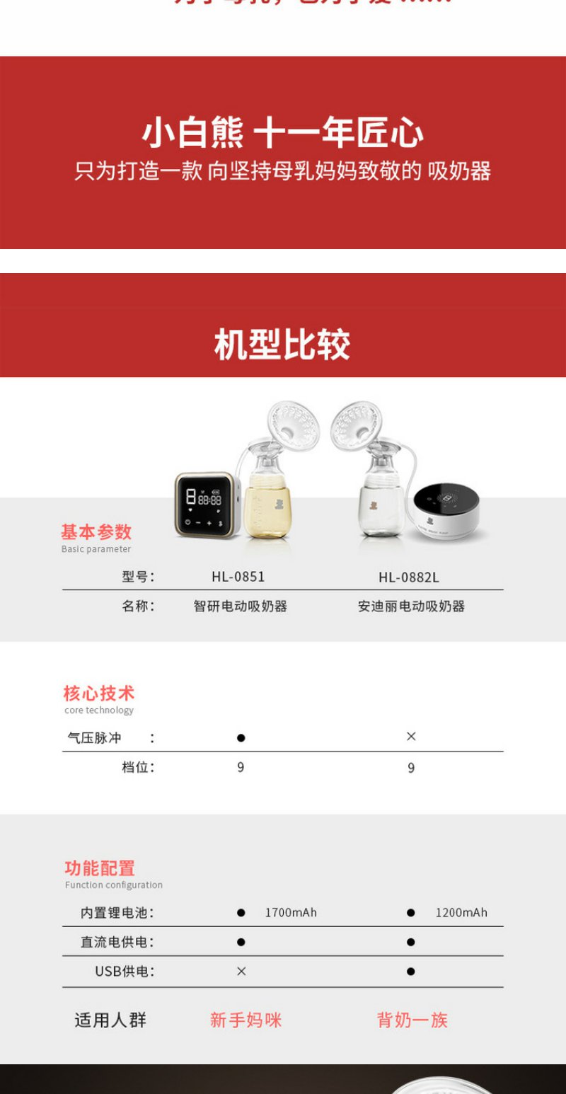 小白熊电动吸奶器吸乳器