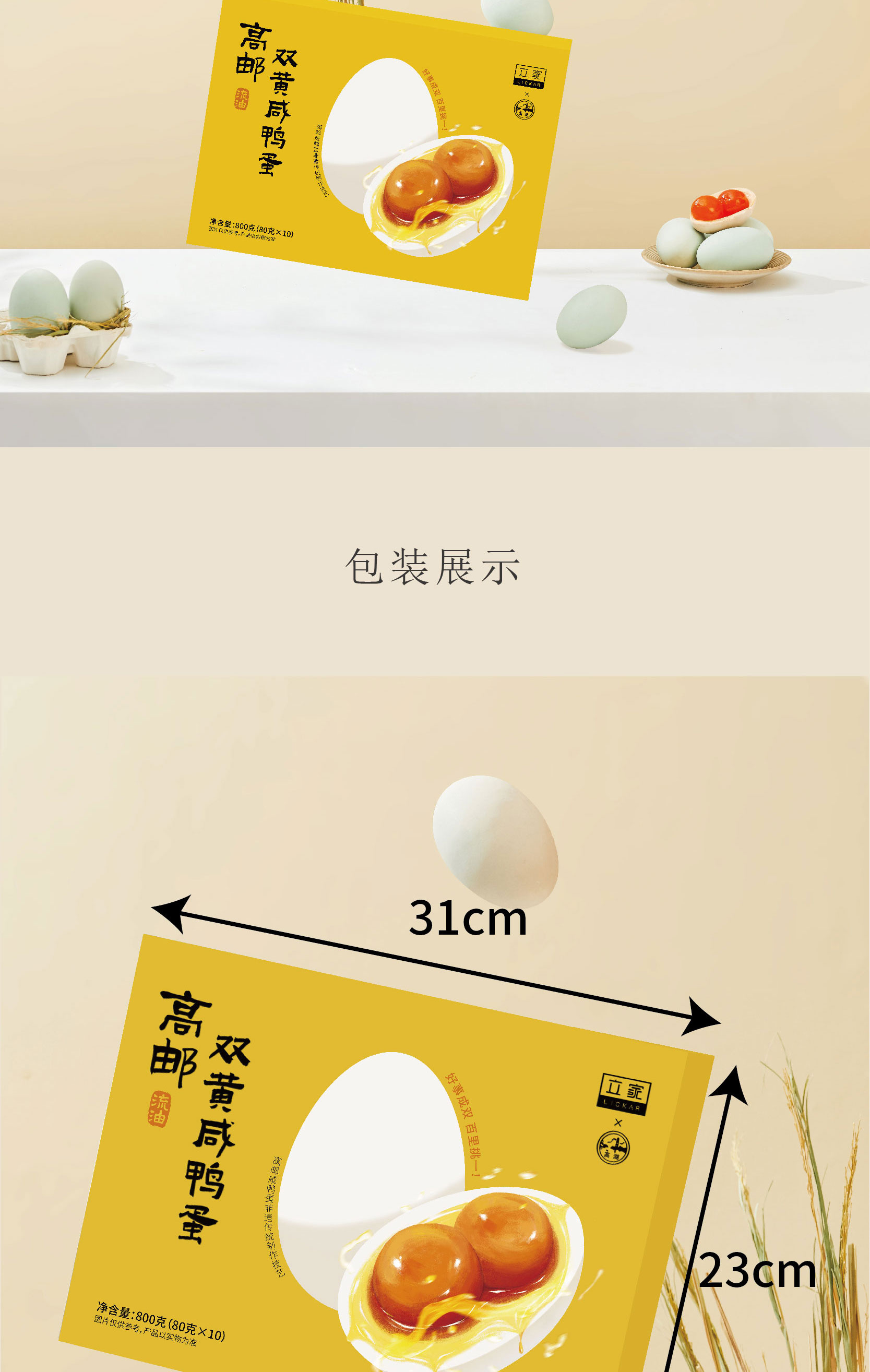 立家高邮双黄咸鸭蛋800g/盒(80g*10枚)