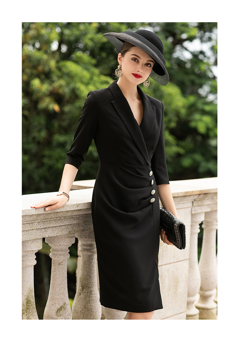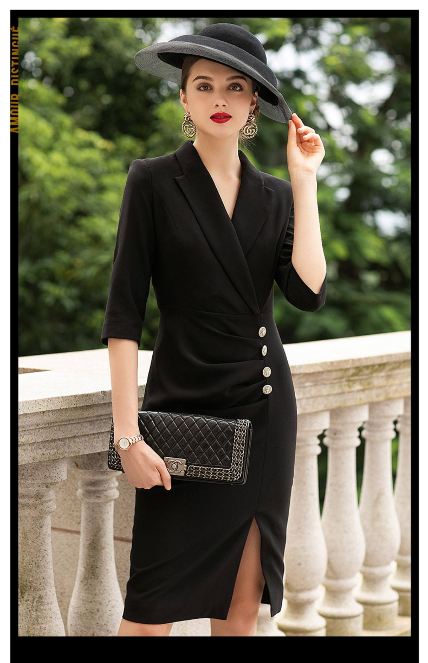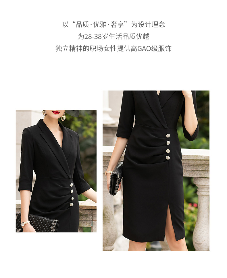 IWY/高端西装连衣裙女气质时尚ol正装黑色中长款包臀裙商务职业装套装 Q640