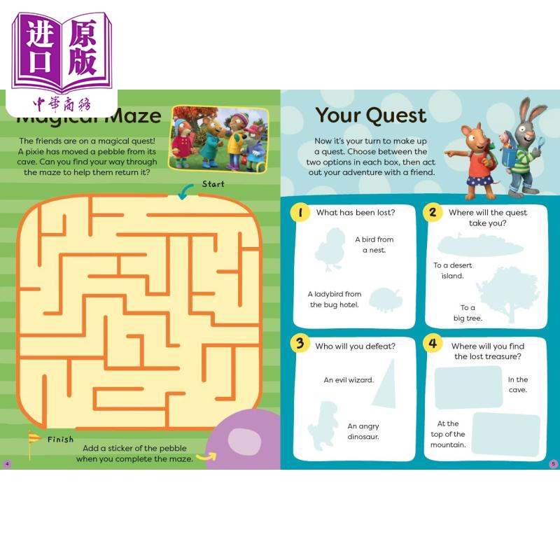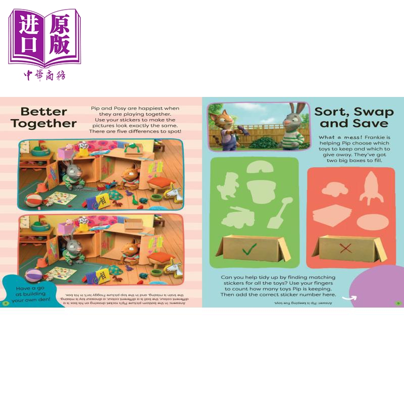 快来认识 Pip 和 Posy,他们是喜欢玩耍和笑的好的朋友,并沉浸在将这两者结合在一起的乐趣和游戏中。与 Pip 和 Posy 以及他们的朋友一起使用贴纸完成谜题。通过发现差异、拼图游戏、贴纸场景等等,这本令人愉快的书可以让孩子们玩上几个小时。