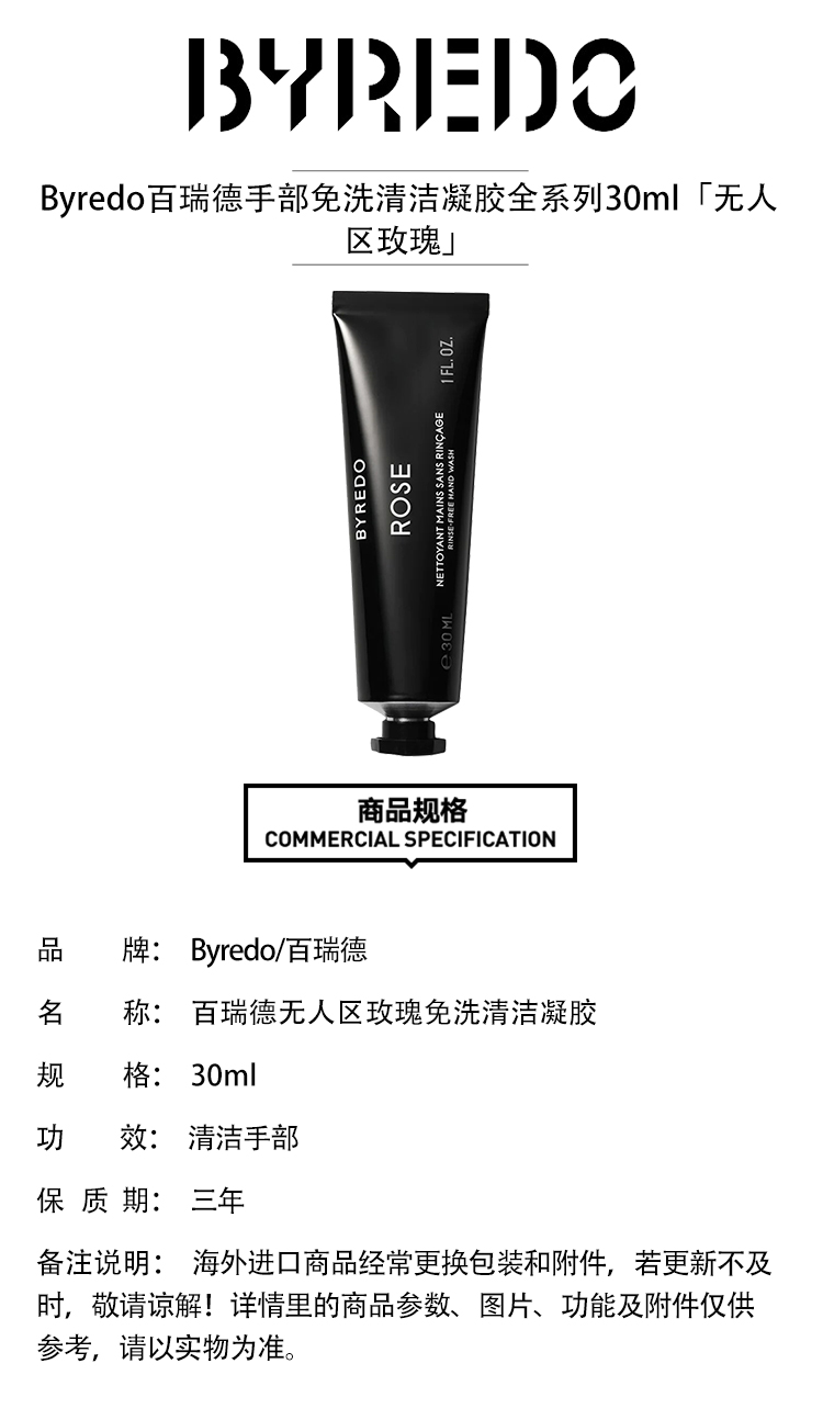 Byredo百瑞德滋润手部免洗清洁凝胶30ml 岩兰草